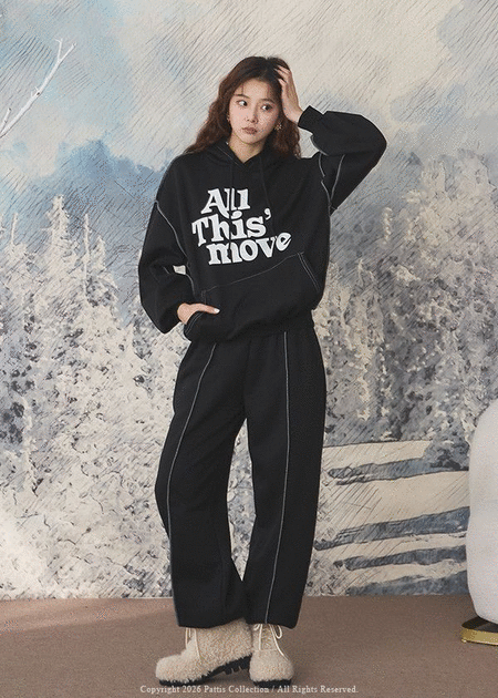戀愛宣示 | 內刷毛字母口袋帽T+縮口壓摺褲set(黑)