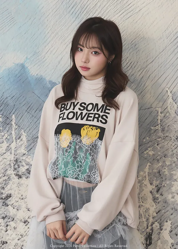 關於赤誠希望 | 字母鬱金香拼接蕾絲翻領上衣(黑)
