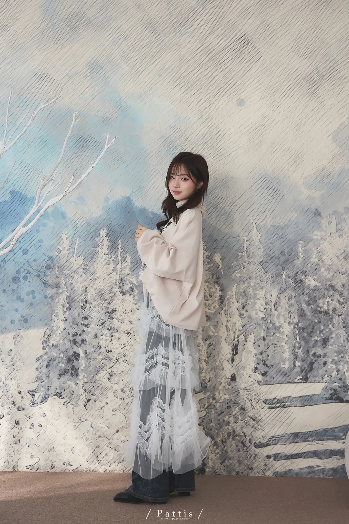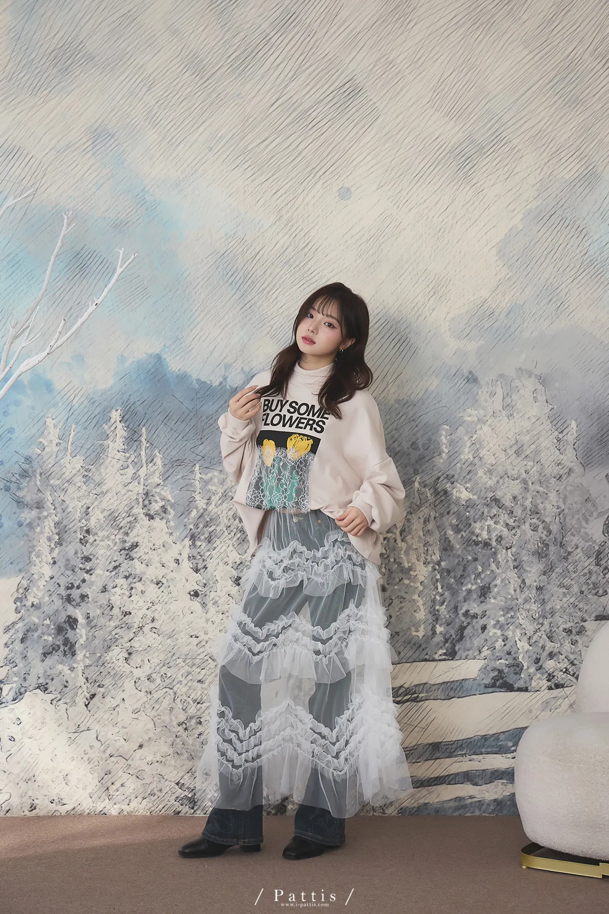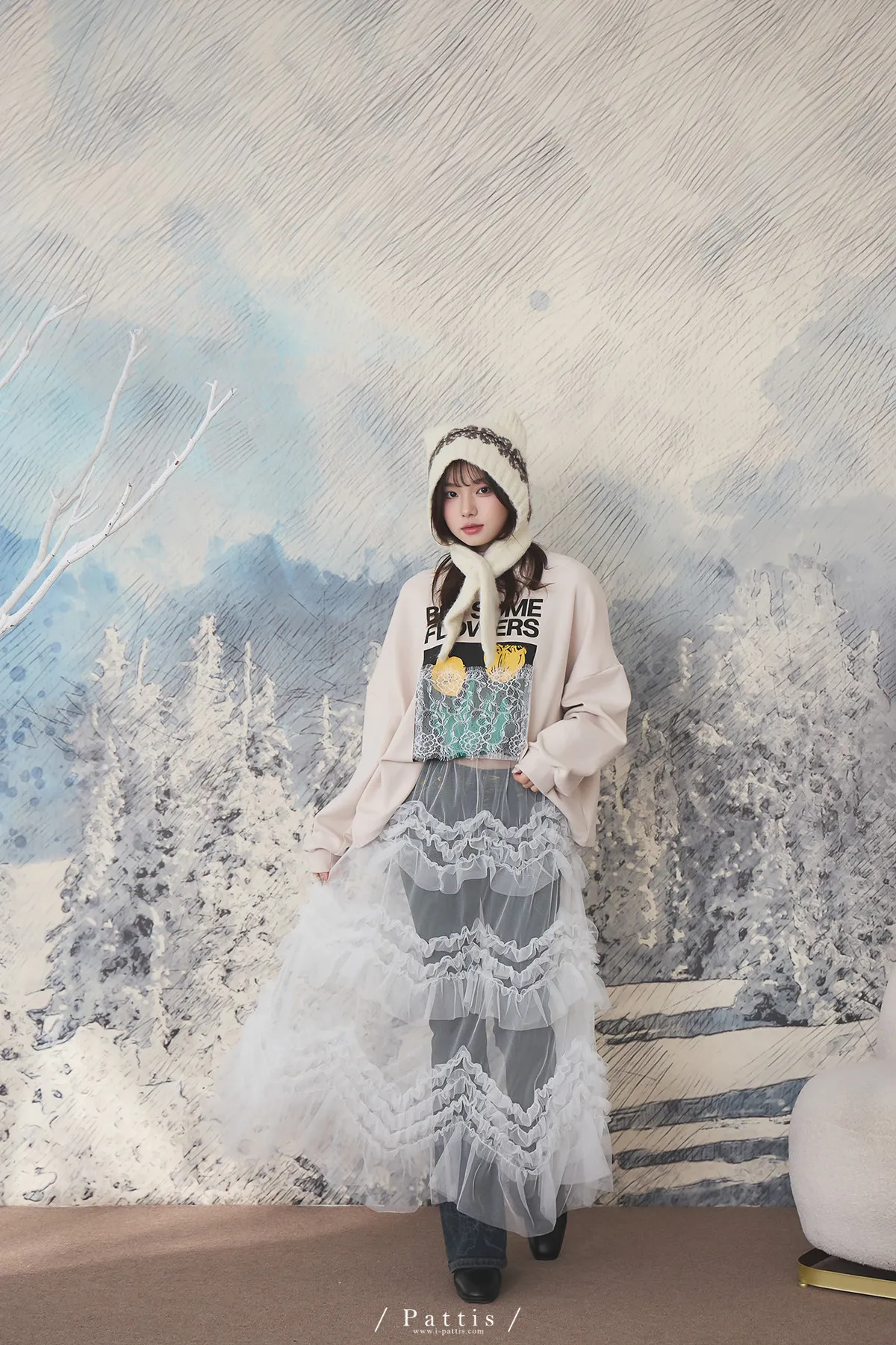 沒有難題的戀情 | 透肌抓皺蛋糕網紗長裙(白)