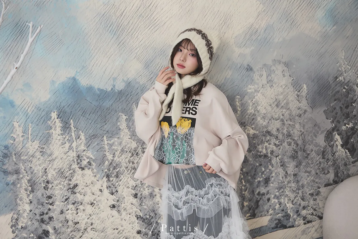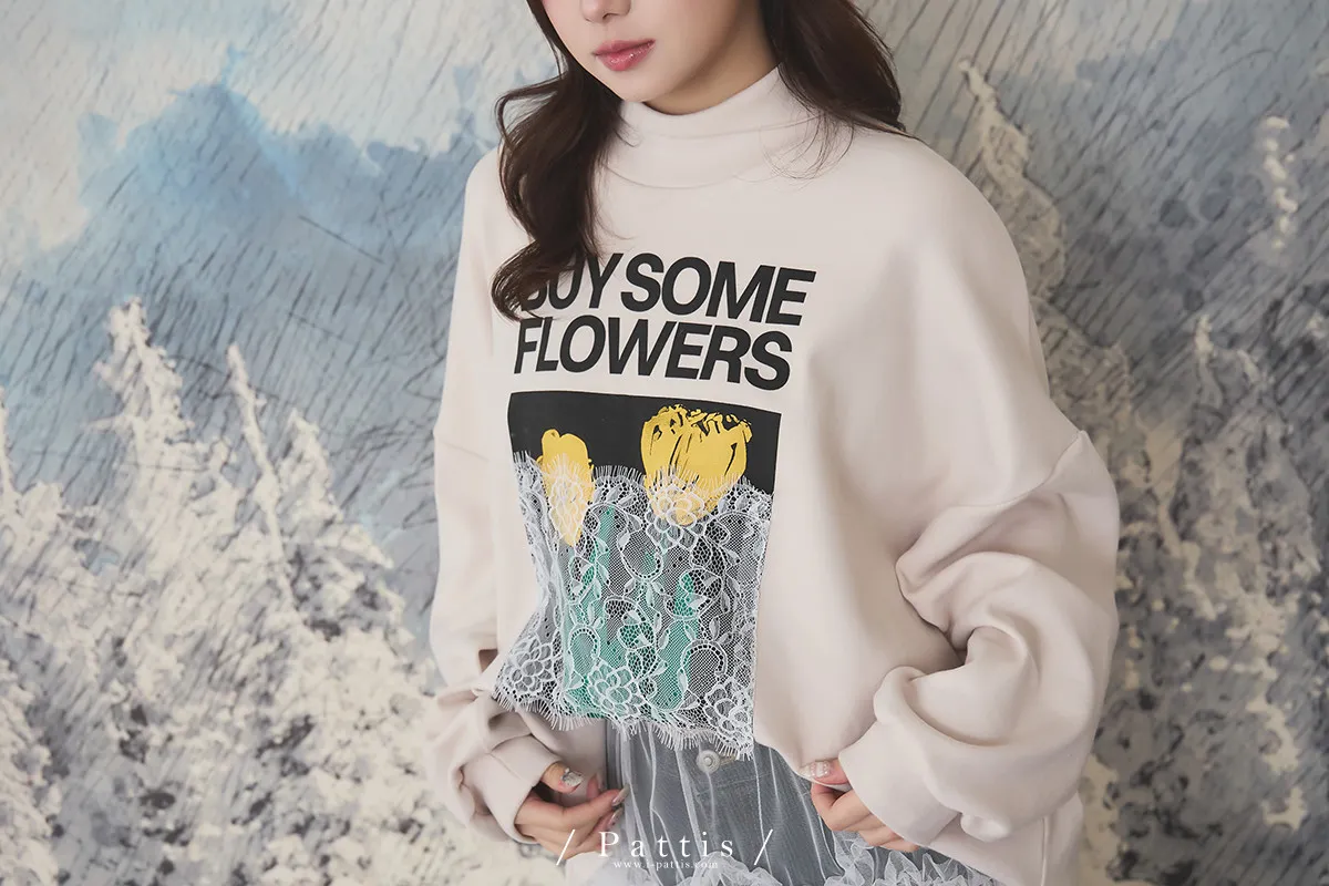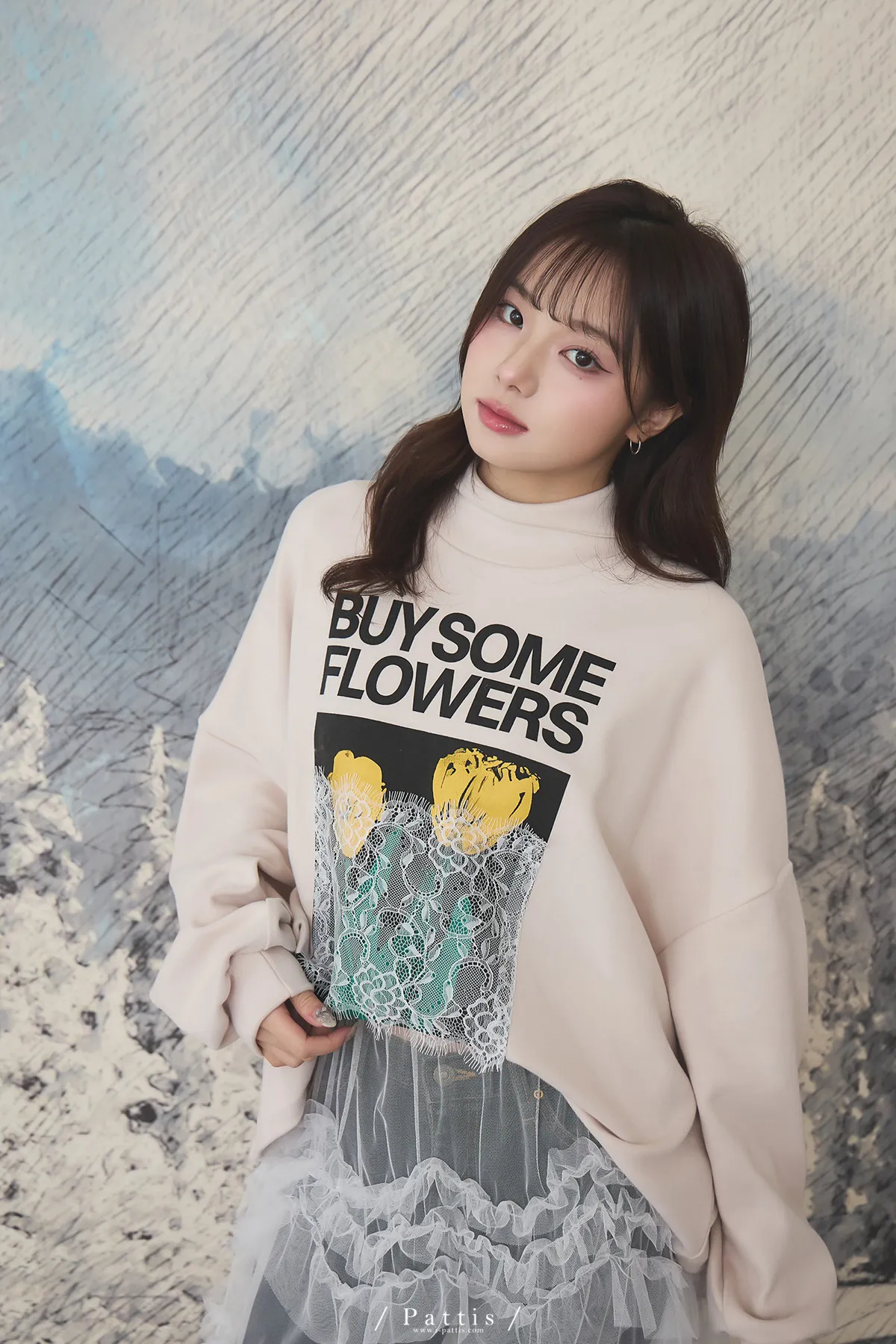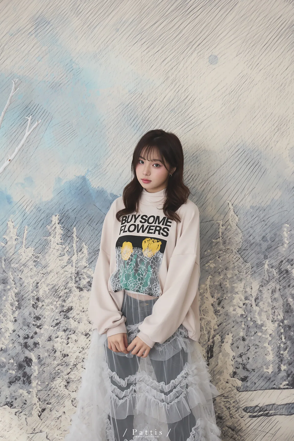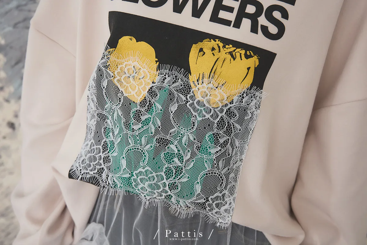關於赤誠希望 | 字母鬱金香拼接蕾絲翻領上衣(米杏)