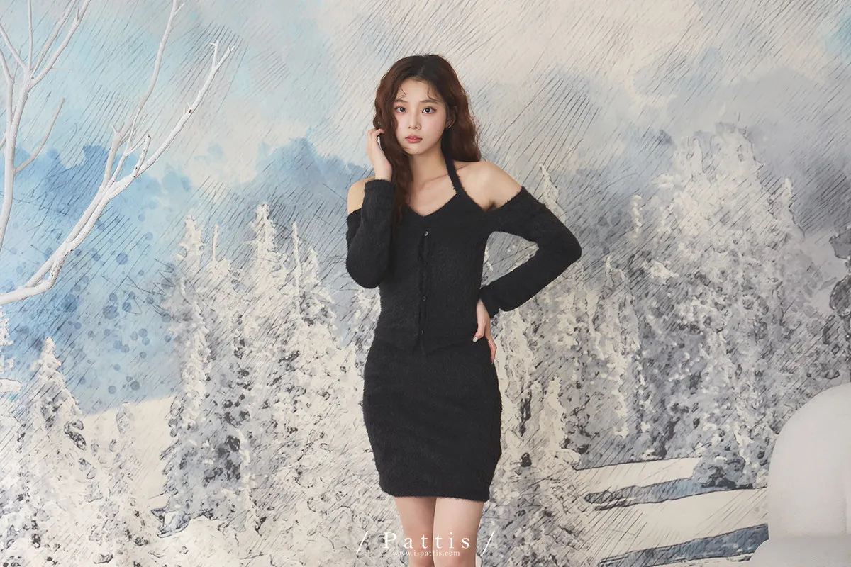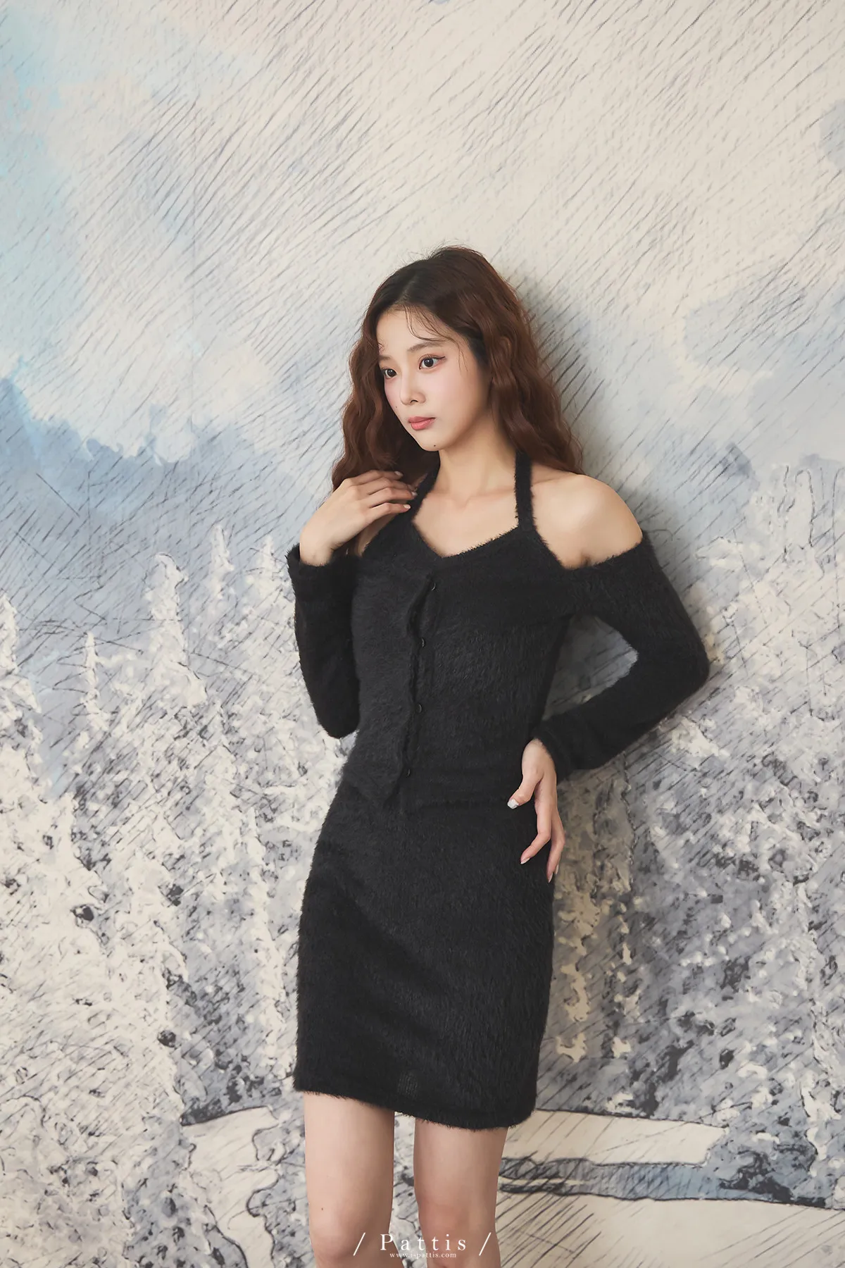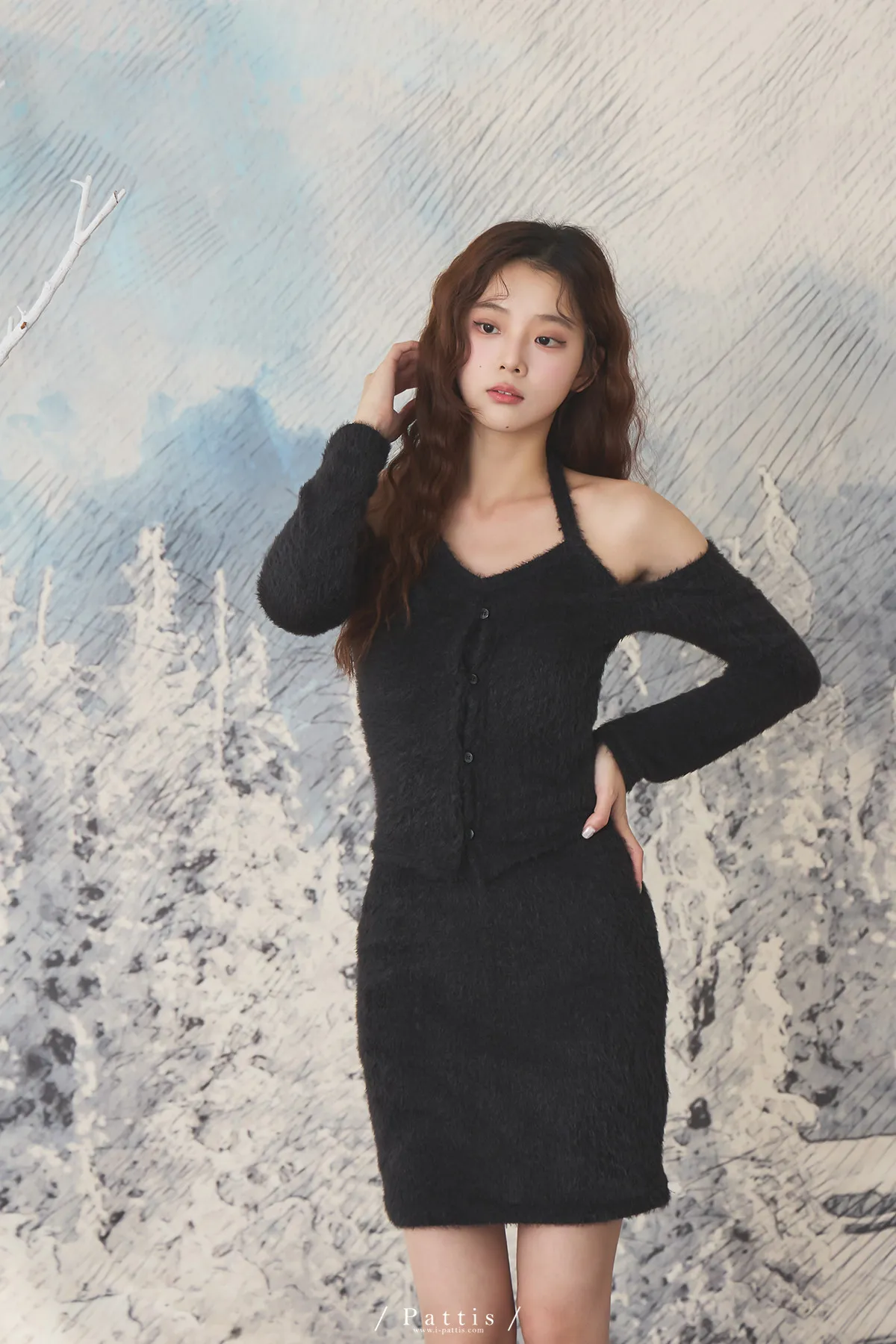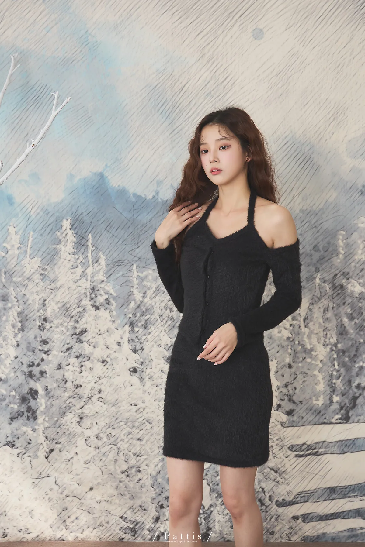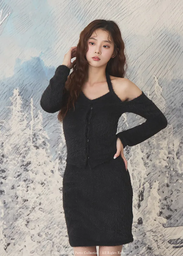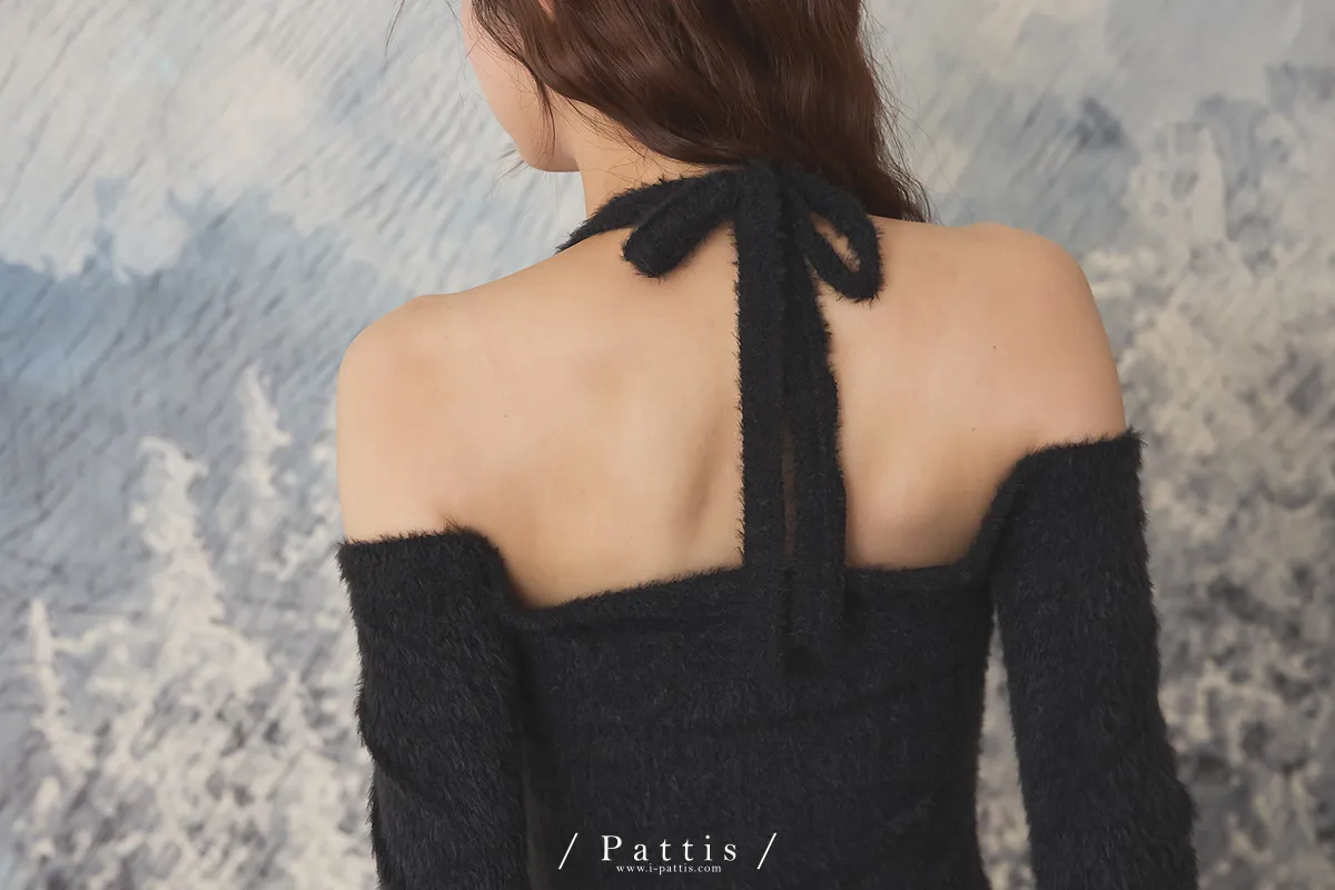 成熟的人說晚安 | 毛毛短外套綁帶繞頸短洋裝(黑)