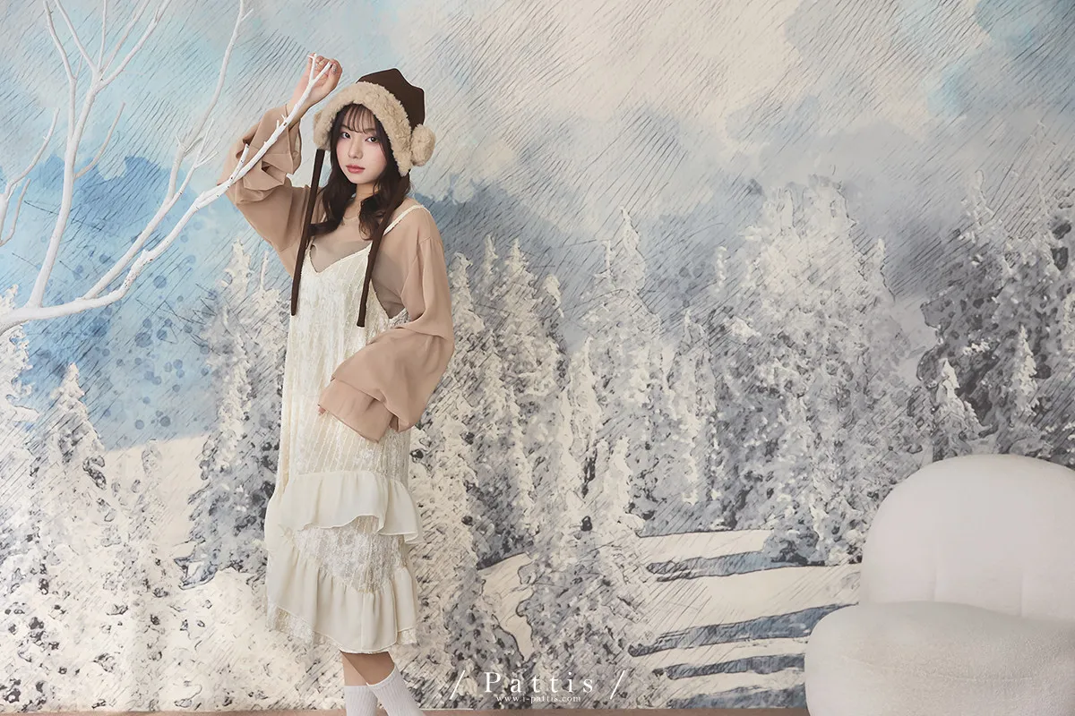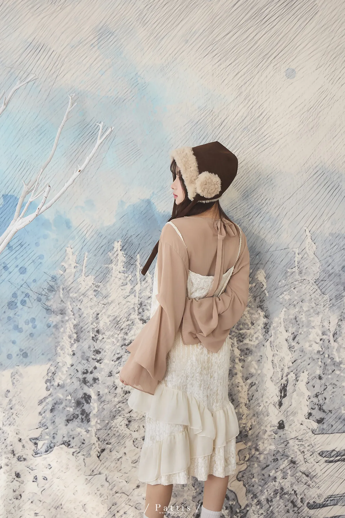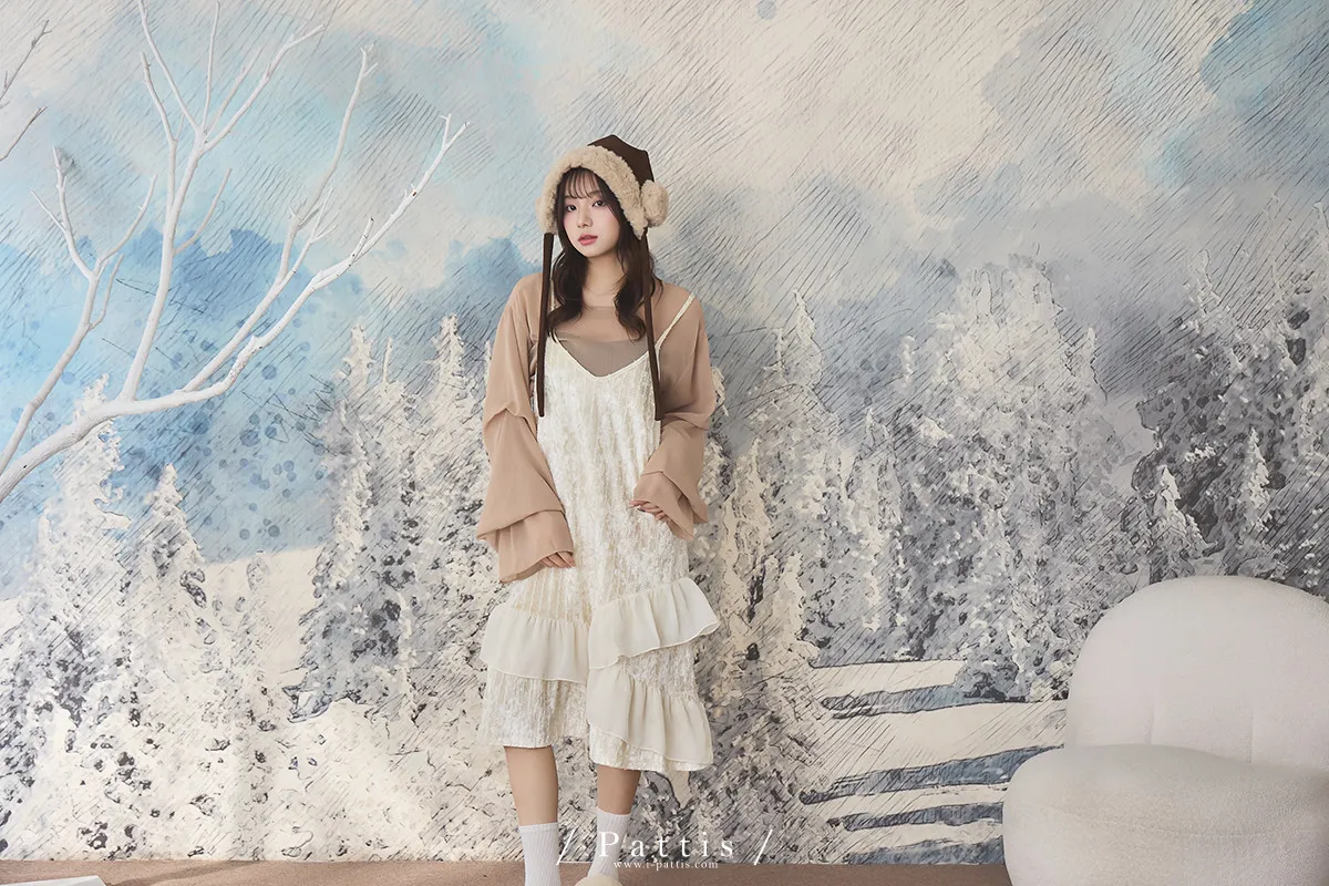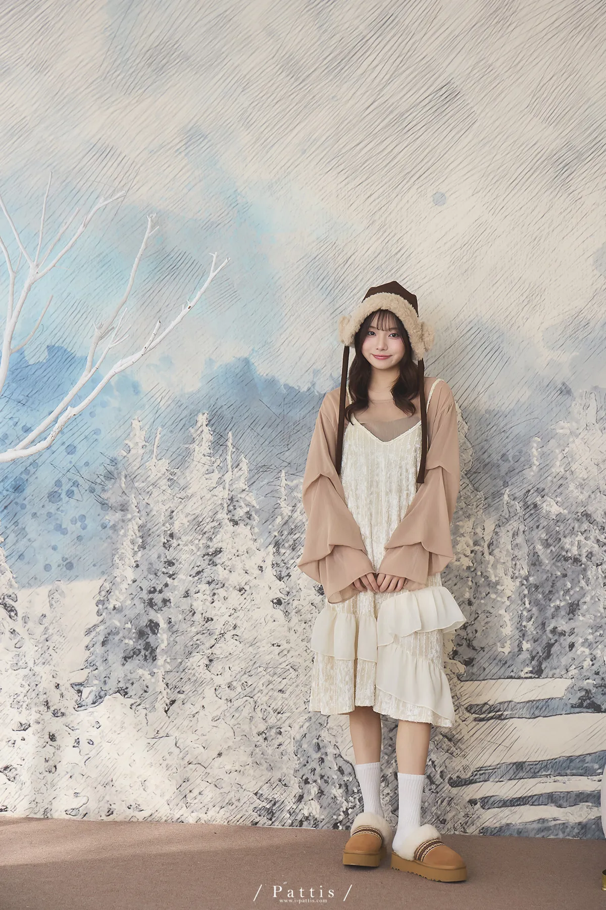 月光陷阱 | 天鵝絨光感荷葉不對稱吊帶洋裝(米杏)