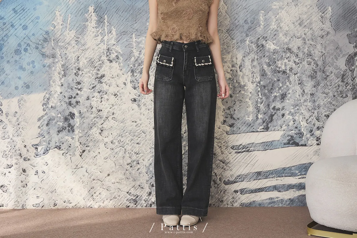 說好溫柔以待 | 小香滾邊口袋刷色內刷毛直筒褲(單一色)