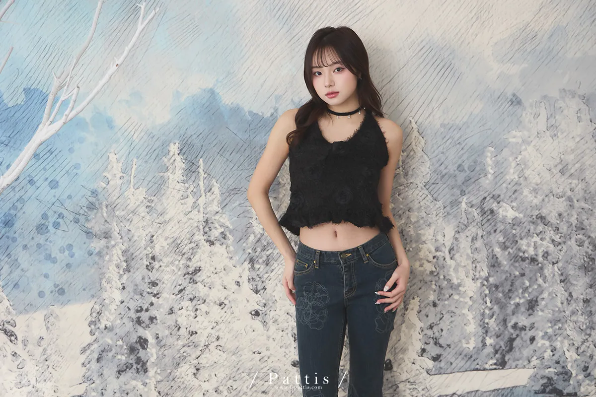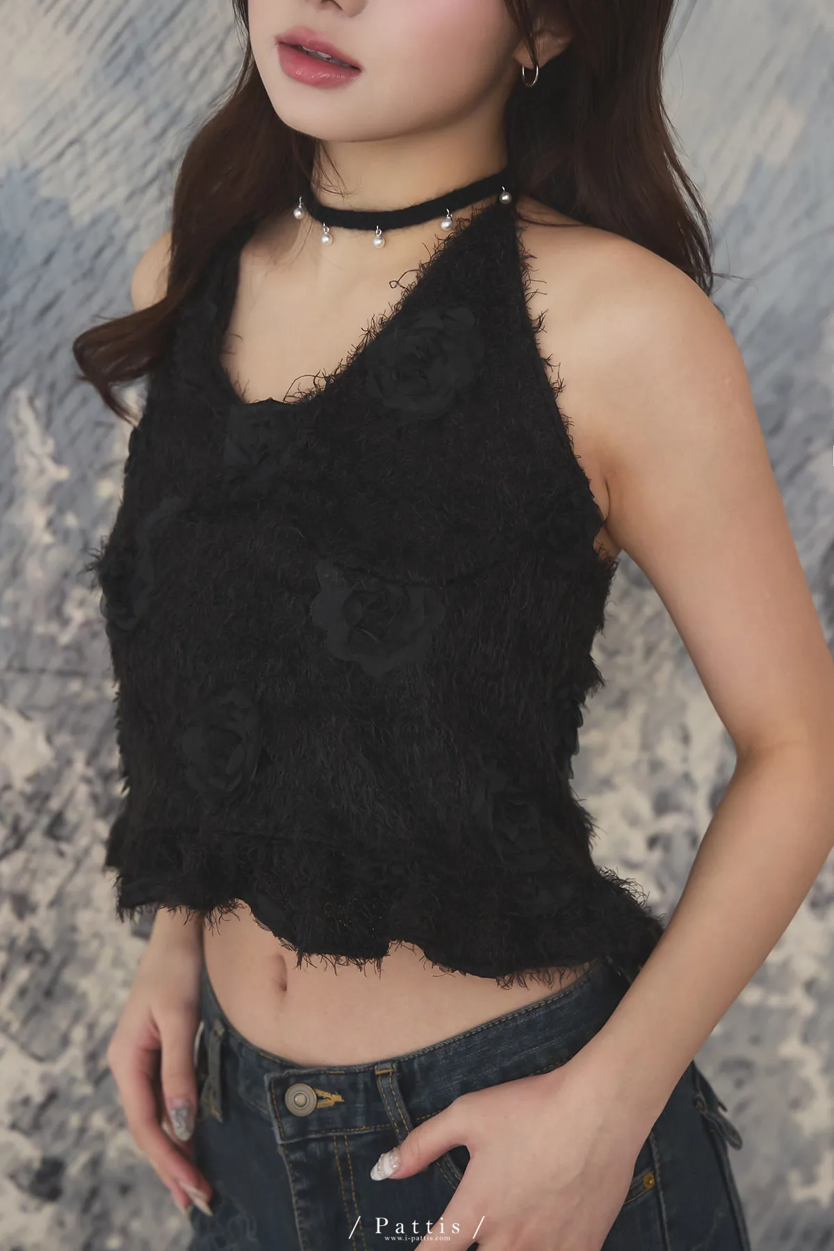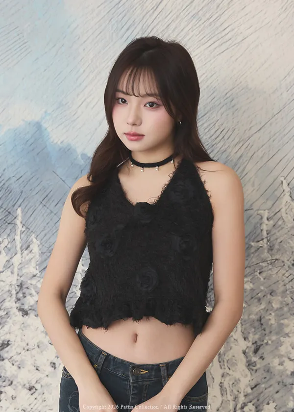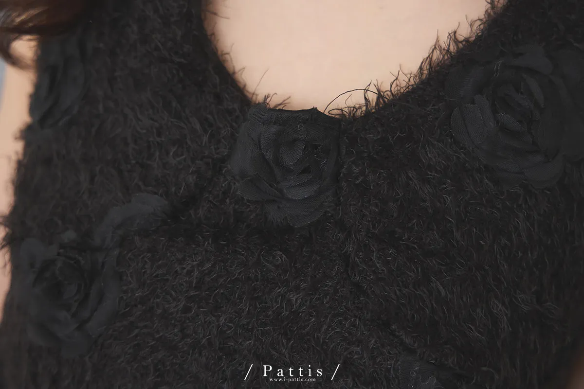 冬日永生花結尾 | 毛毛荷葉綁帶背心(黑)