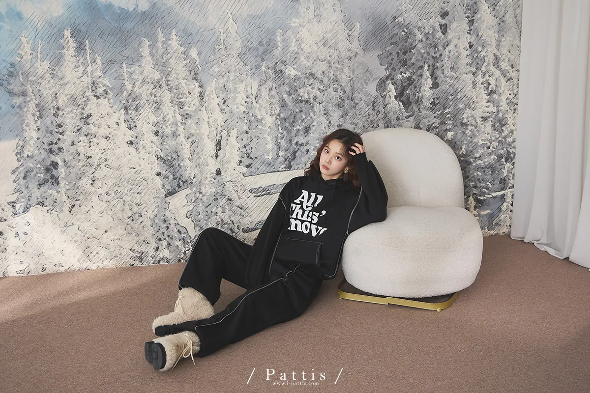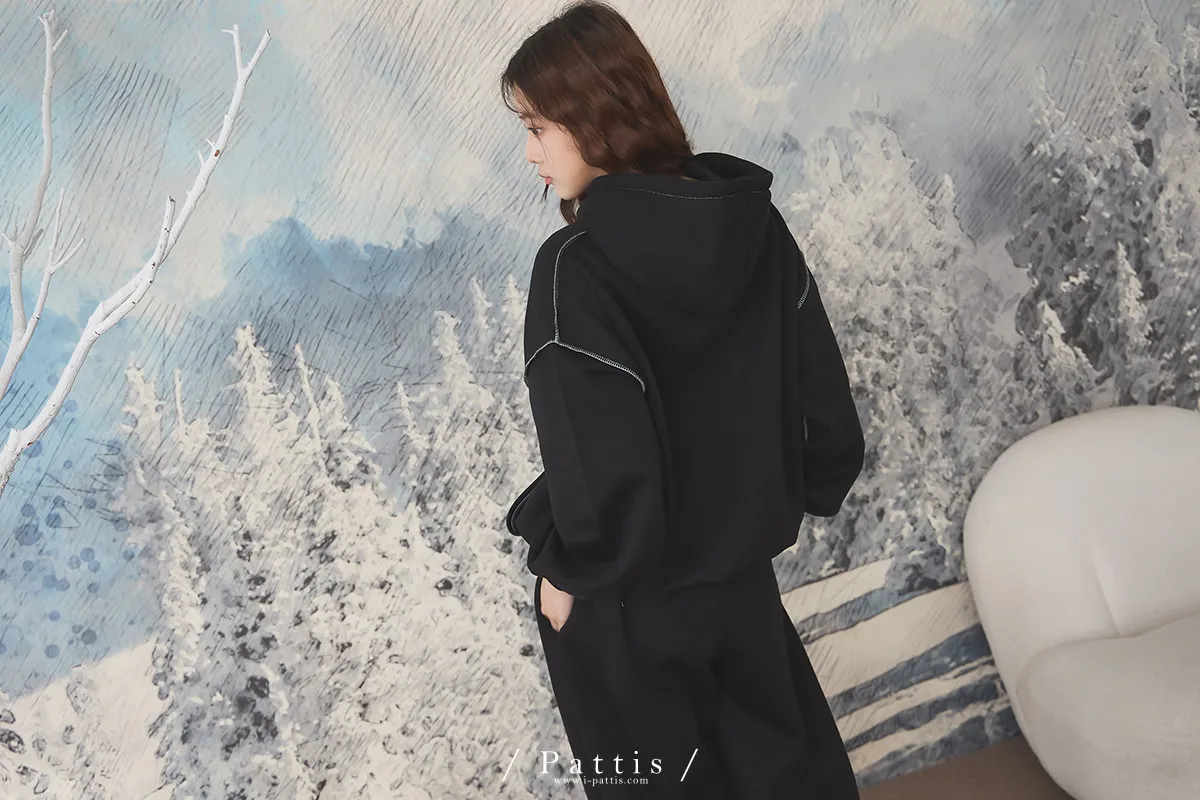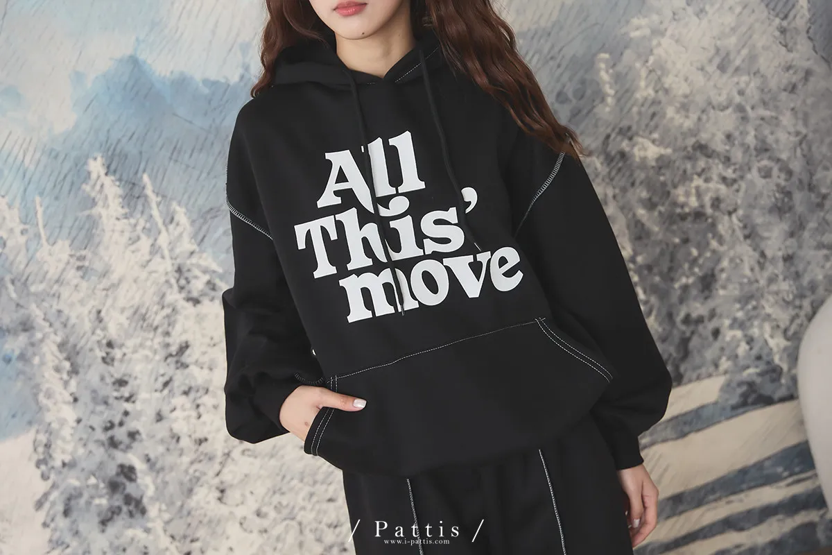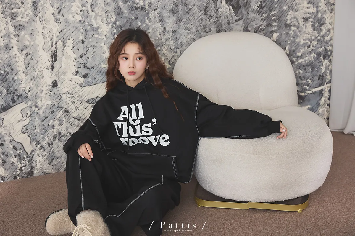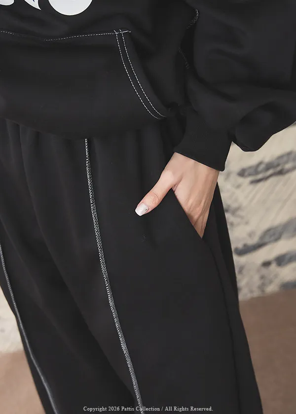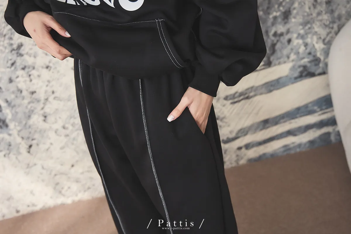 戀愛宣示 | 內刷毛字母口袋帽T+縮口壓摺褲set(黑)