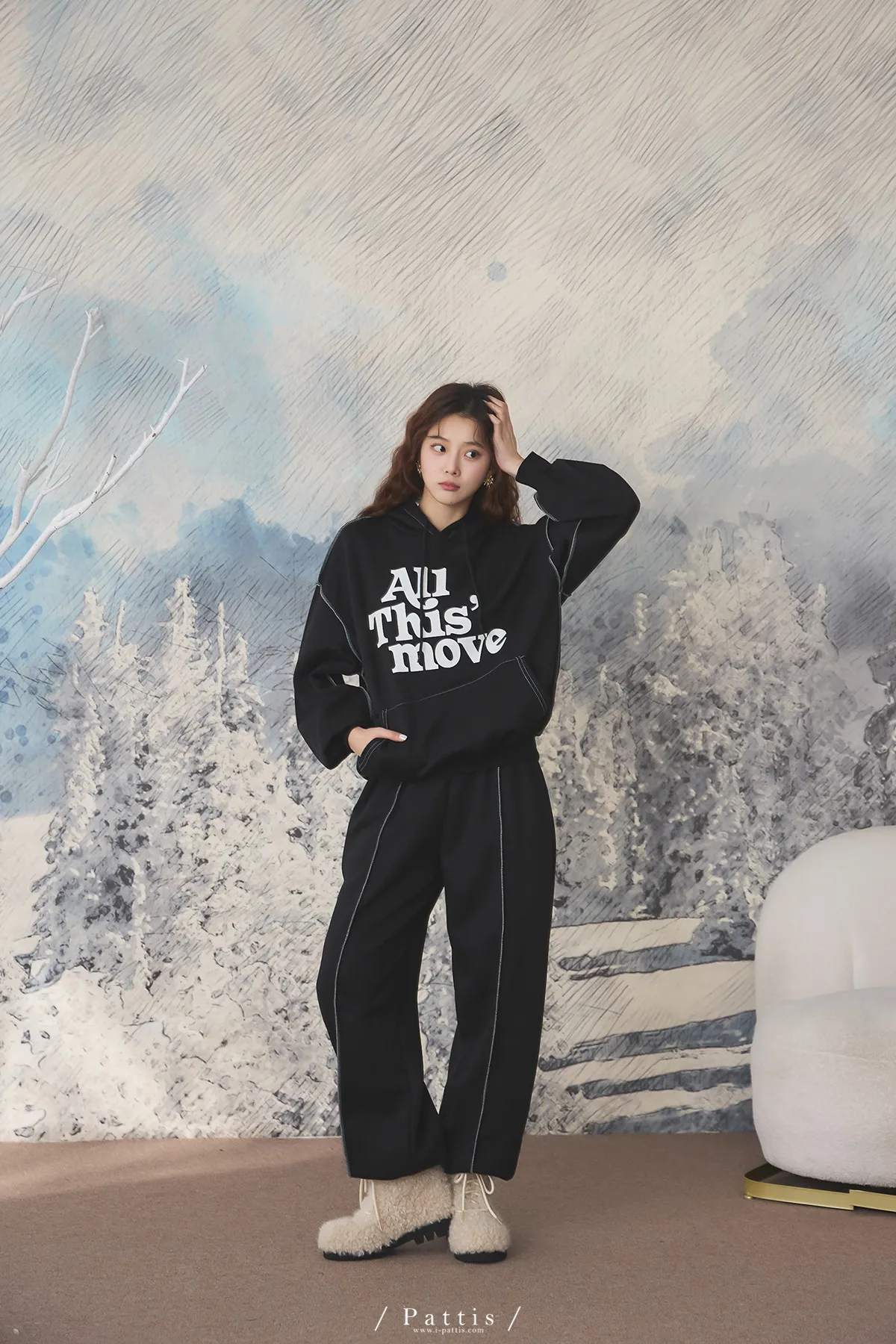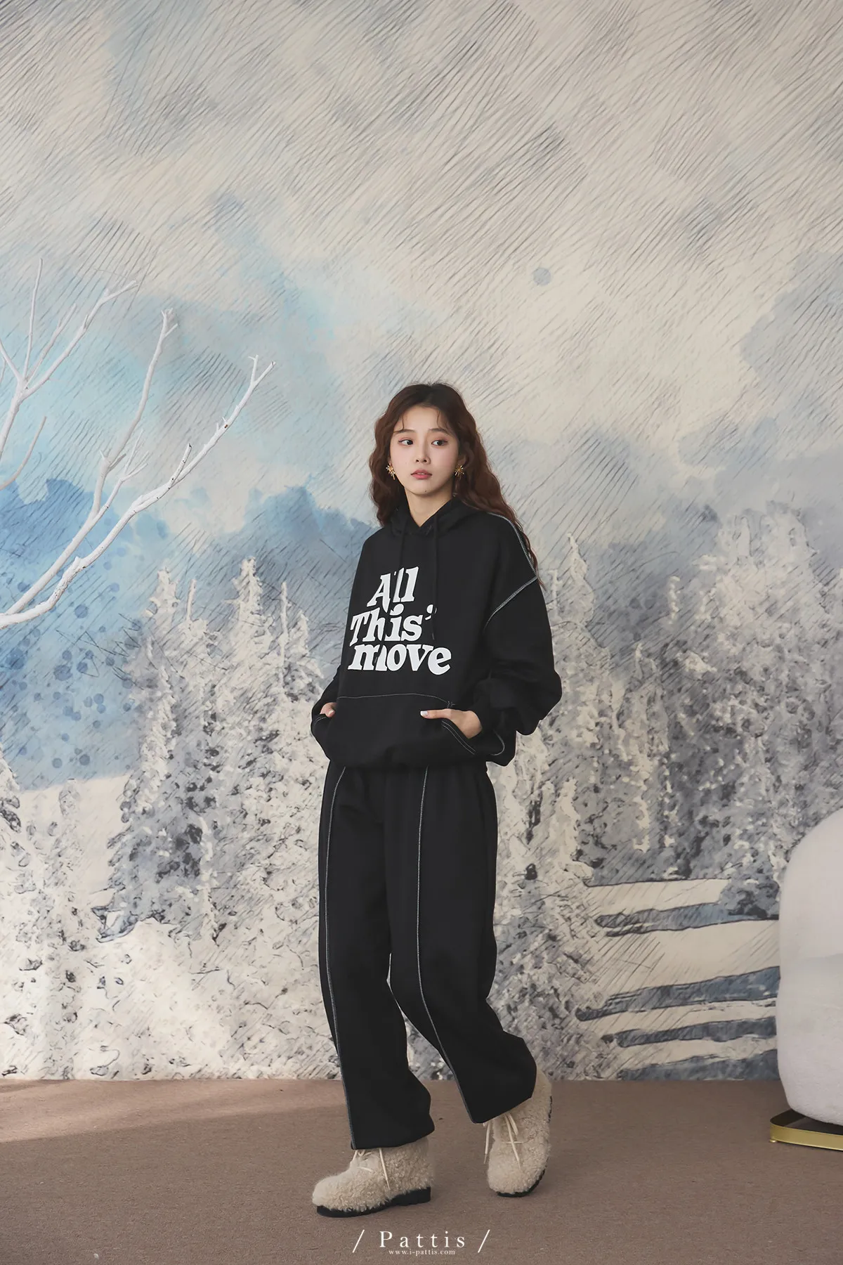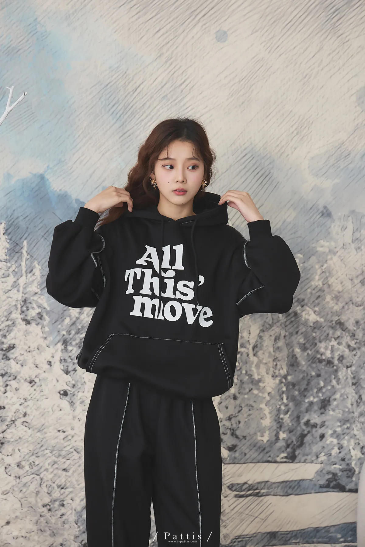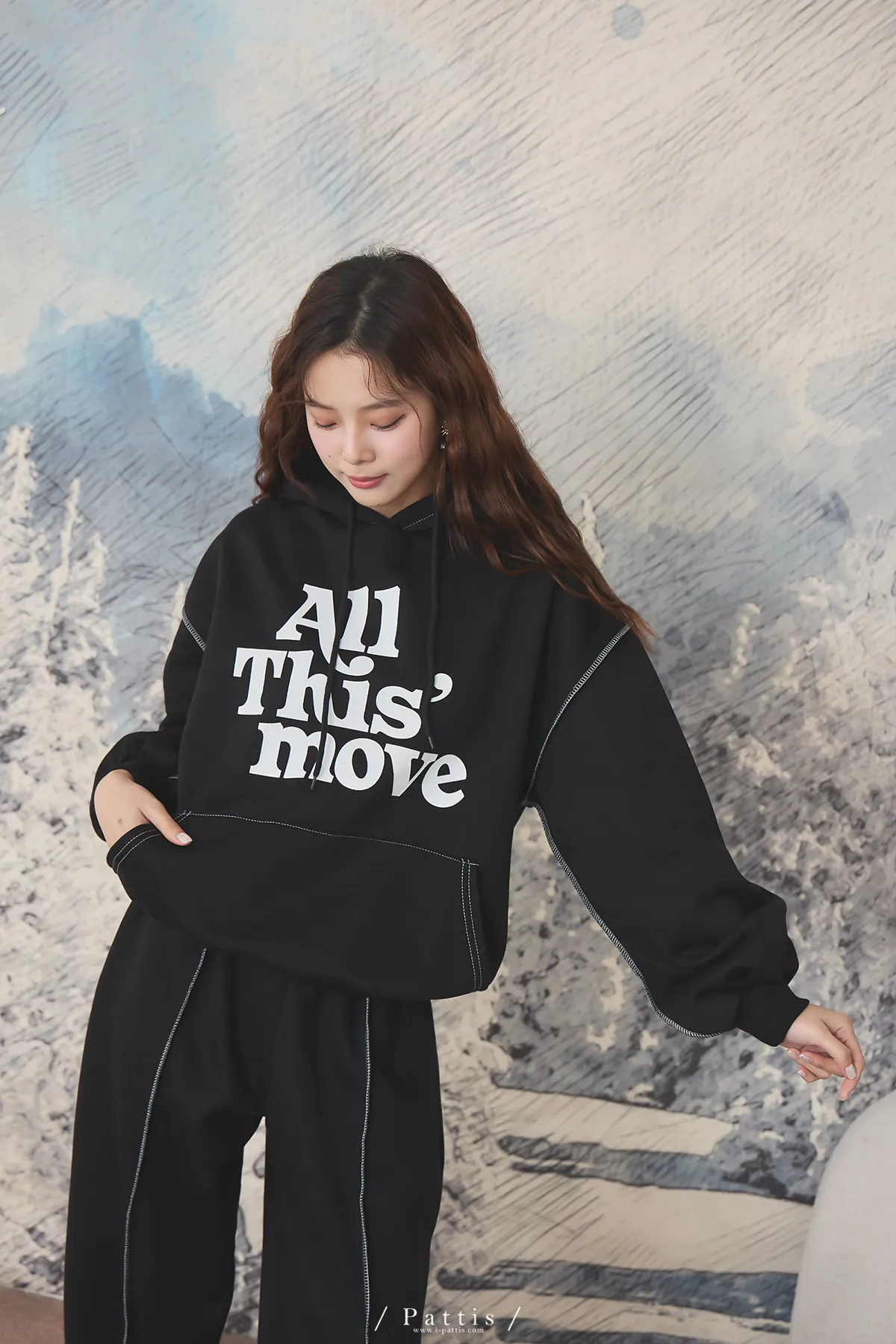 戀愛宣示 | 內刷毛字母口袋帽T+縮口壓摺褲set(黑)