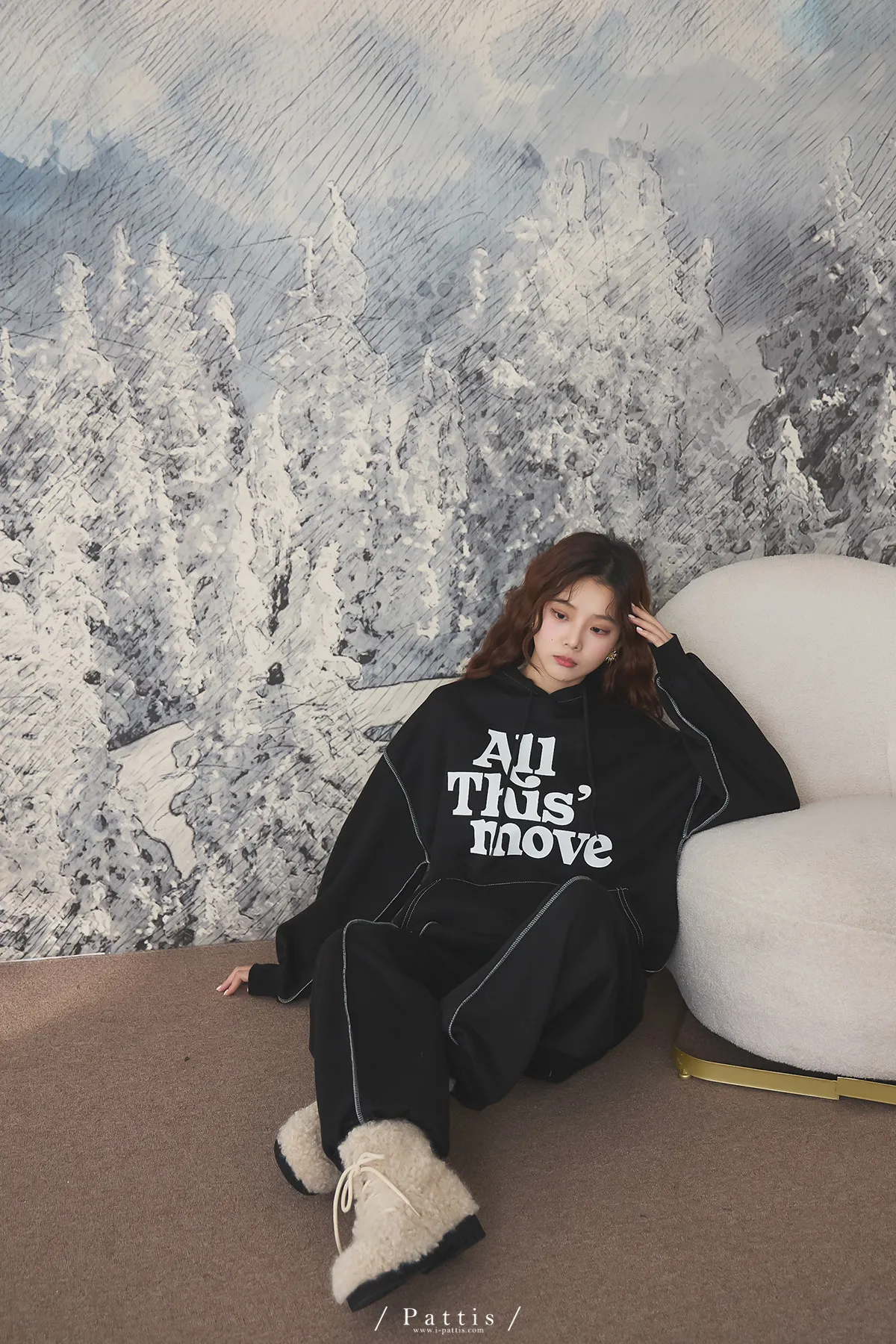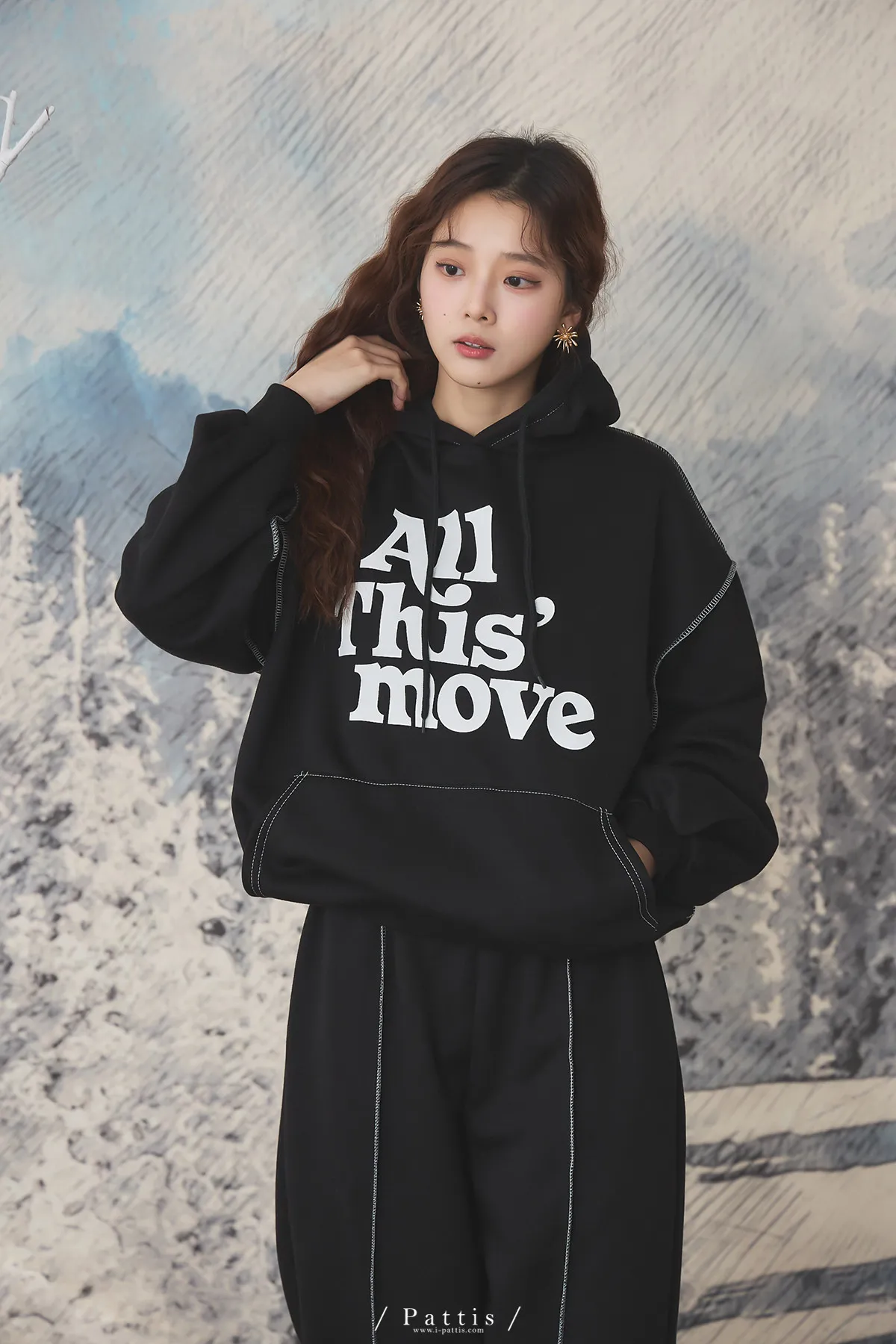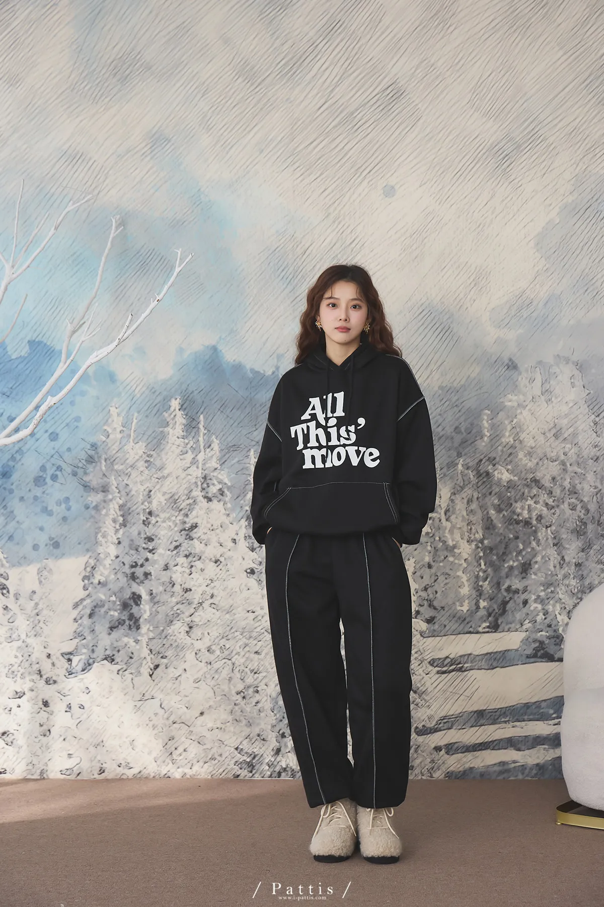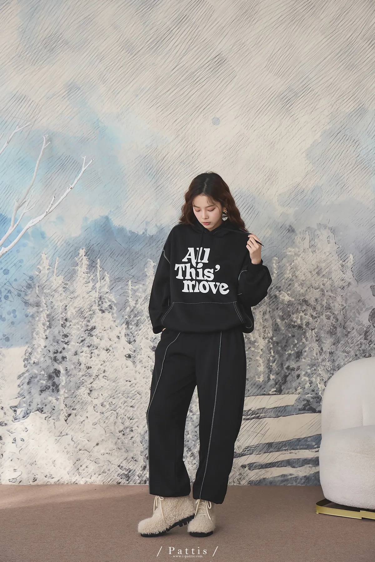 戀愛宣示 | 內刷毛字母口袋帽T+縮口壓摺褲set(黑)