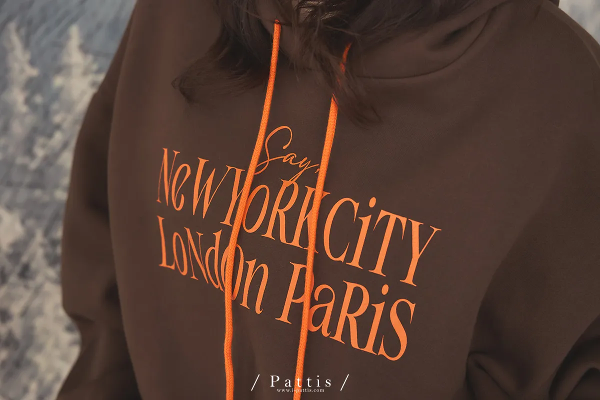 *特*亮橘字母連帽T恤上衣(咖啡)