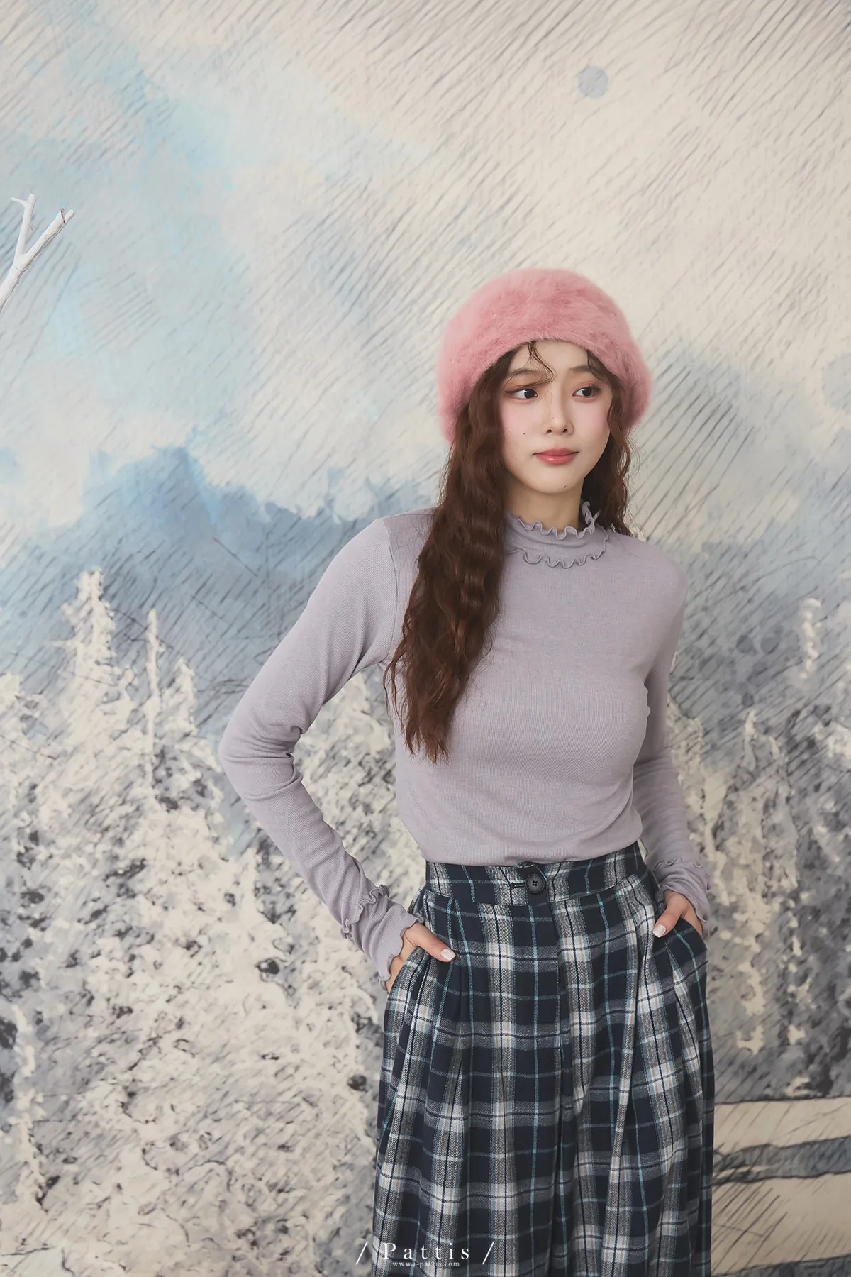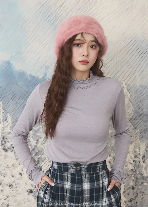 *特*內刷薄毛雙木耳滾邊上衣(淺藍紫)