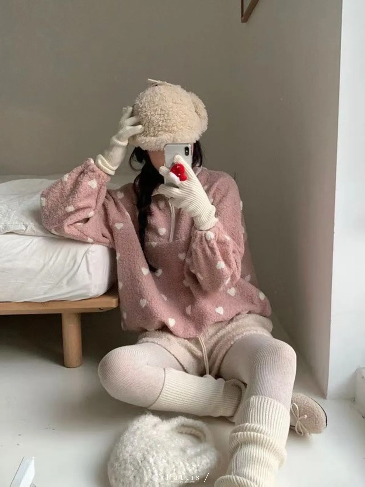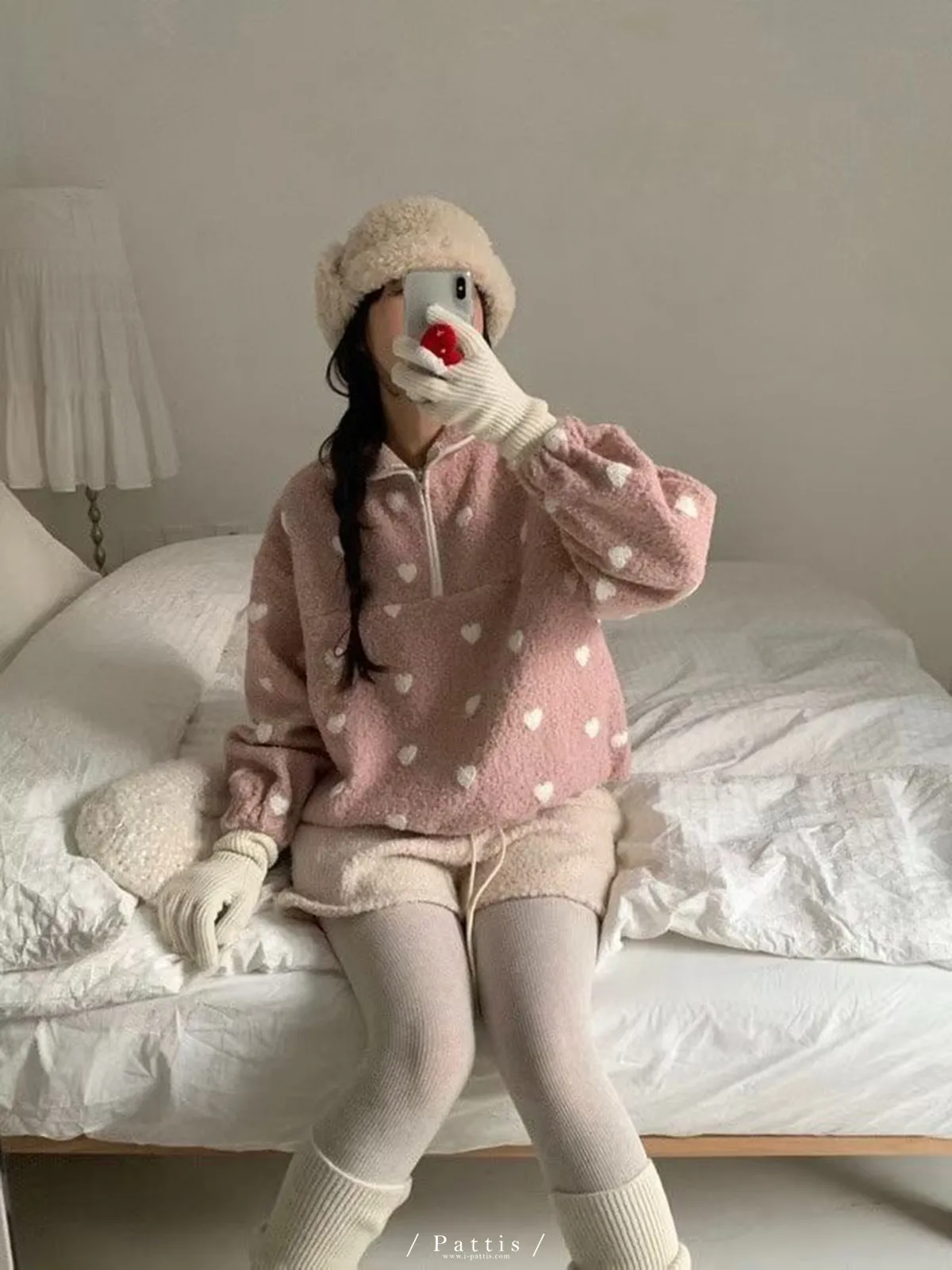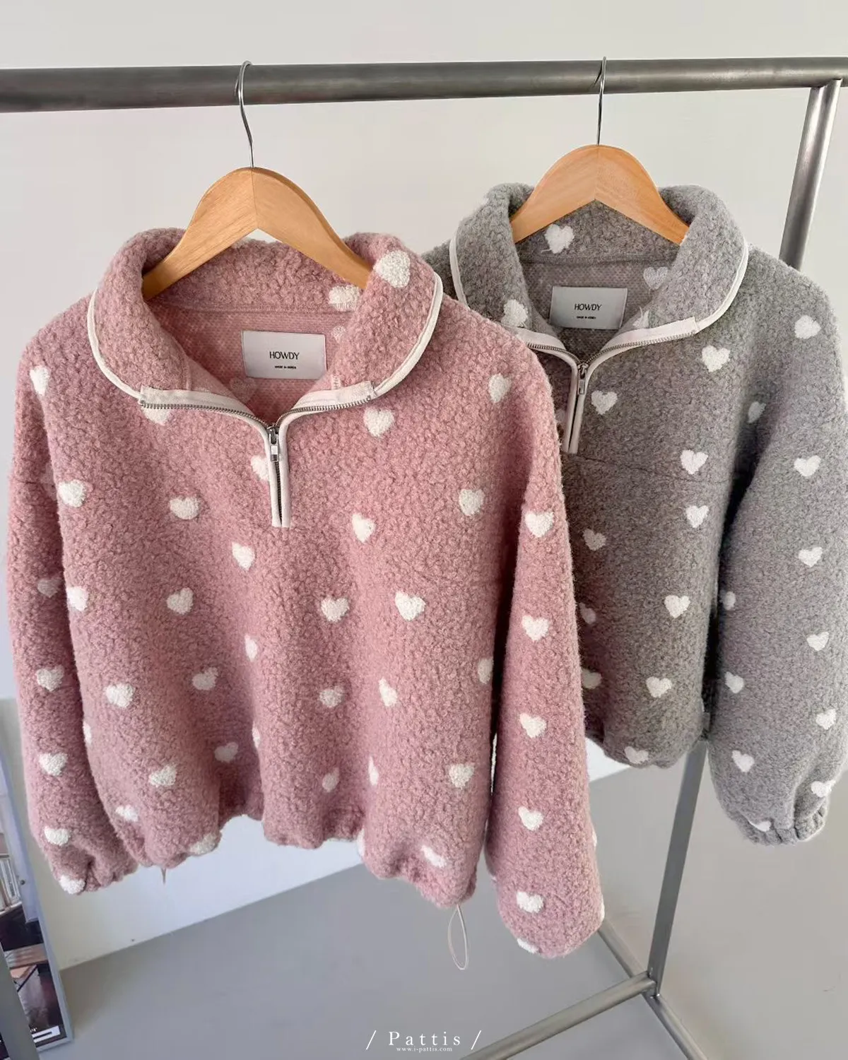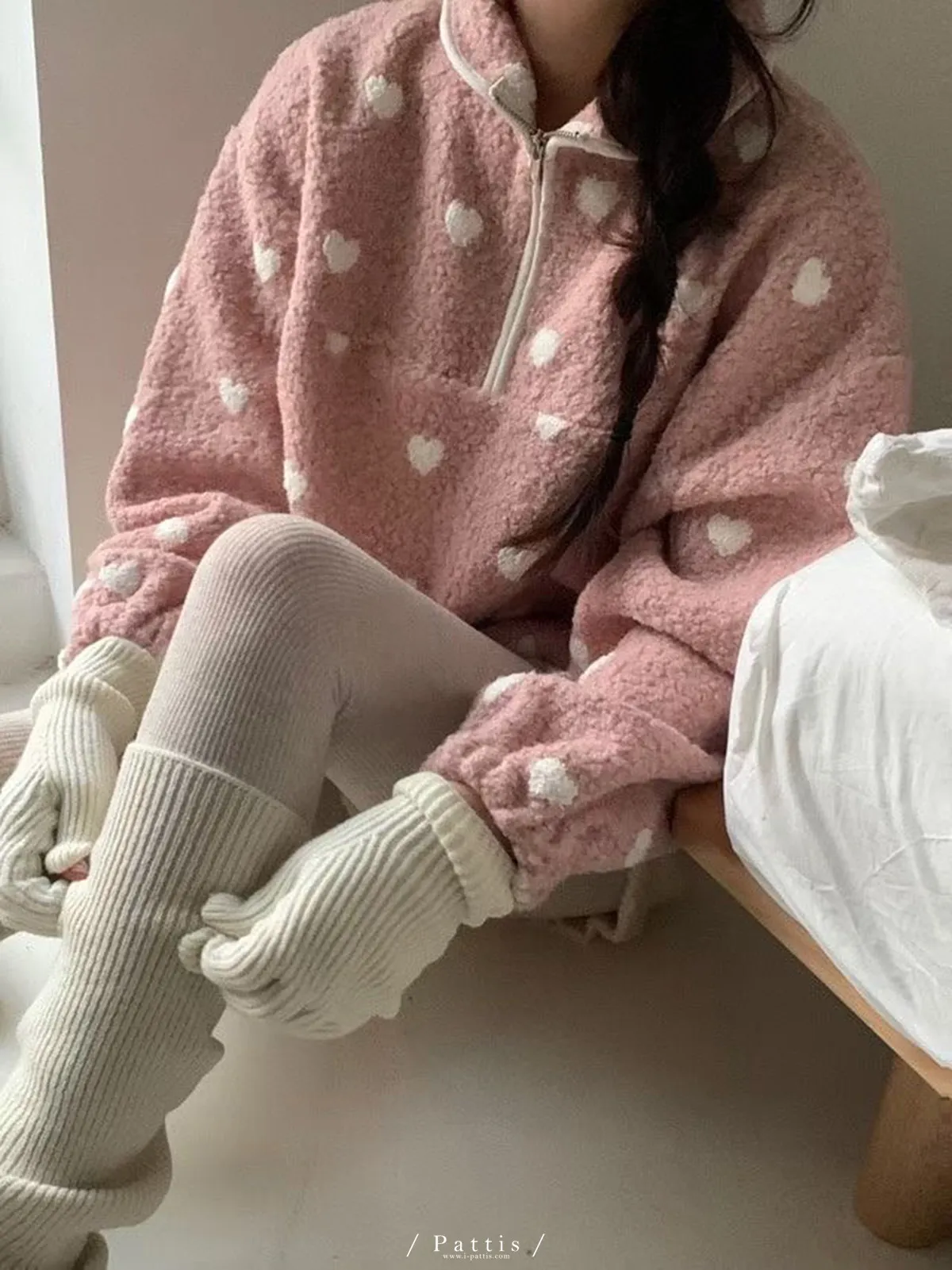 *特*愛心雙色毛毛拉鍊翻領上衣(粉)