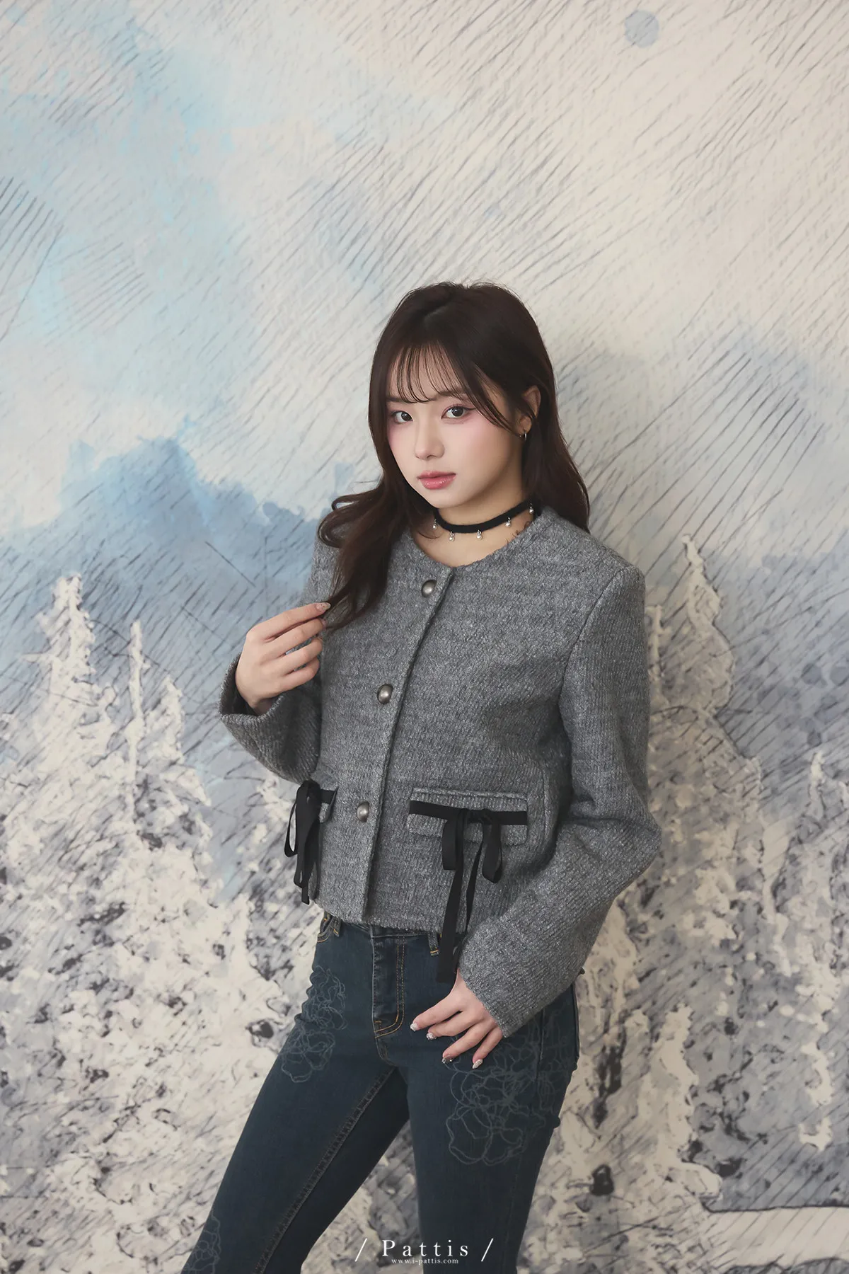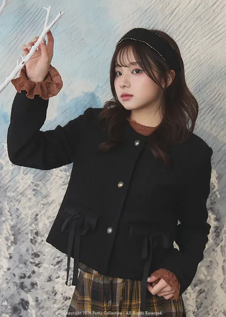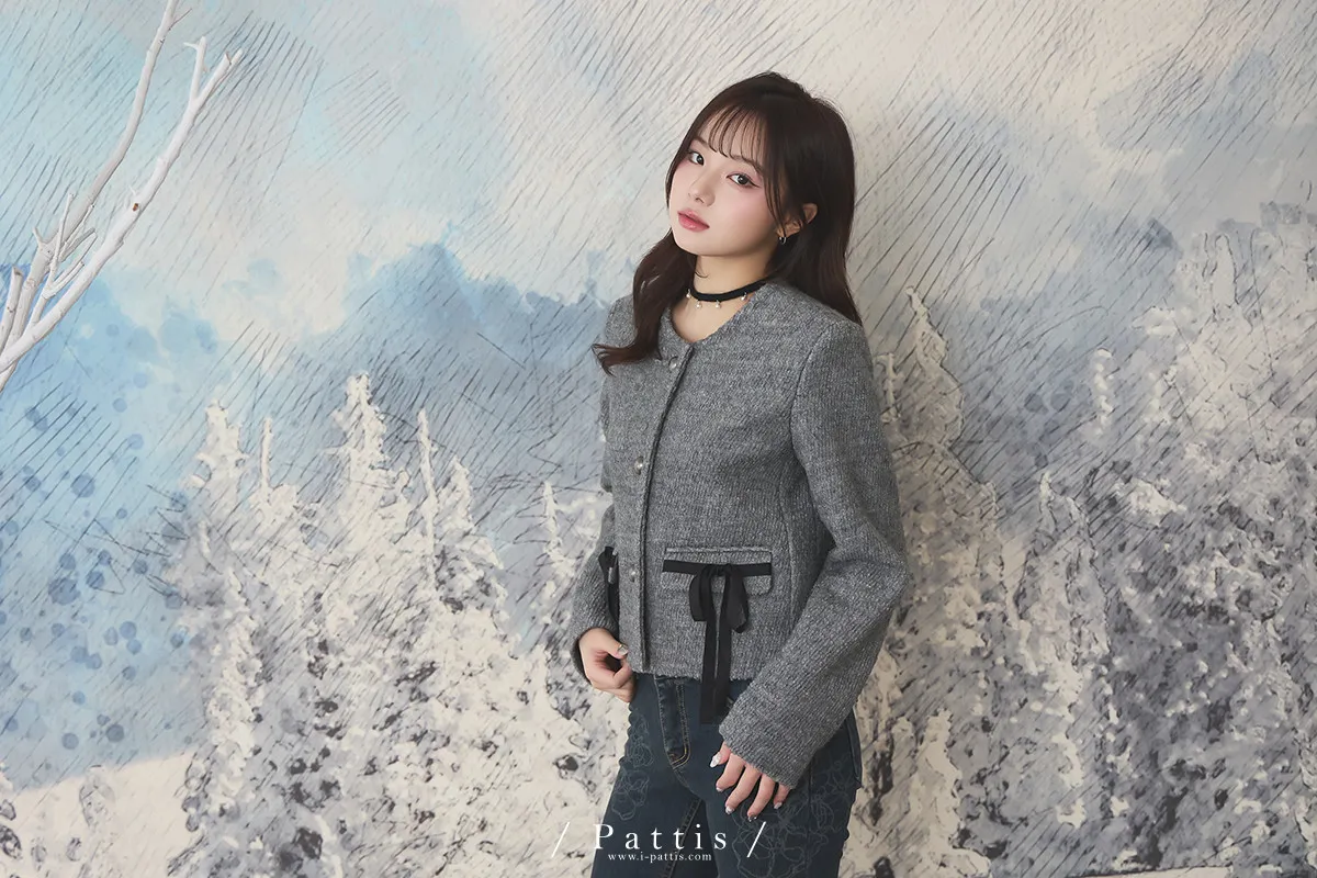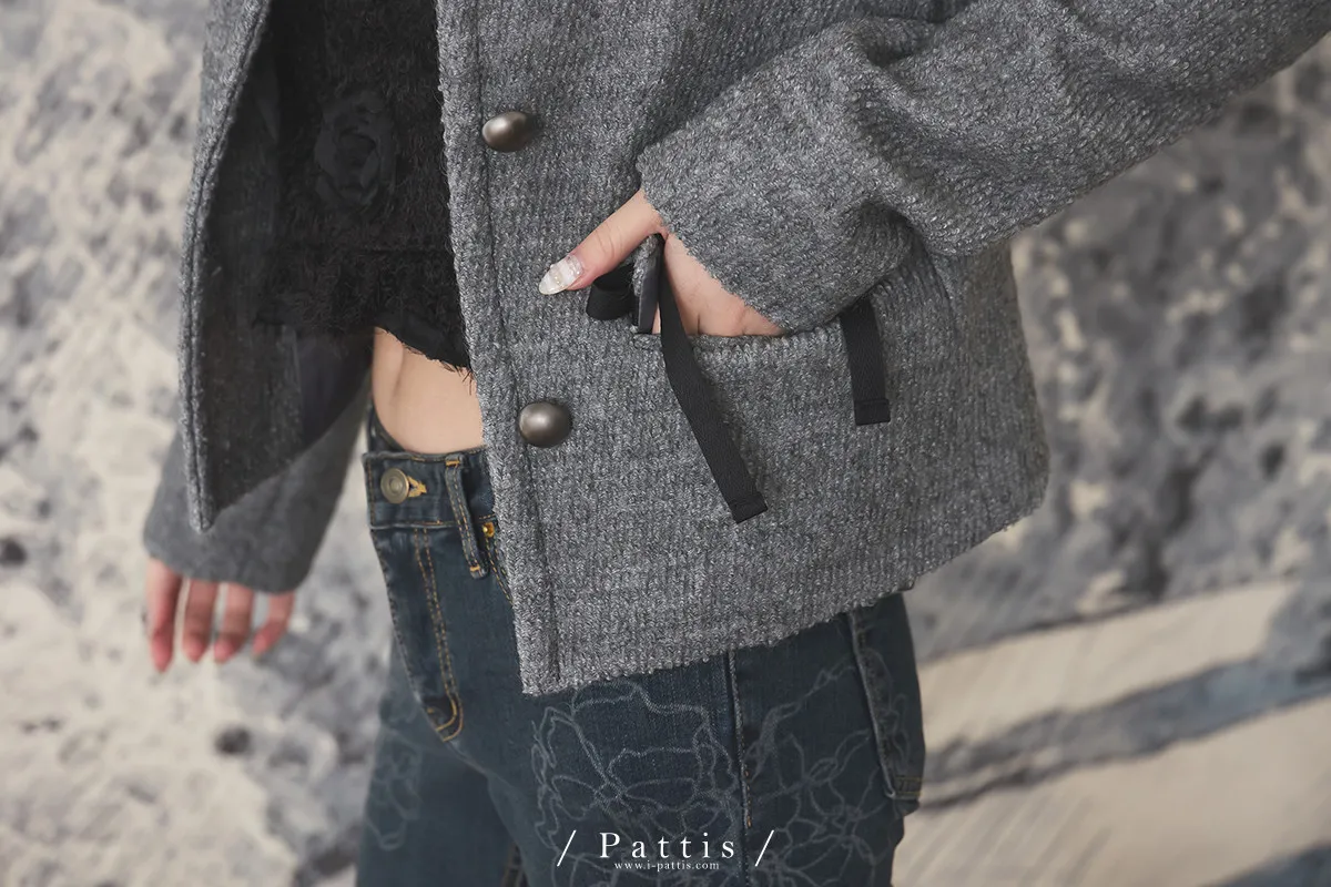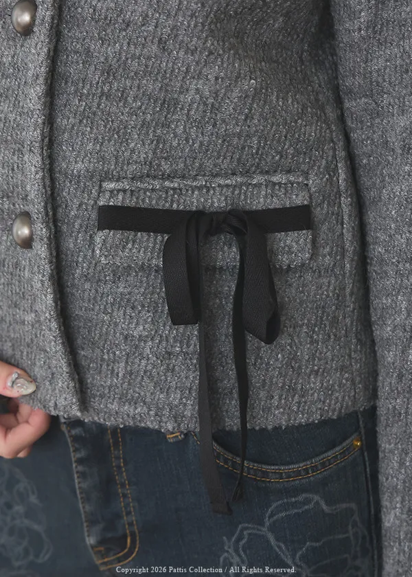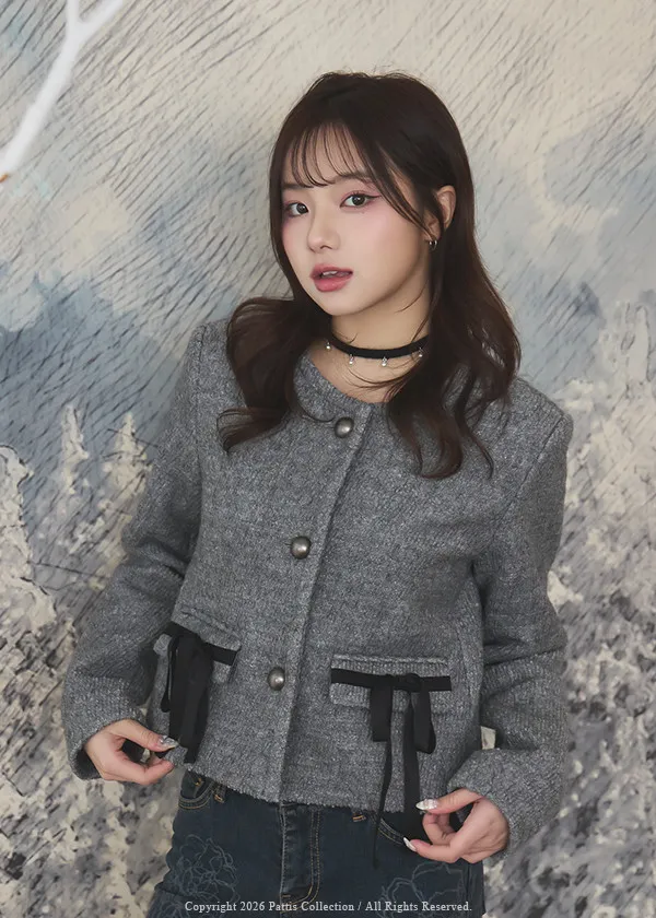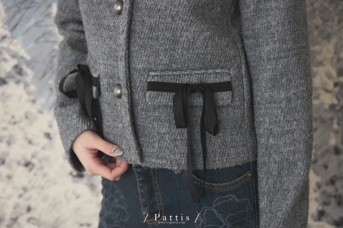 親手包的禮物 | 50%羊毛雙蝴蝶結無領外套(灰)