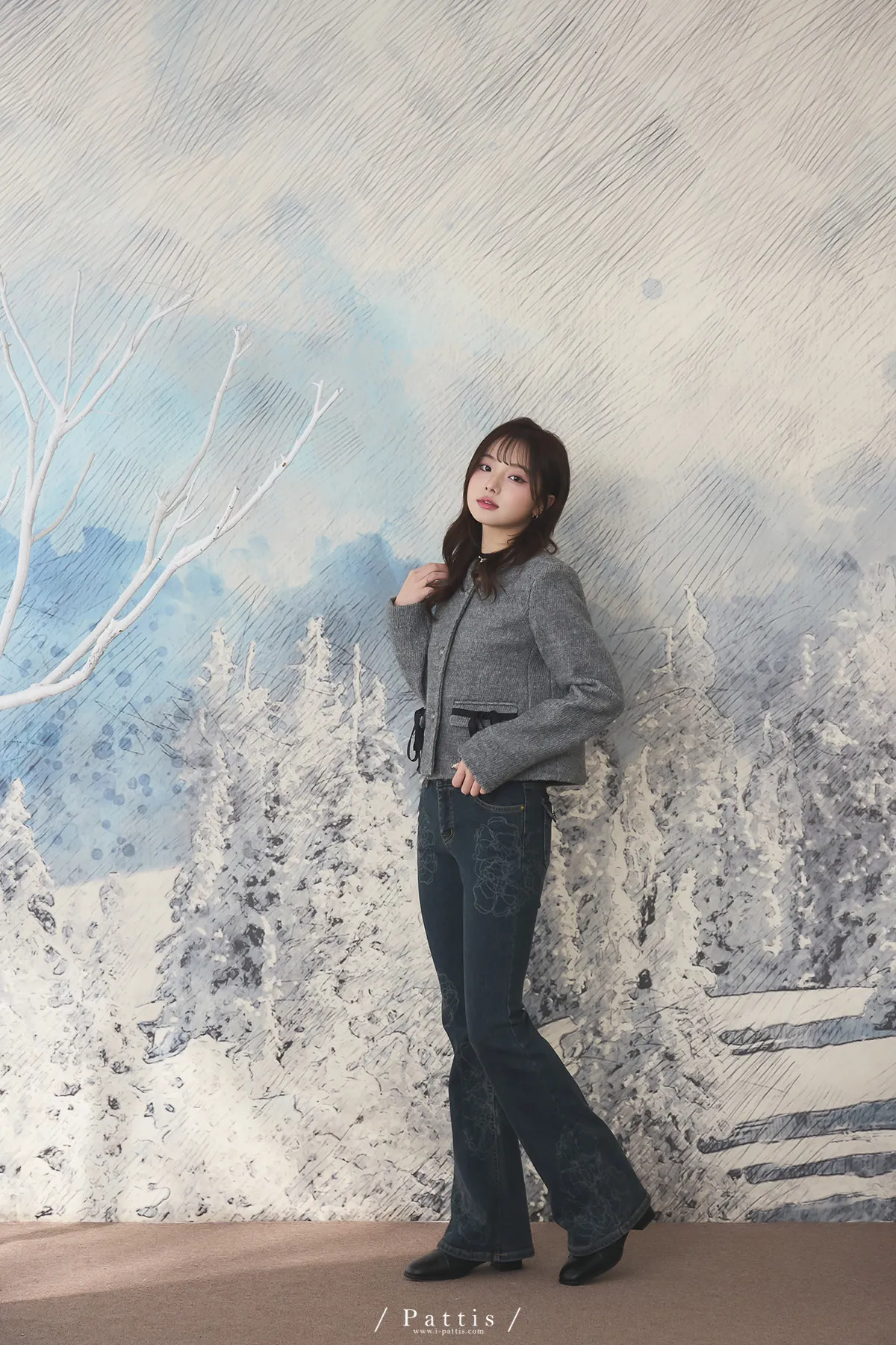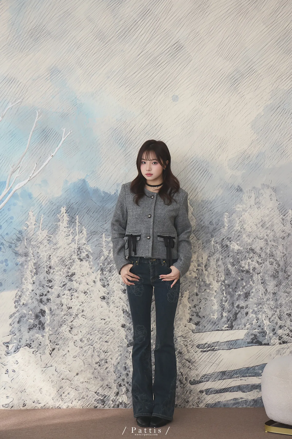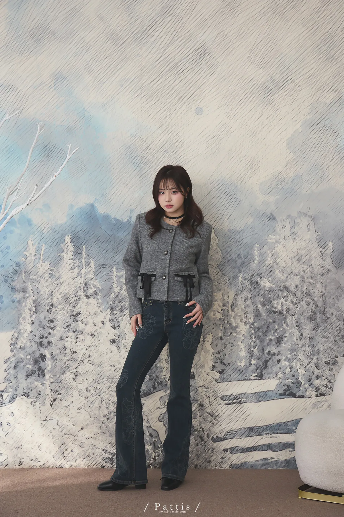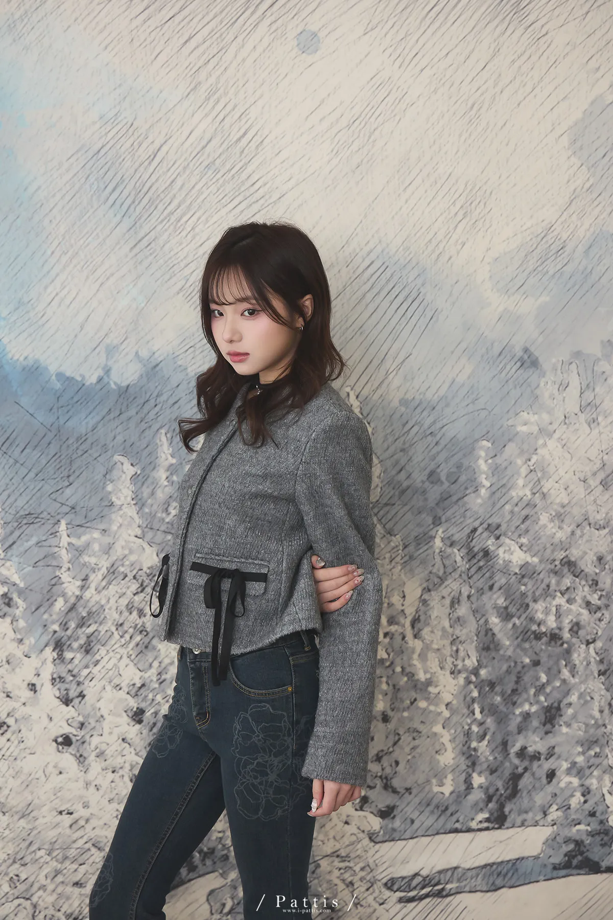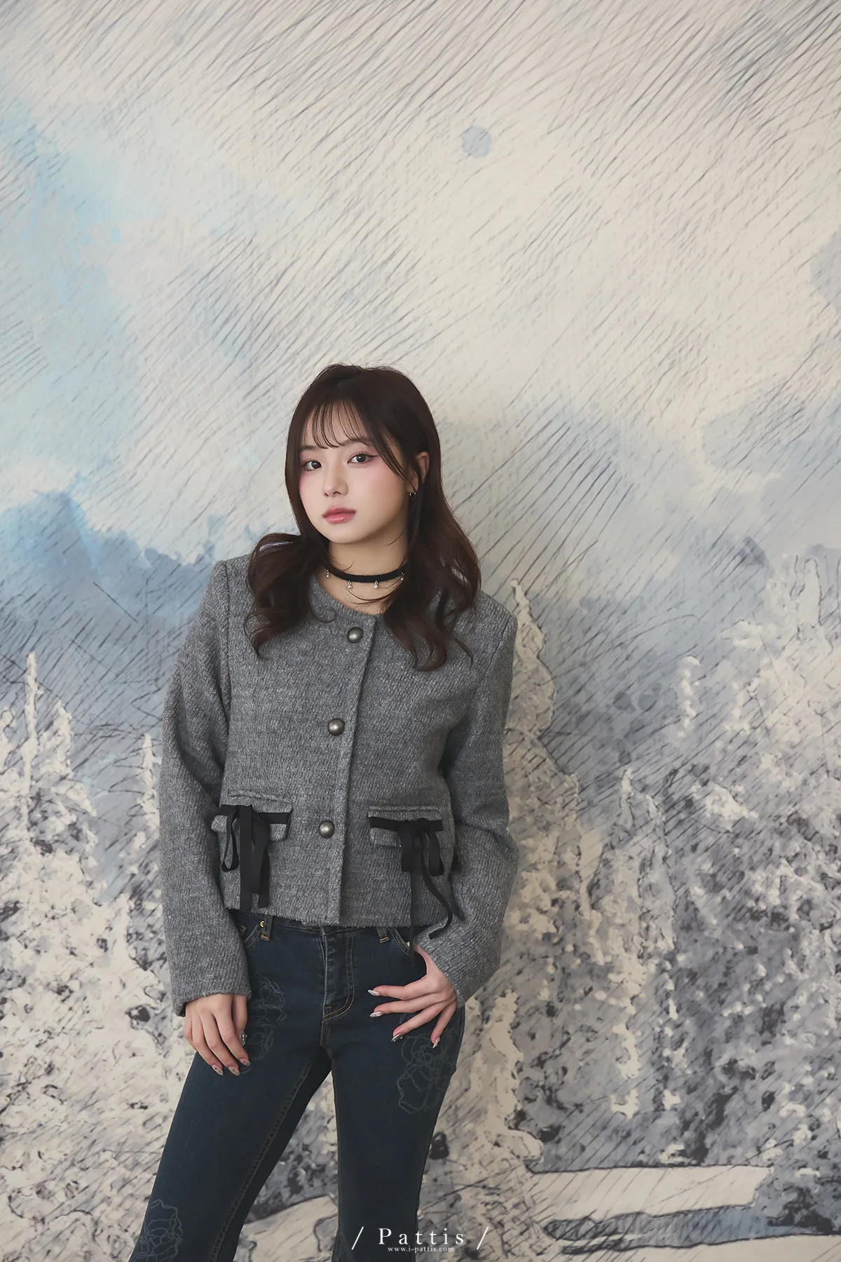 親手包的禮物 | 50%羊毛雙蝴蝶結無領外套(灰)