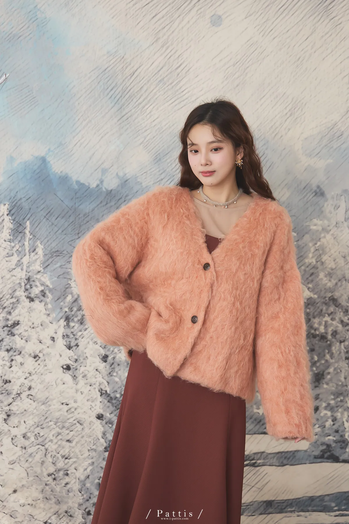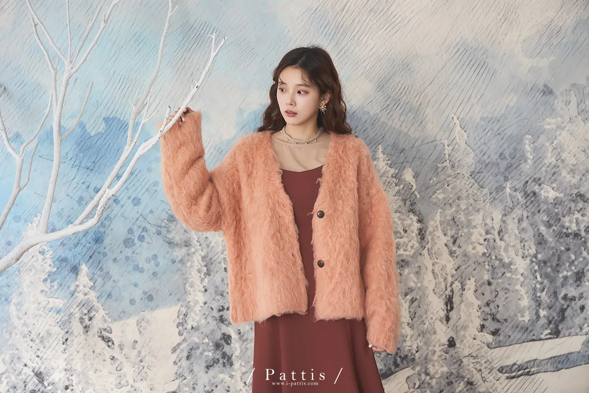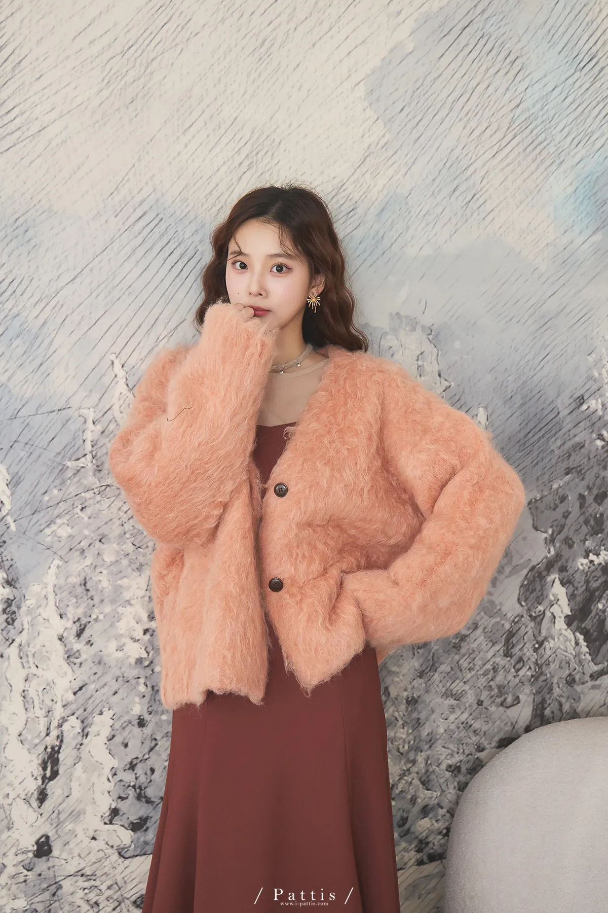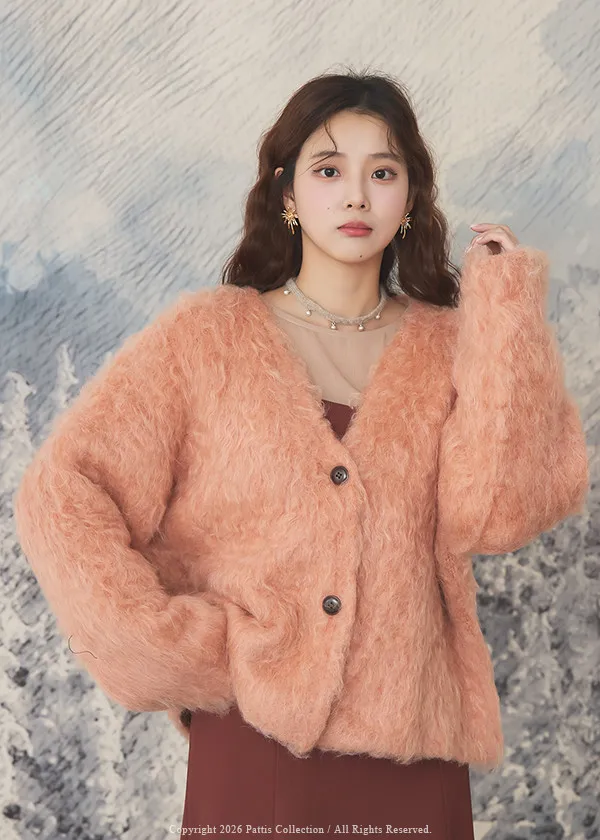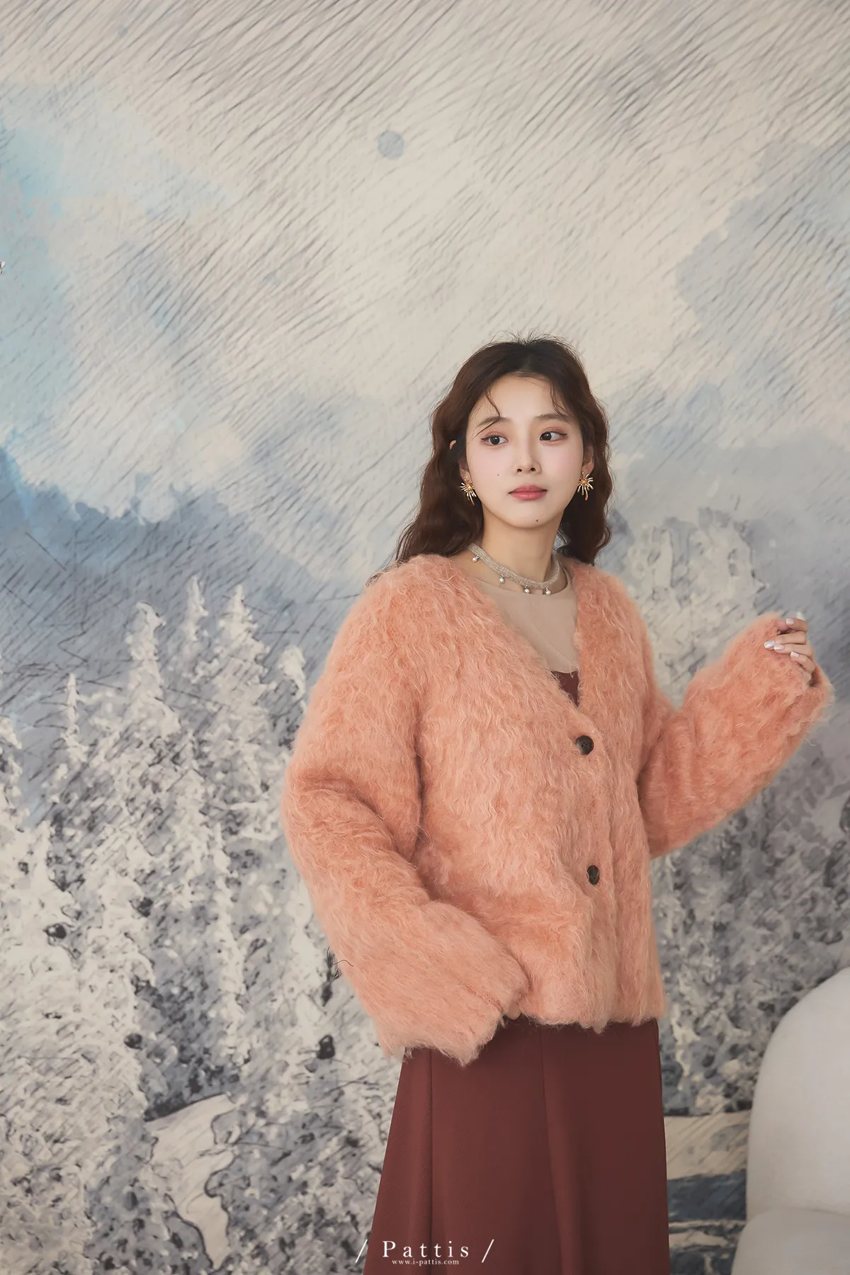 (限量現貨)被煽動的一種眷戀 | 圈圈羊毛開襟V領外套(鮭魚粉橘)