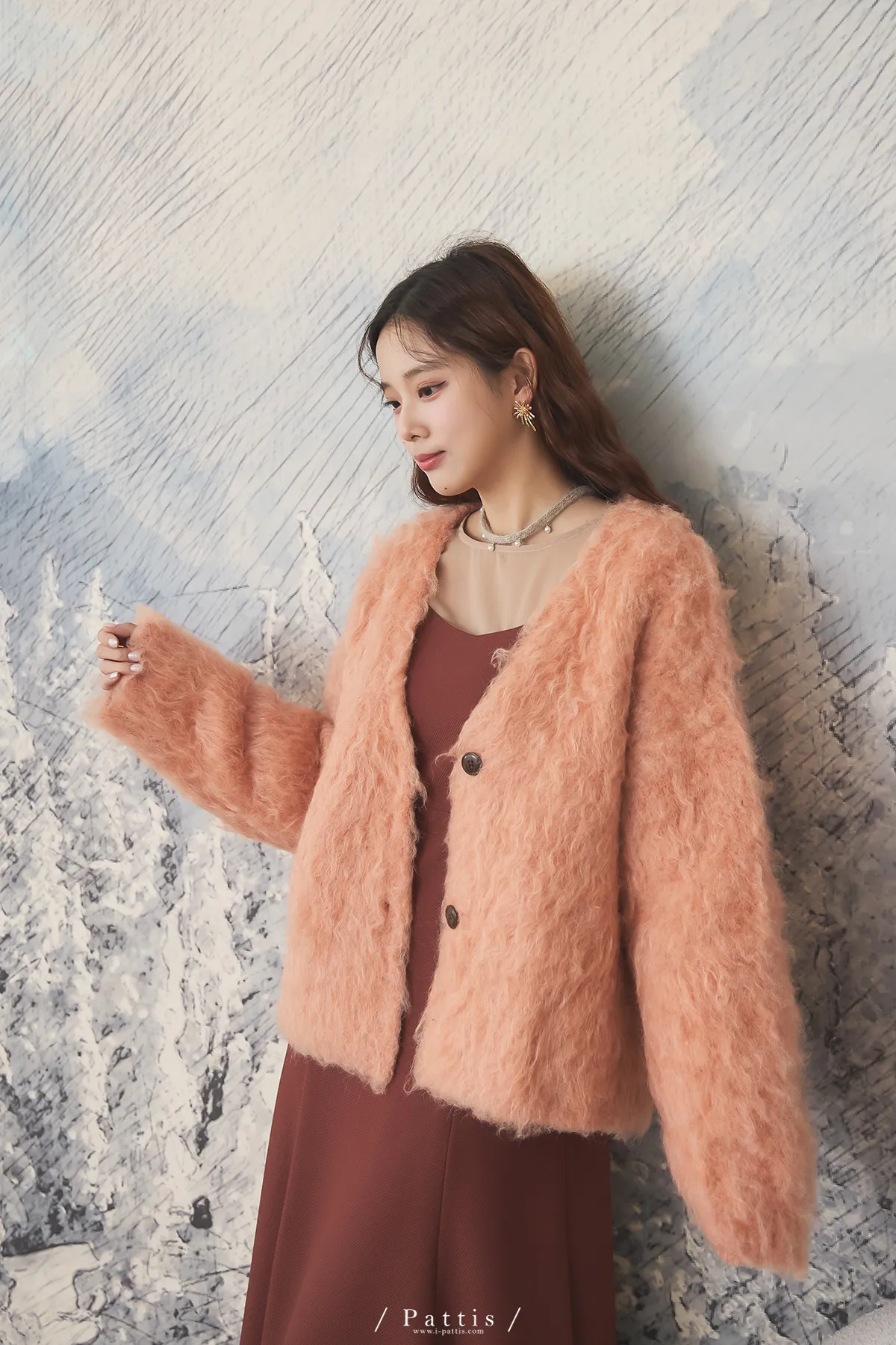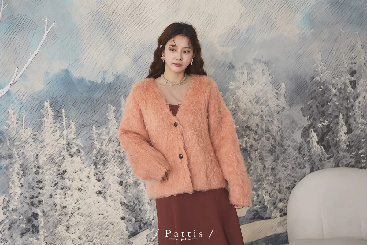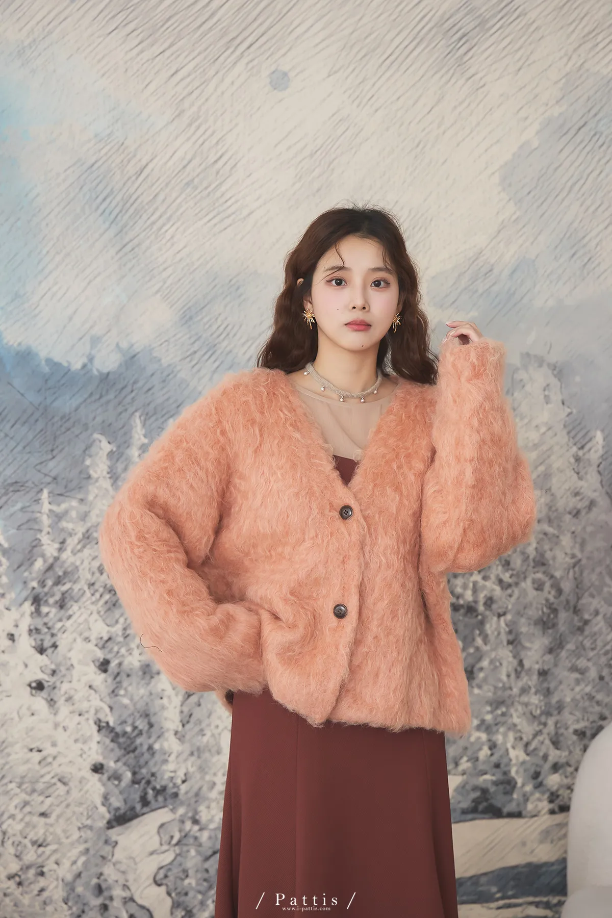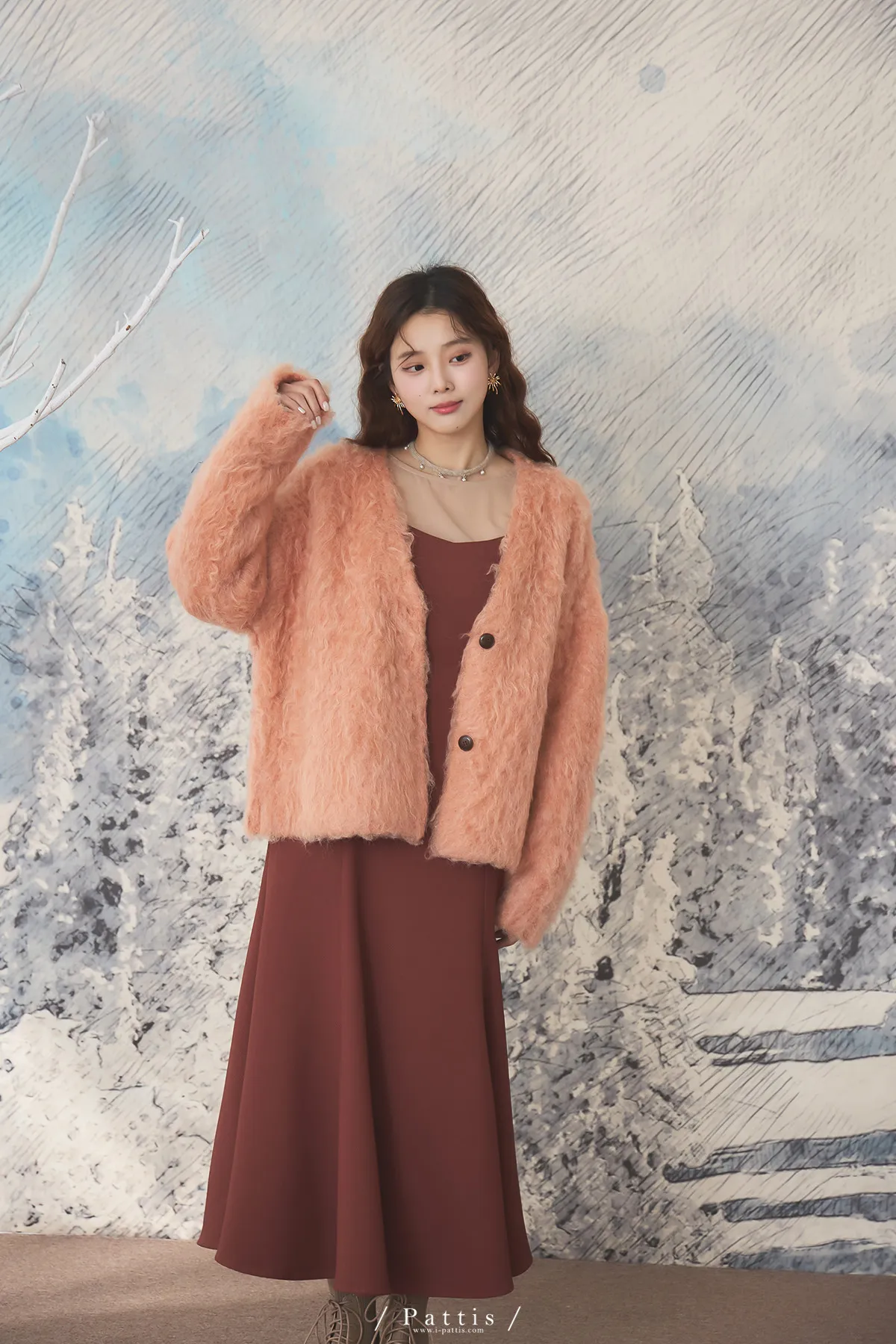 (限量現貨)被煽動的一種眷戀 | 圈圈羊毛開襟V領外套(鮭魚粉橘)