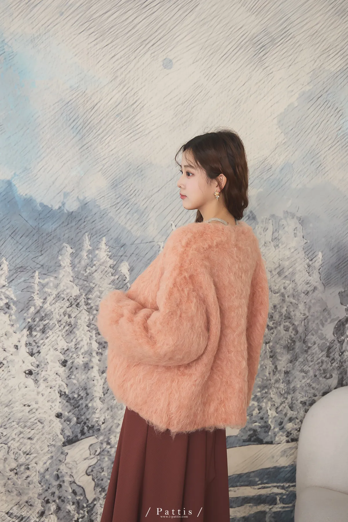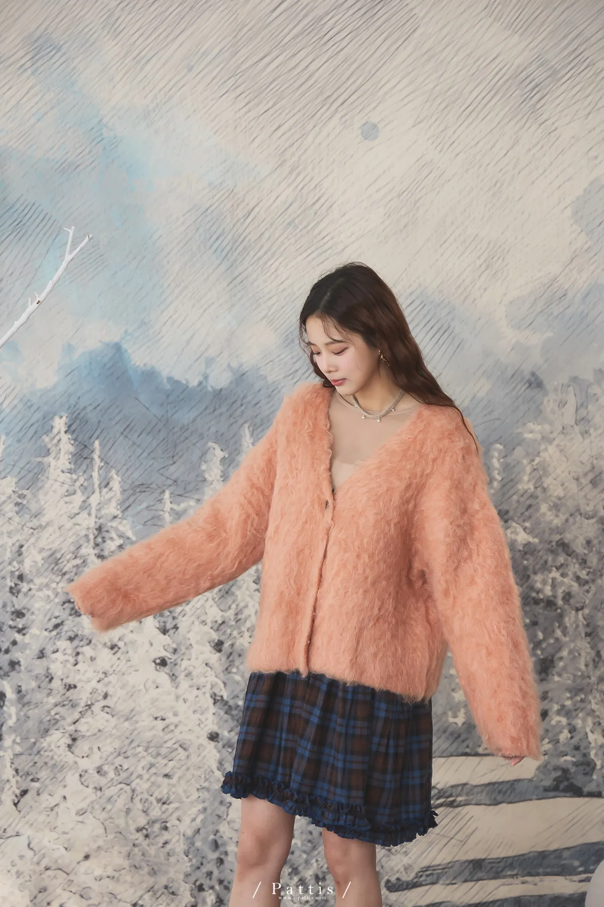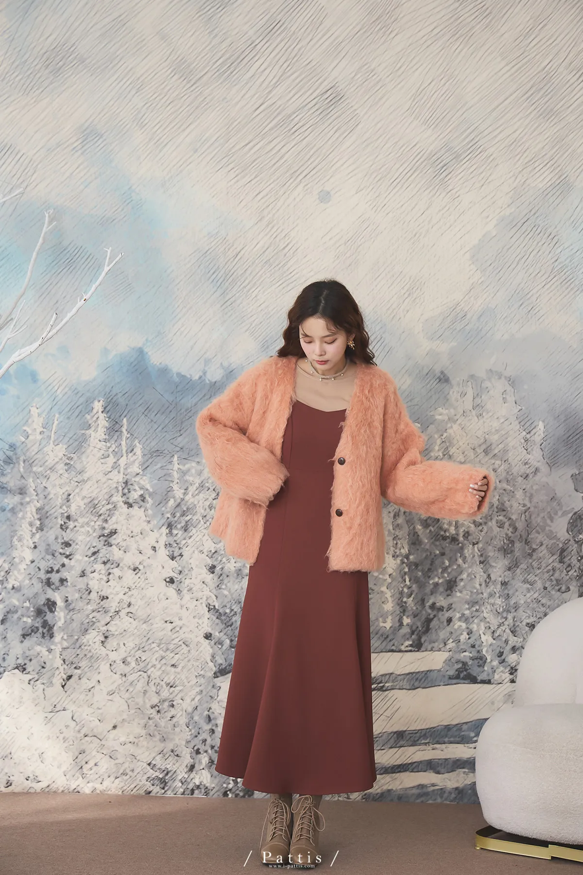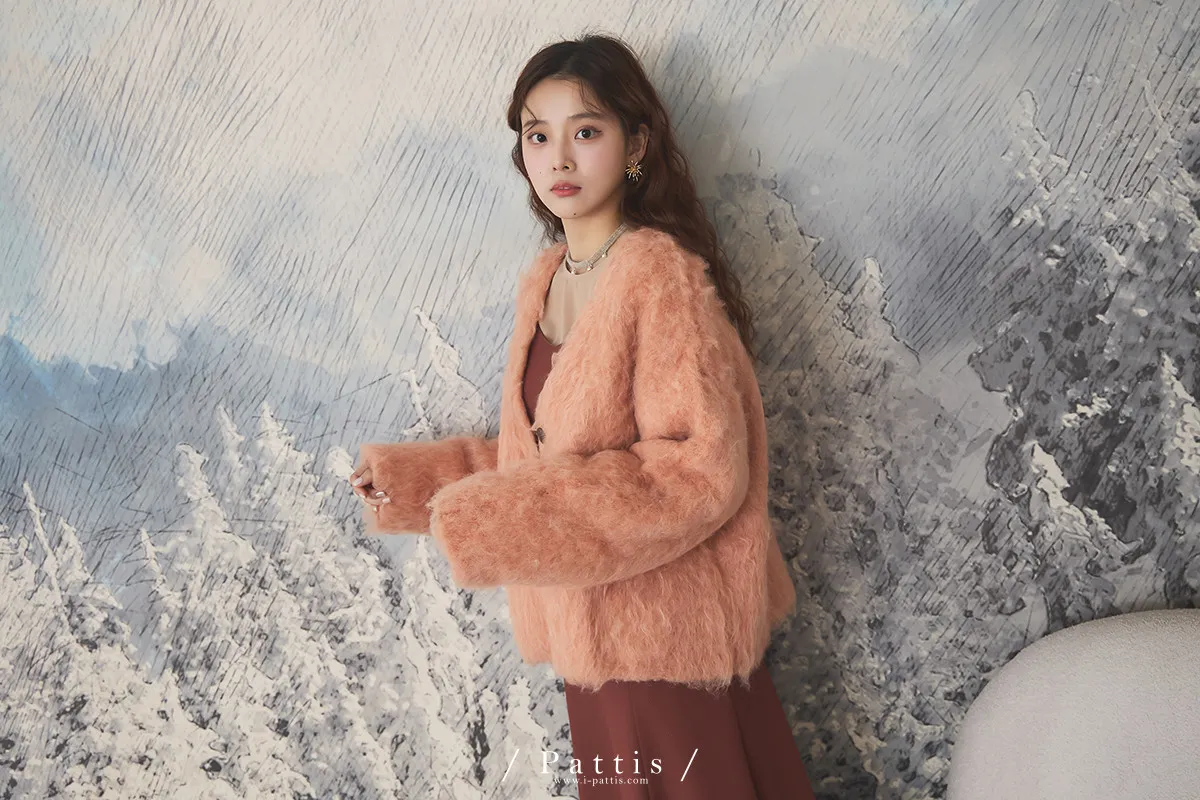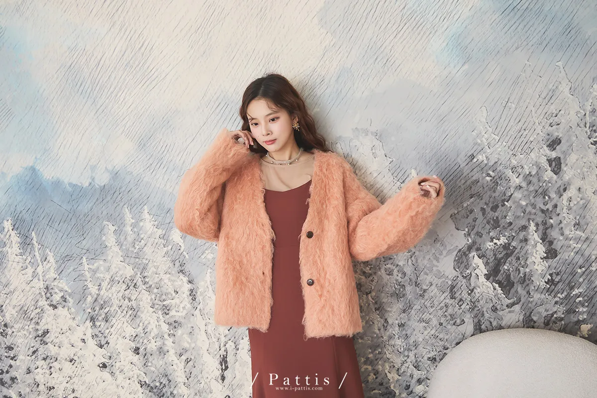 (限量現貨)被煽動的一種眷戀 | 圈圈羊毛開襟V領外套(鮭魚粉橘)