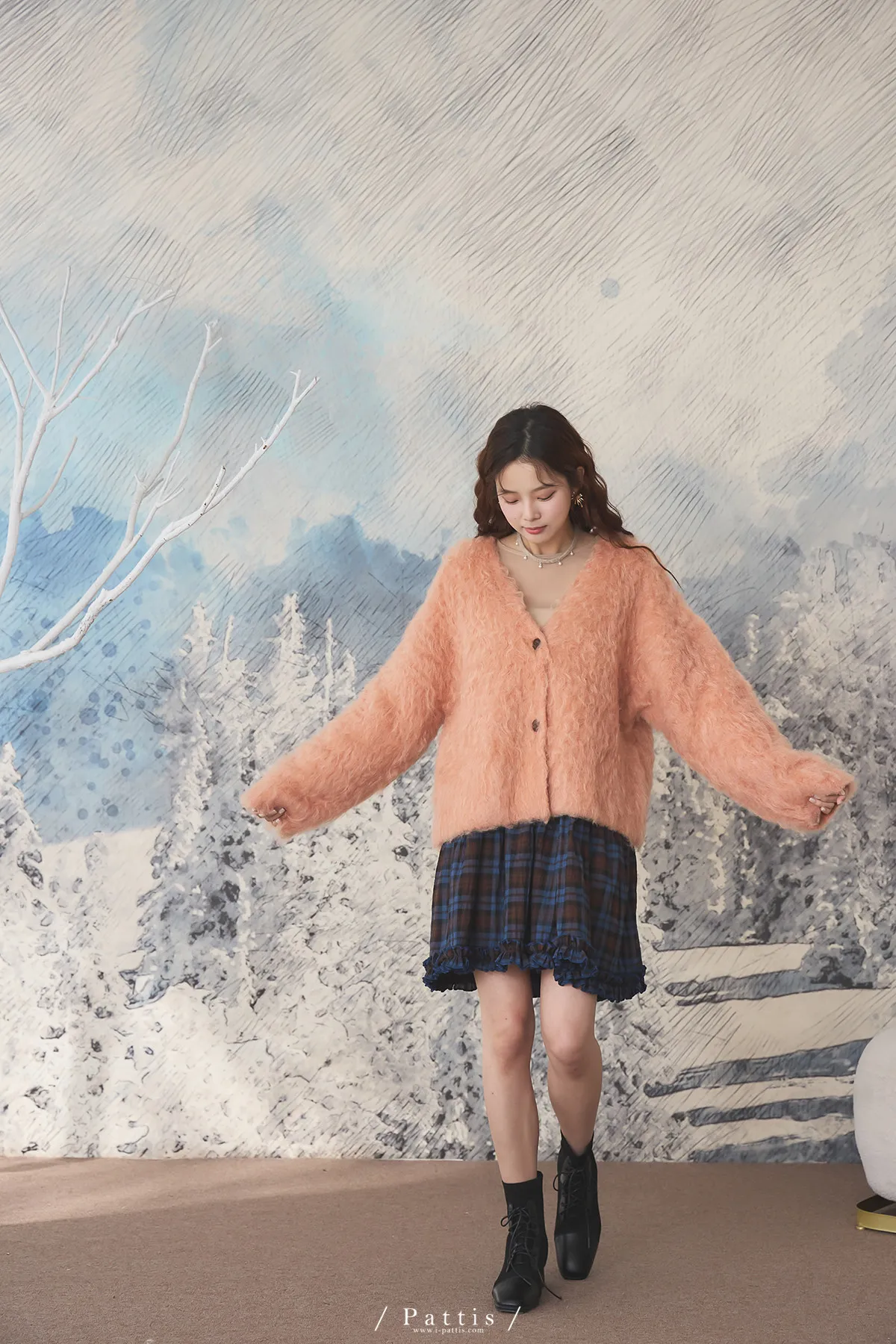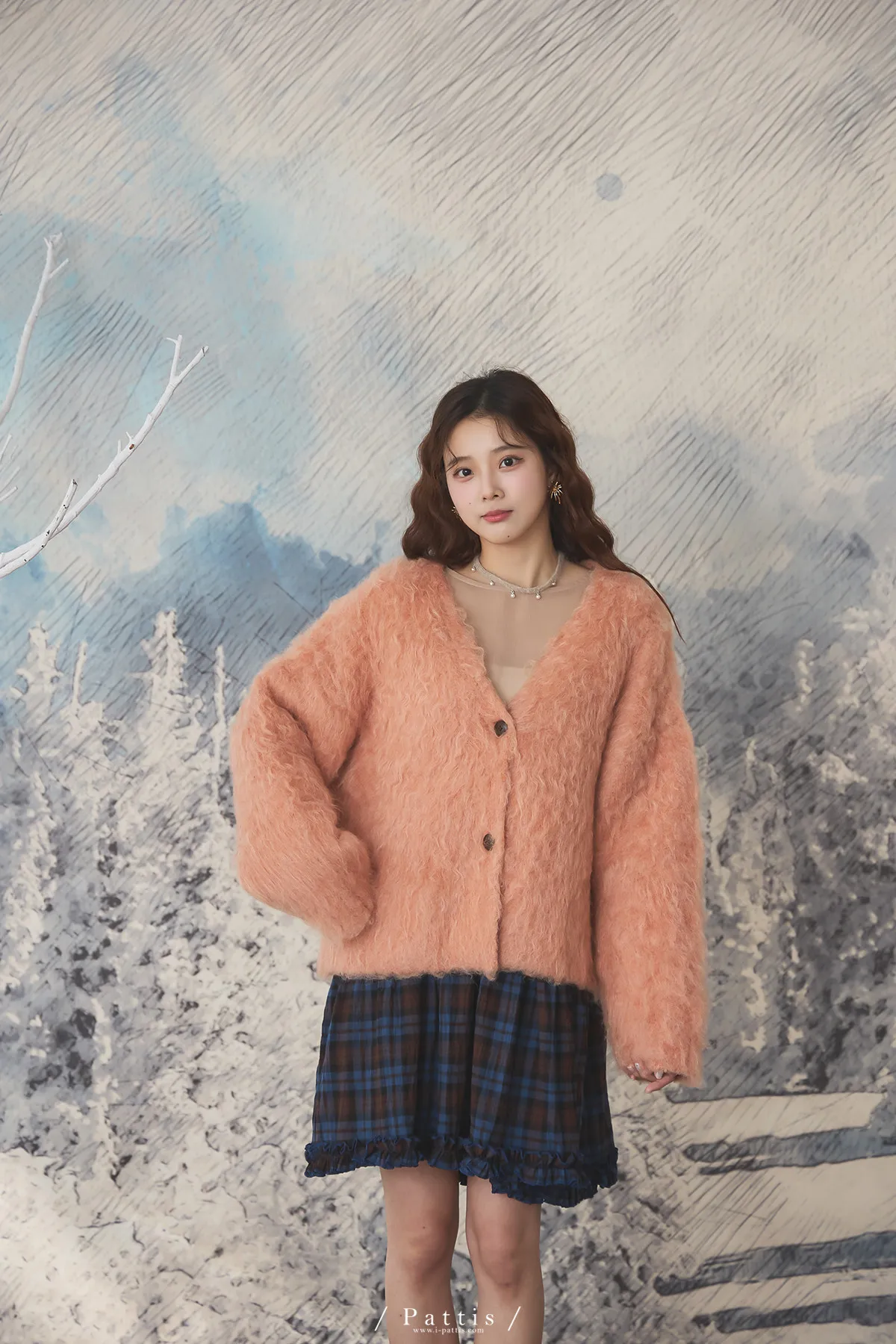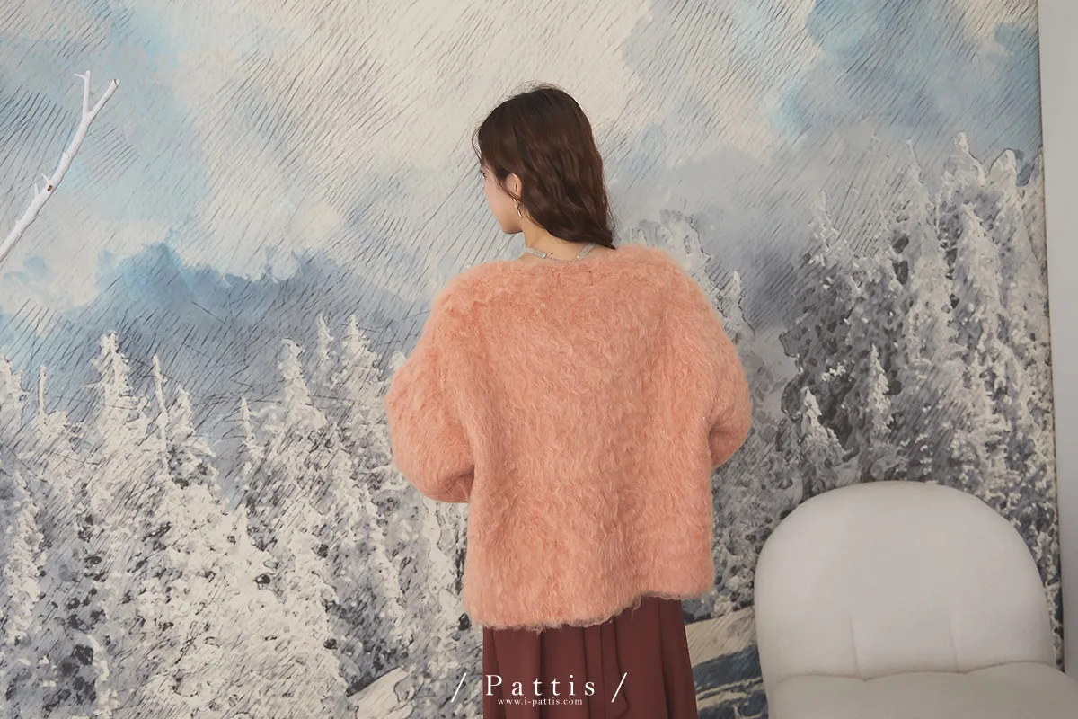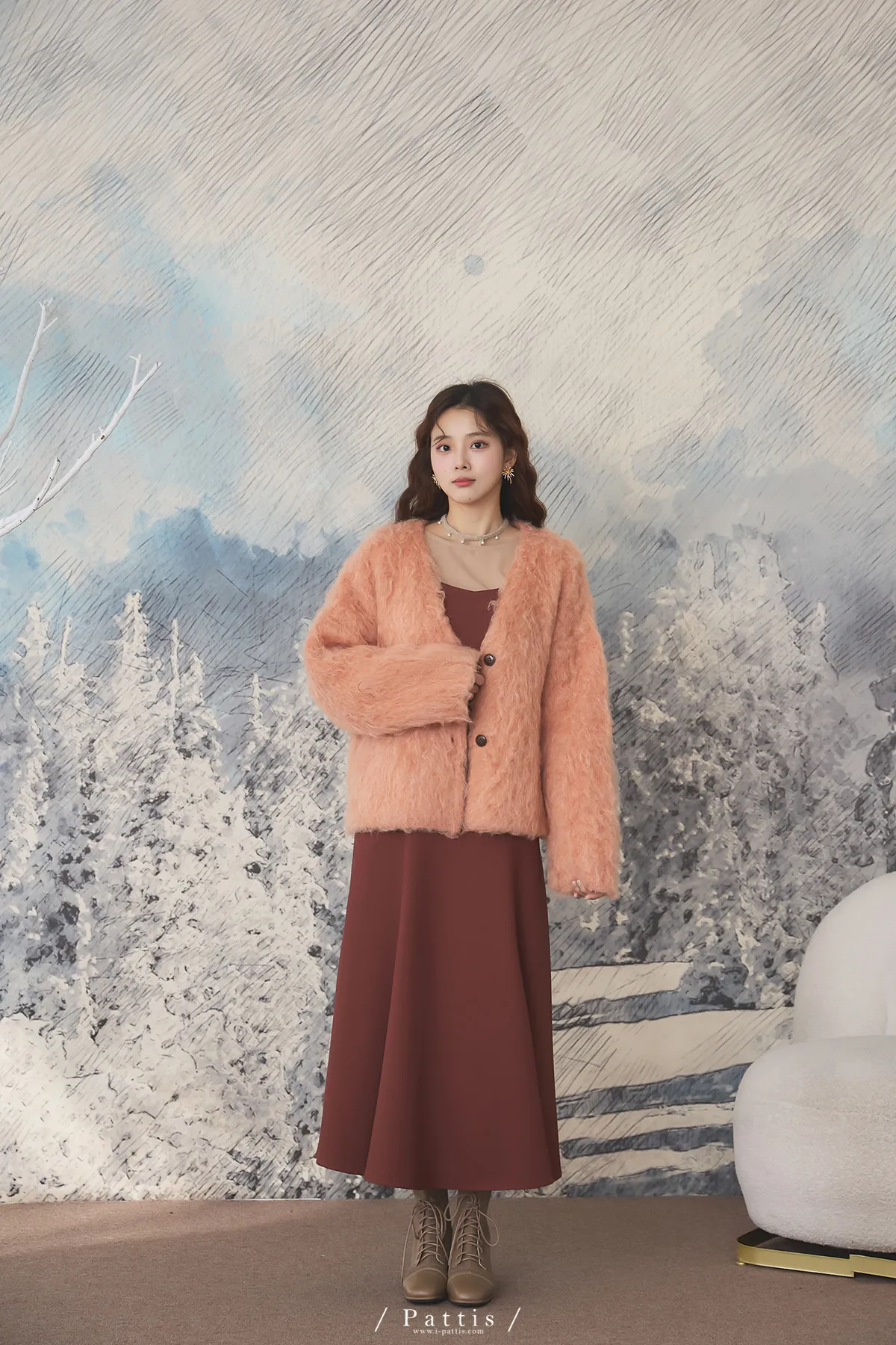 (限量現貨)被煽動的一種眷戀 | 圈圈羊毛開襟V領外套(鮭魚粉橘)