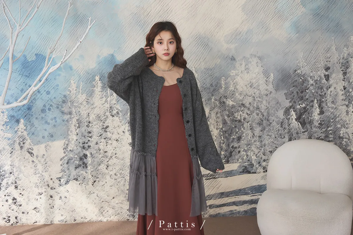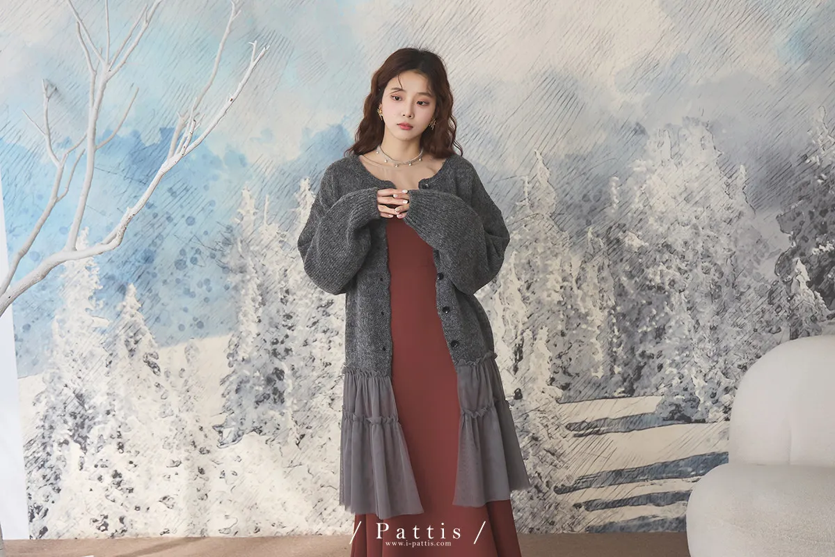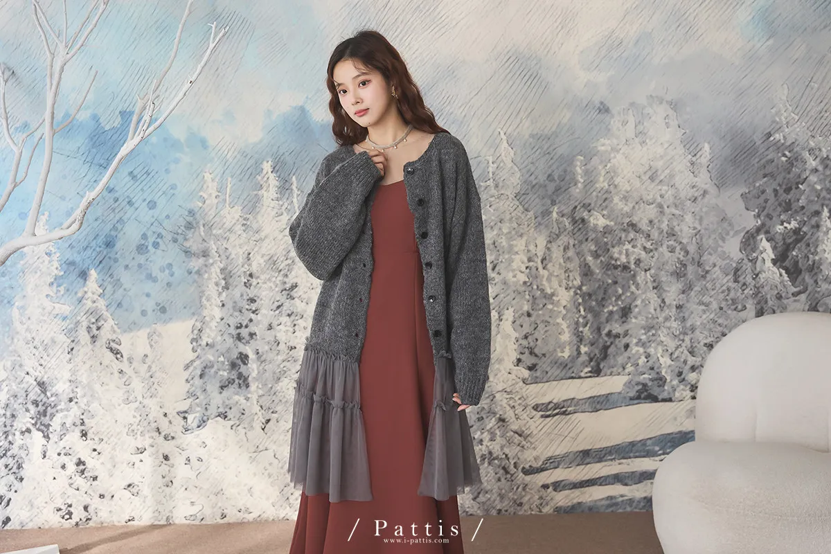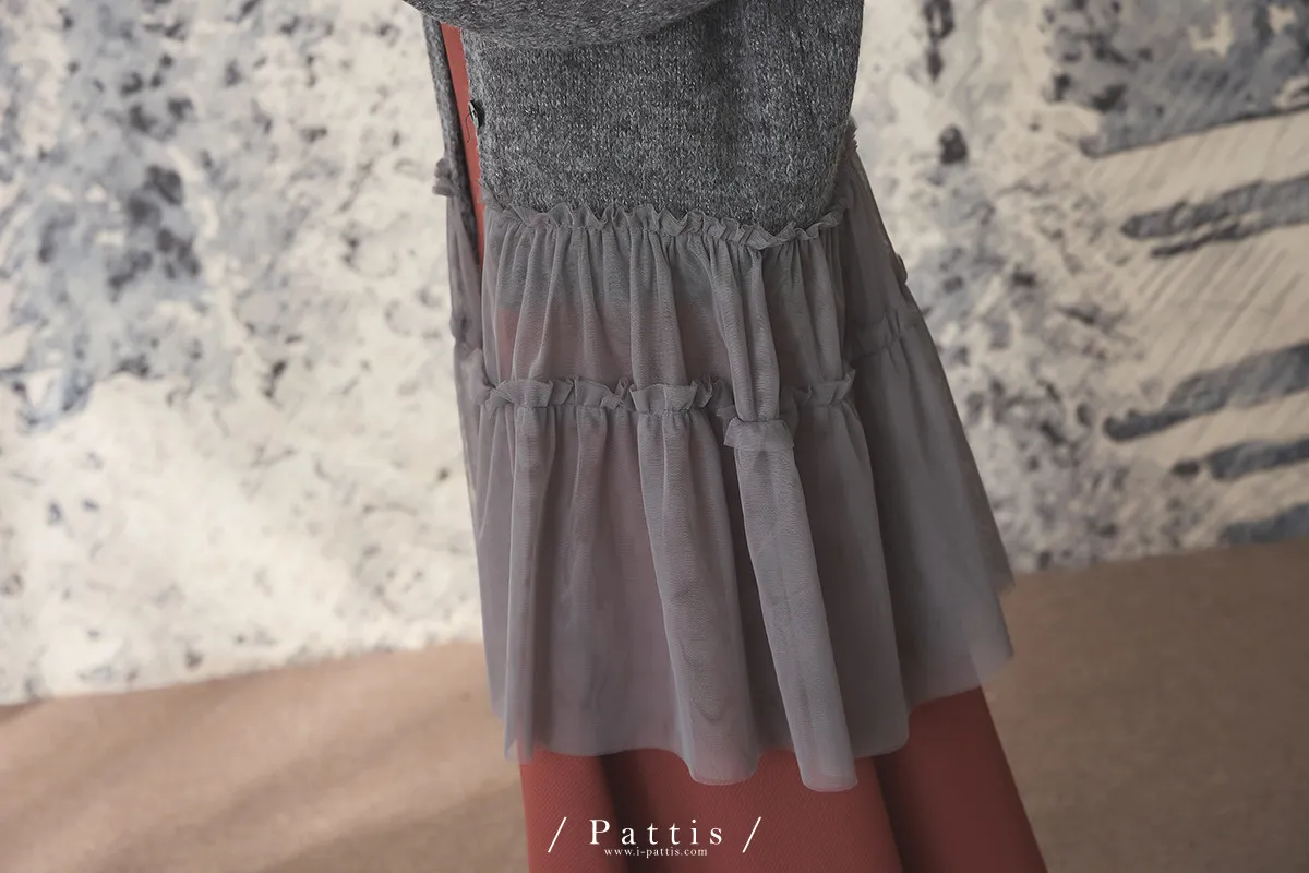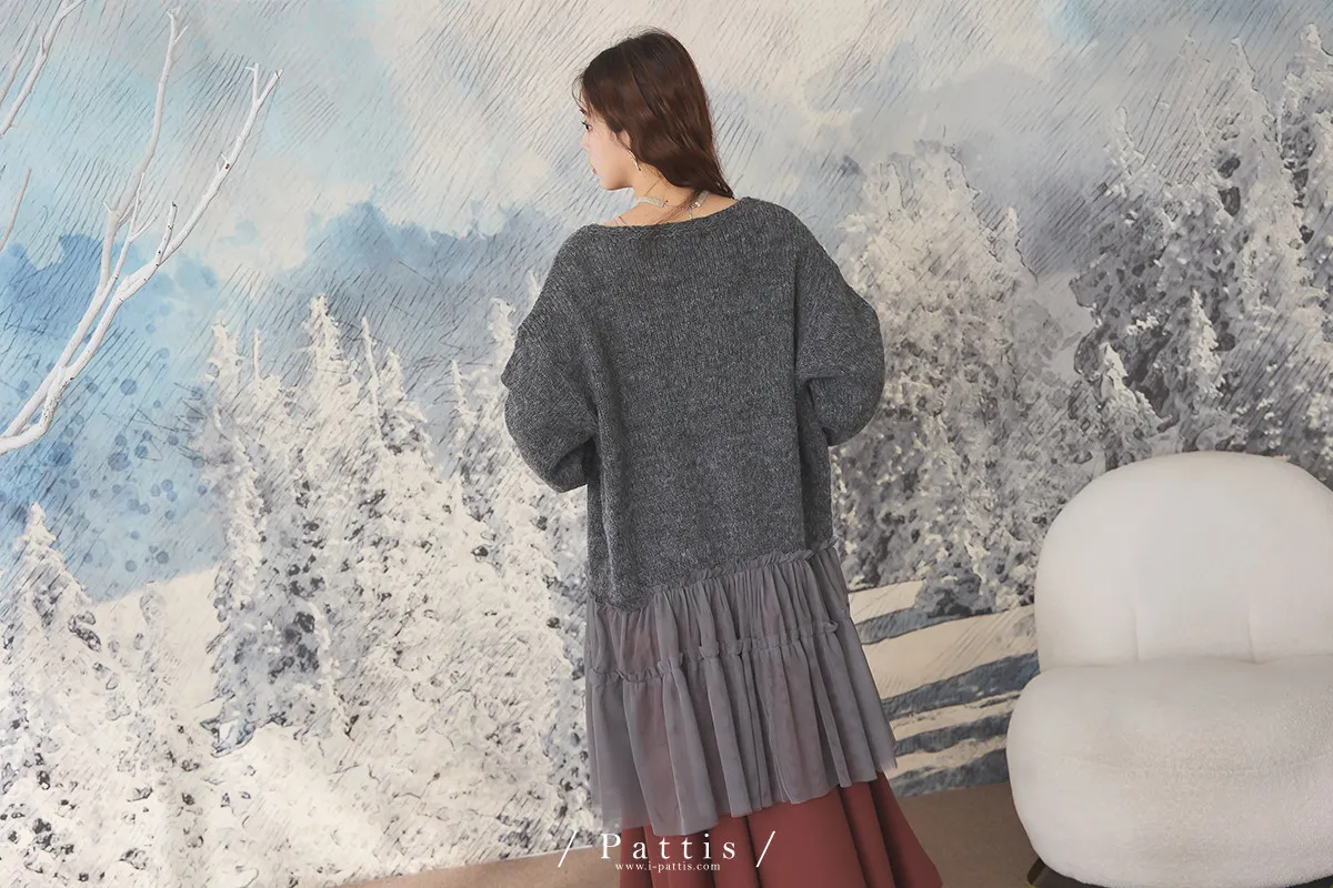 喜歡你的眼裡有秘密 | 10%羊毛勾針拼接網紗開襟外套(灰黑)