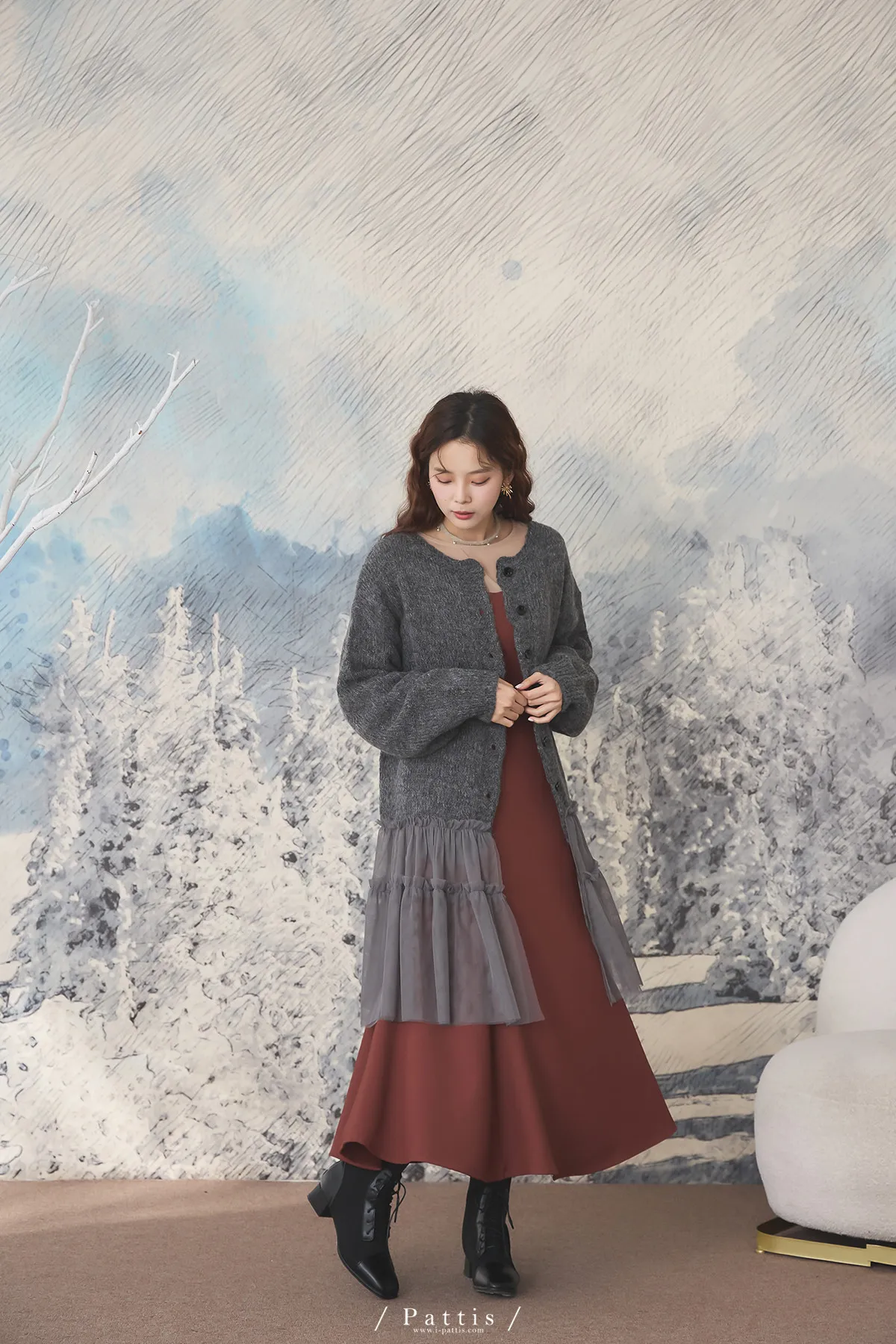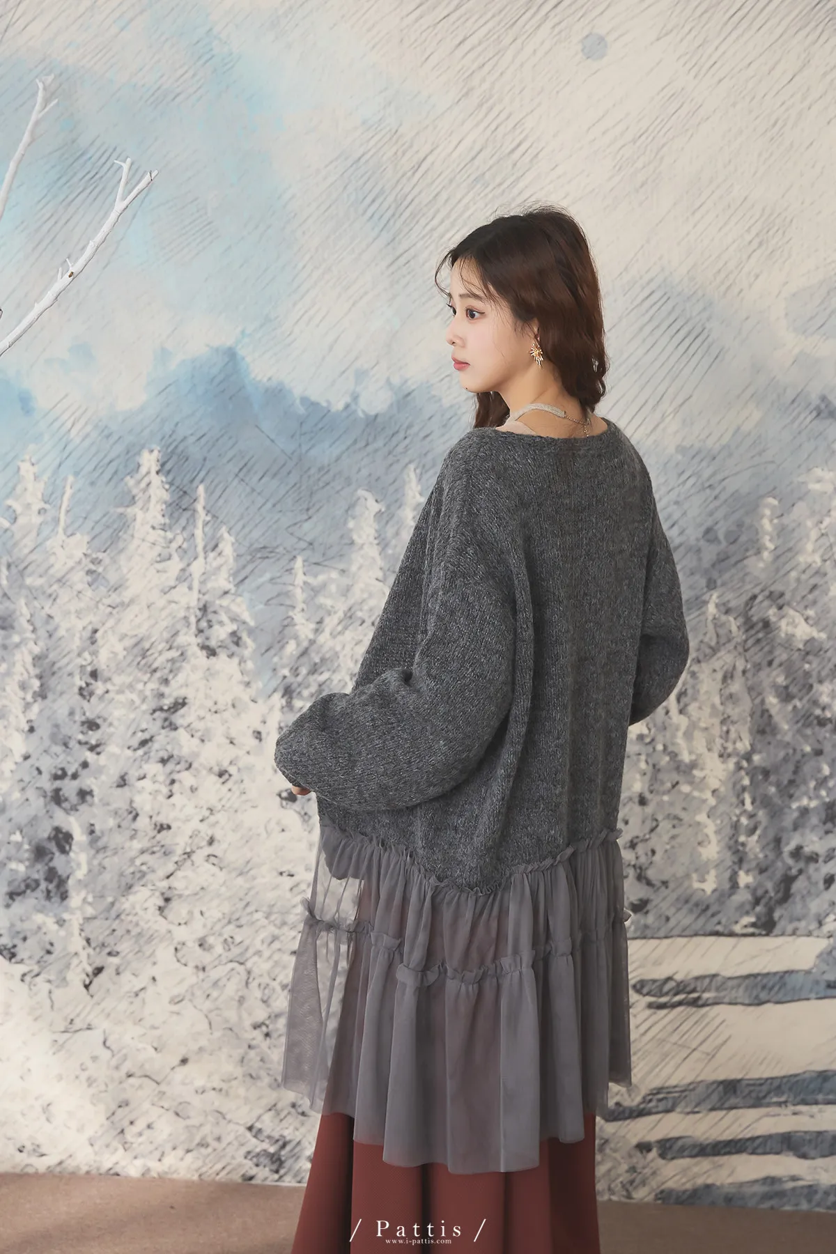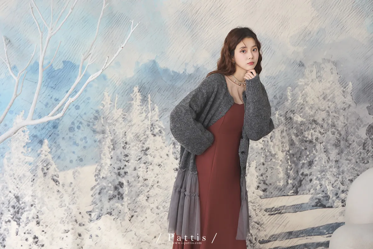 喜歡你的眼裡有秘密 | 10%羊毛勾針拼接網紗開襟外套(灰黑)