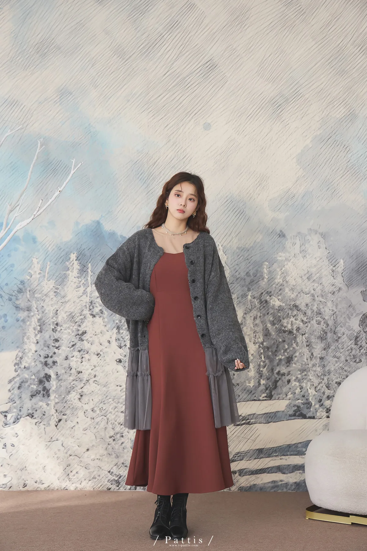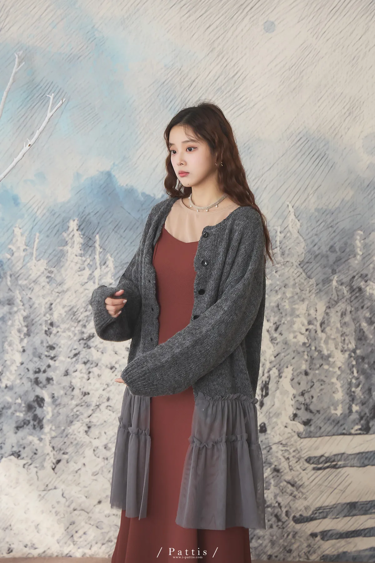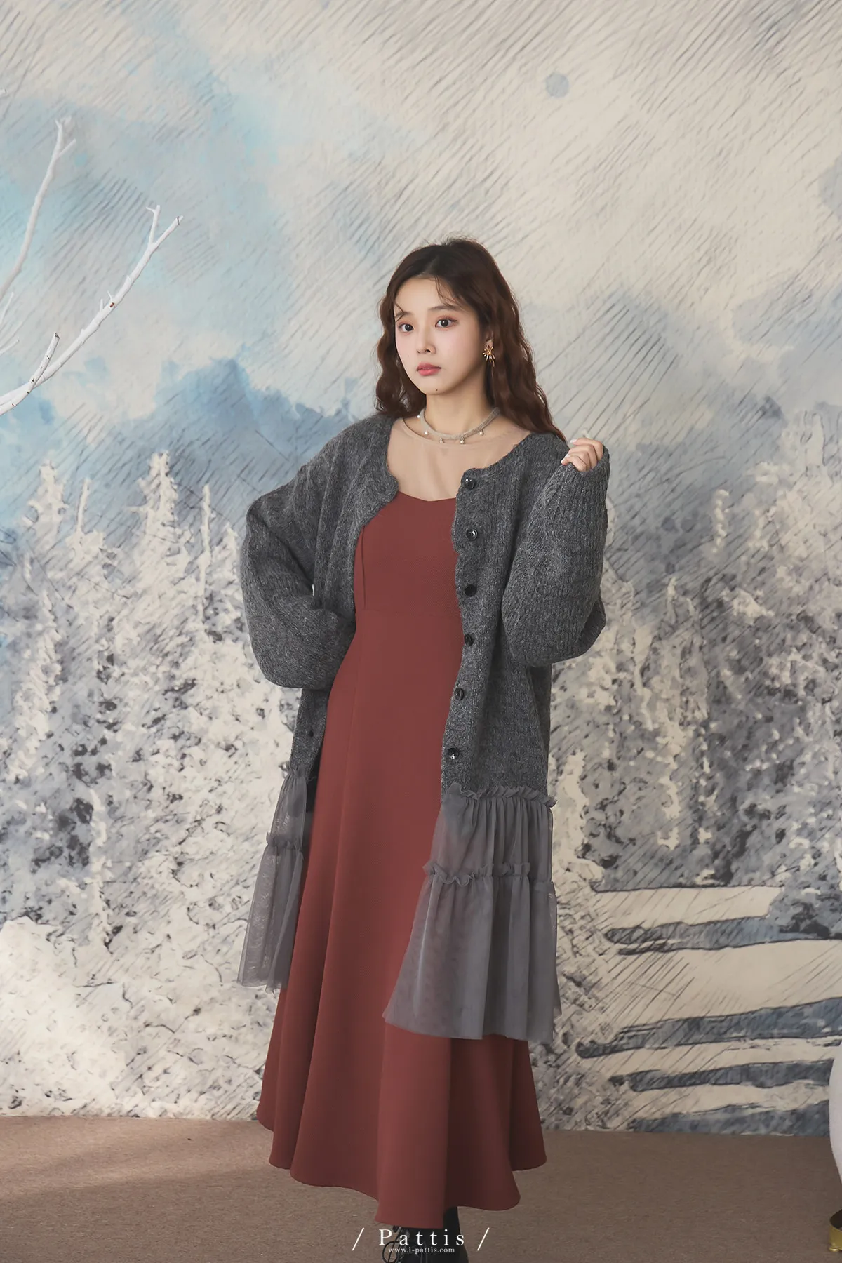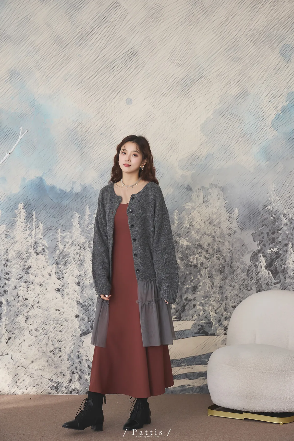 喜歡你的眼裡有秘密 | 10%羊毛勾針拼接網紗開襟外套(灰黑)