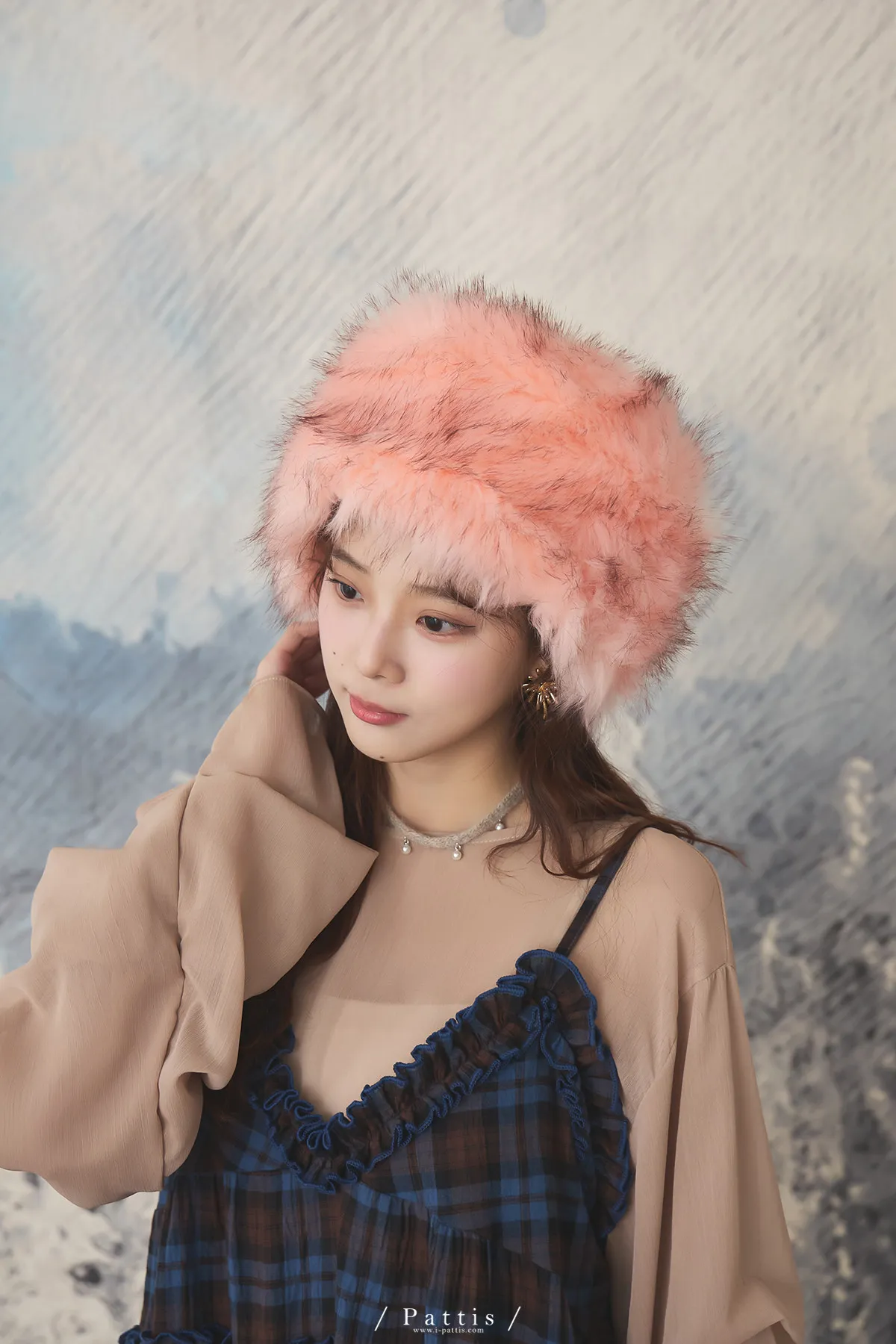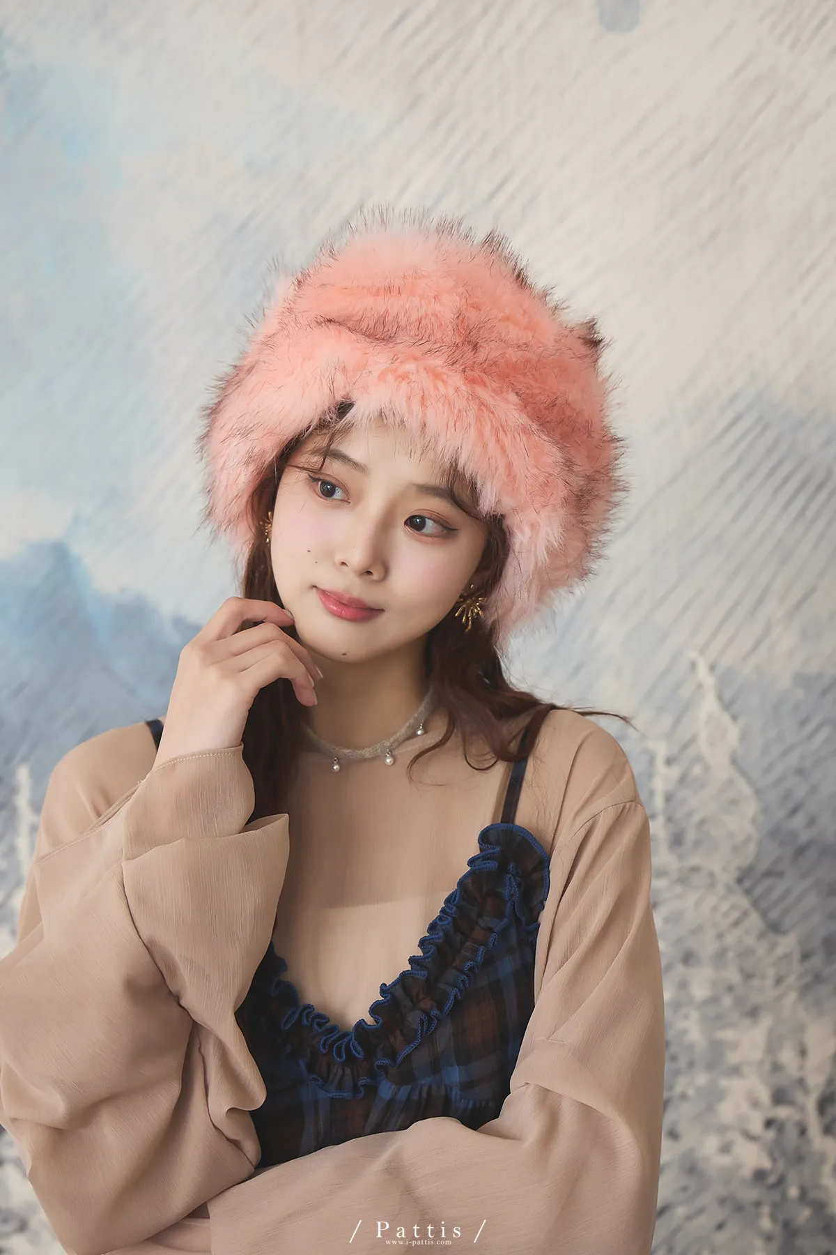 長毛造型保暖蓋耳帽(米白/混色粉)