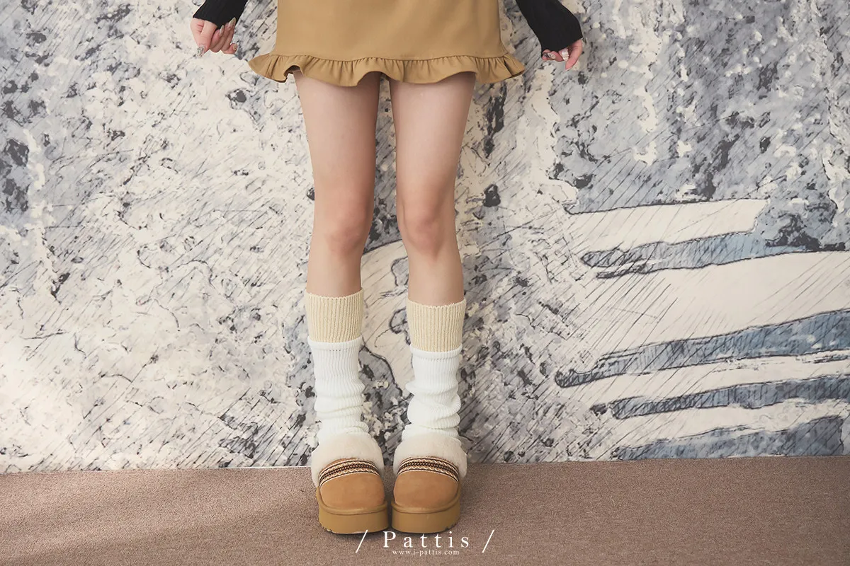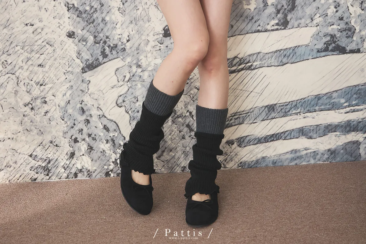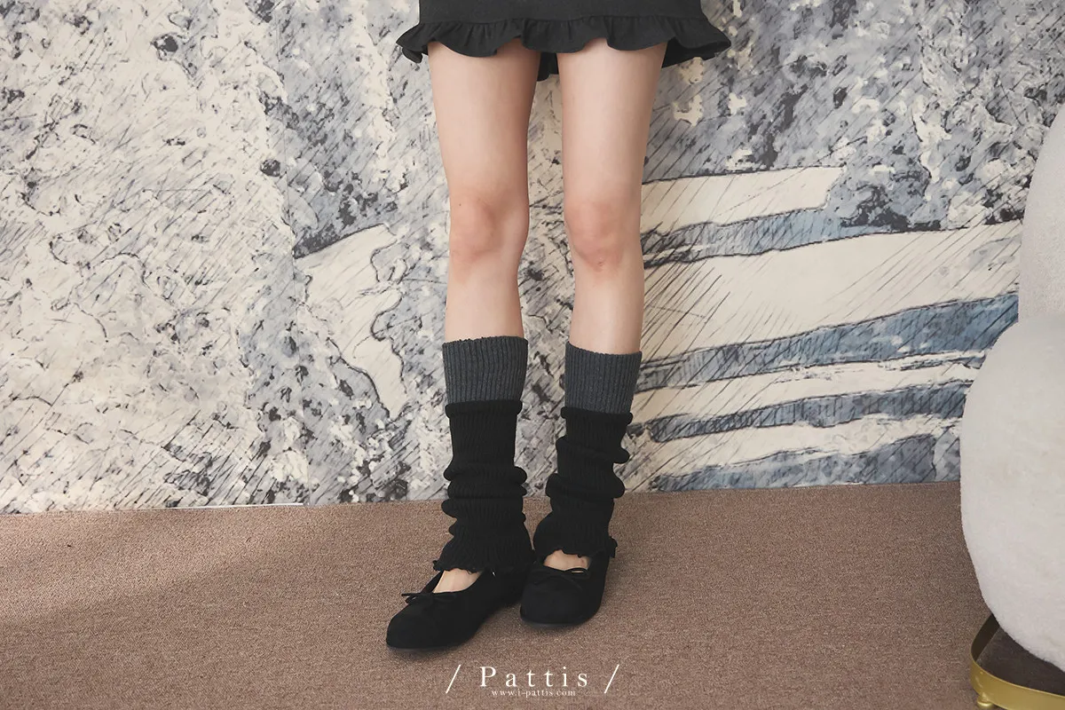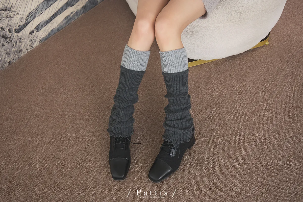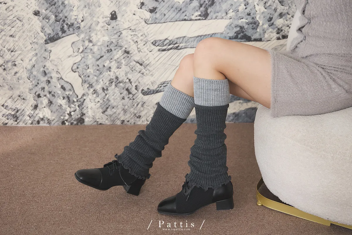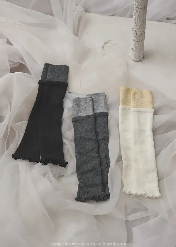 鬆軟雙色拼接木耳邊襪套(米白/淺灰/黑)