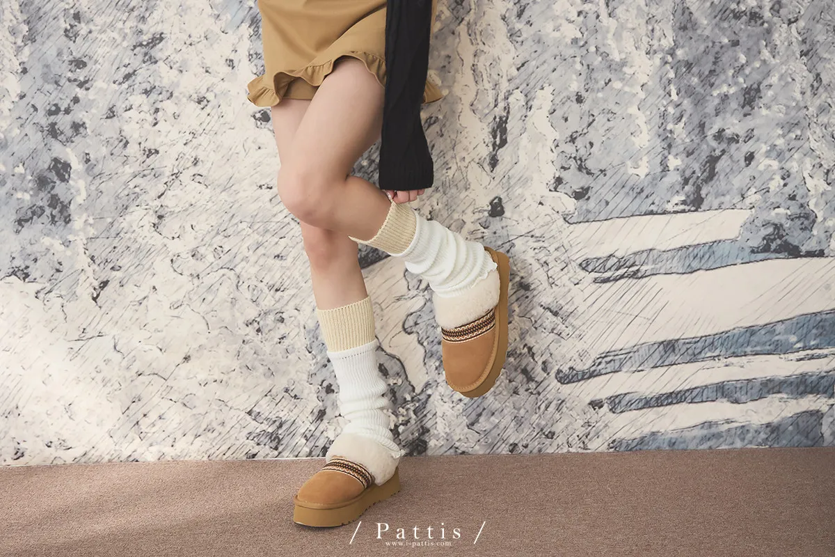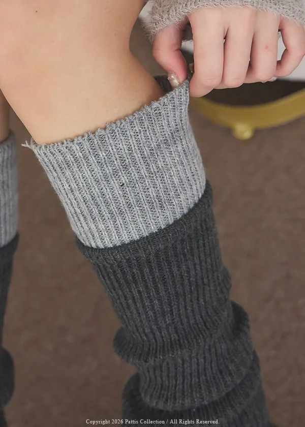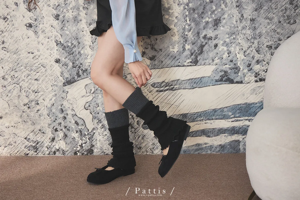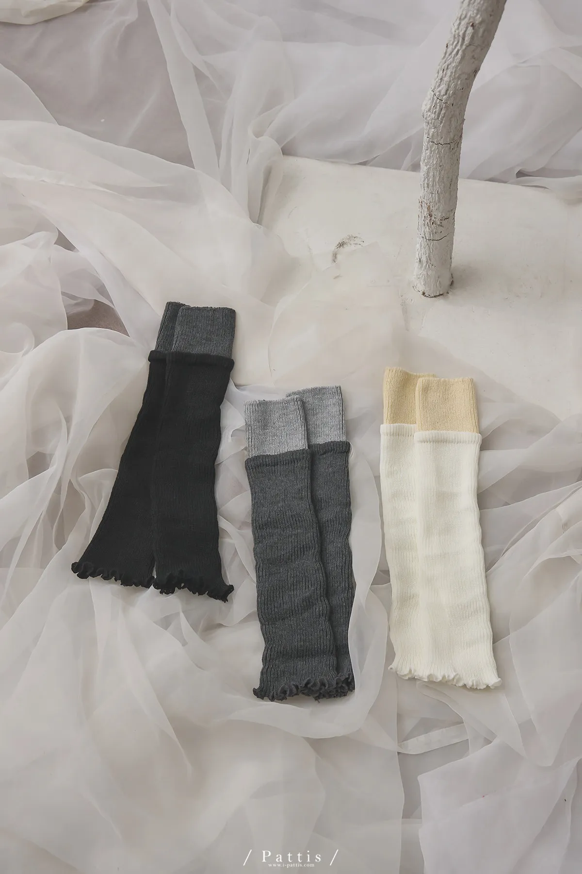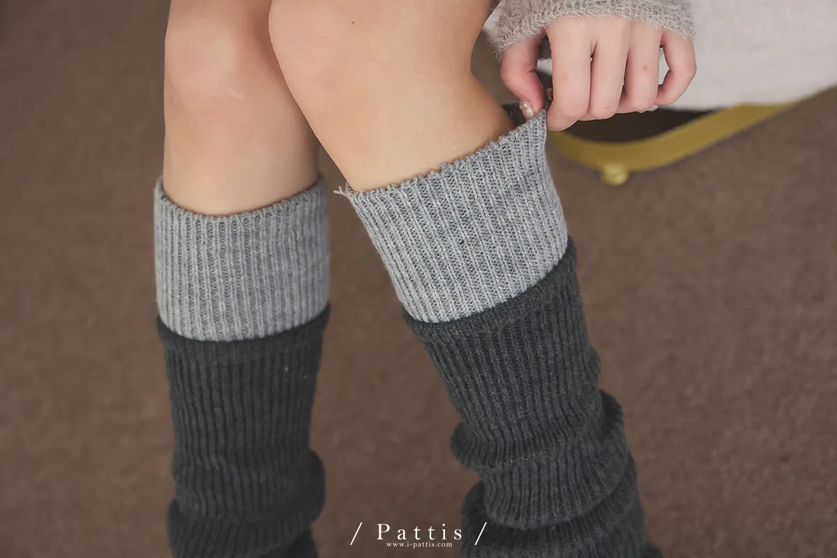 鬆軟雙色拼接木耳邊襪套(米白/淺灰/黑)