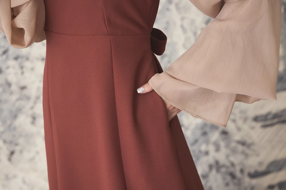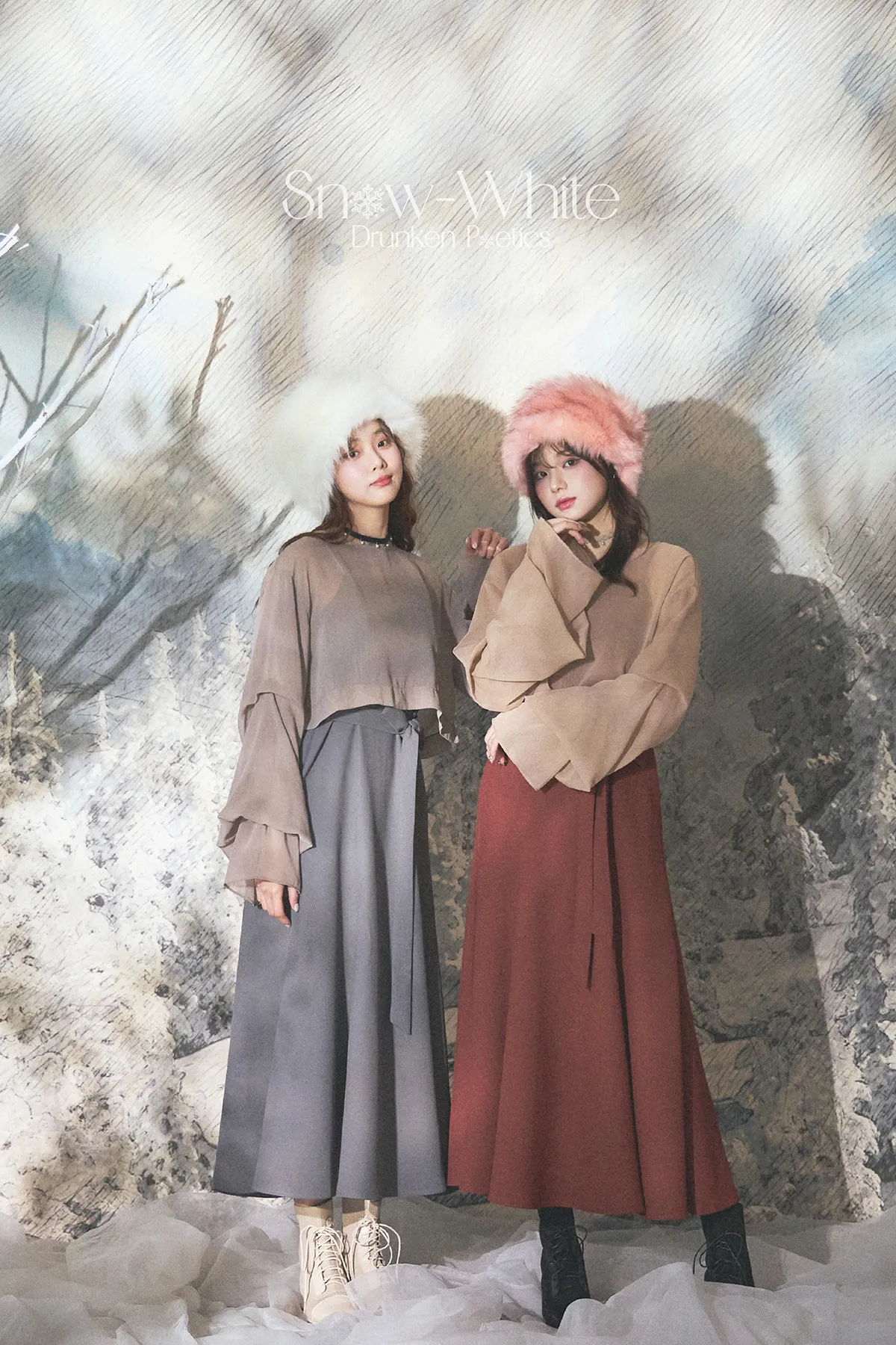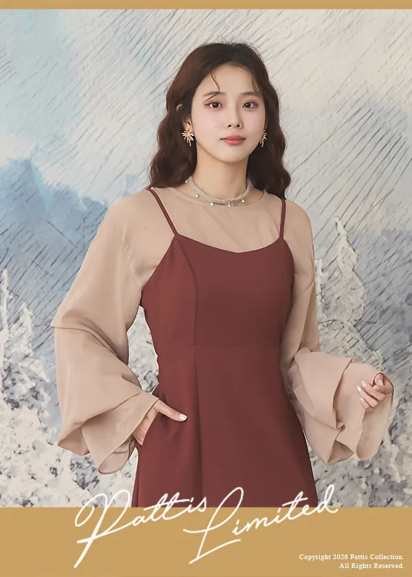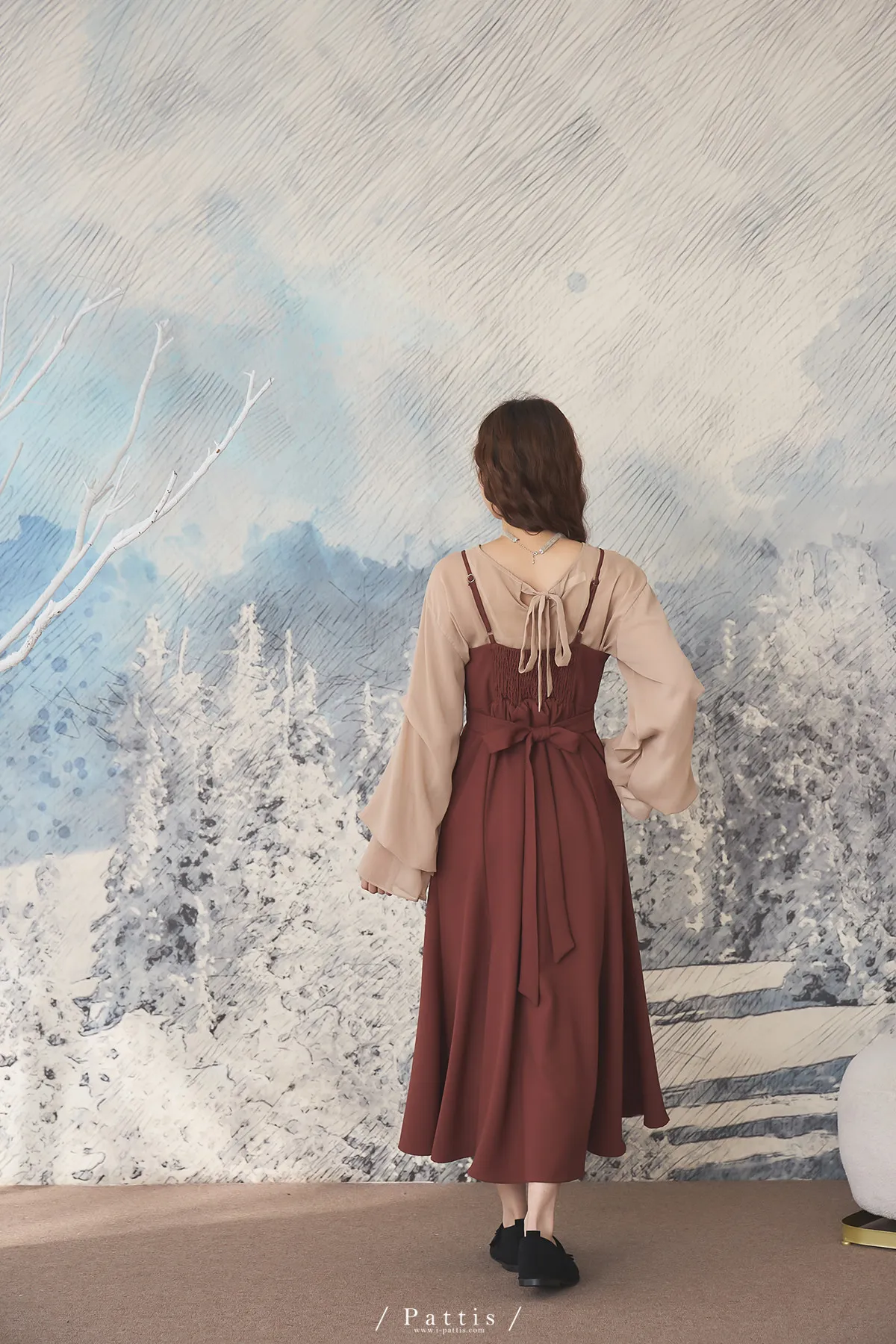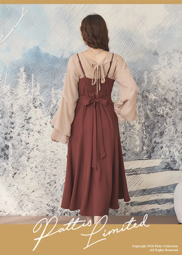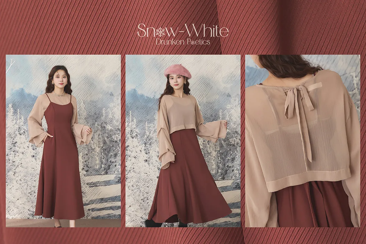 微透肌的上衣,袖子像層層的水母紋路很有造型,後領也有綁帶修飾背部曲線