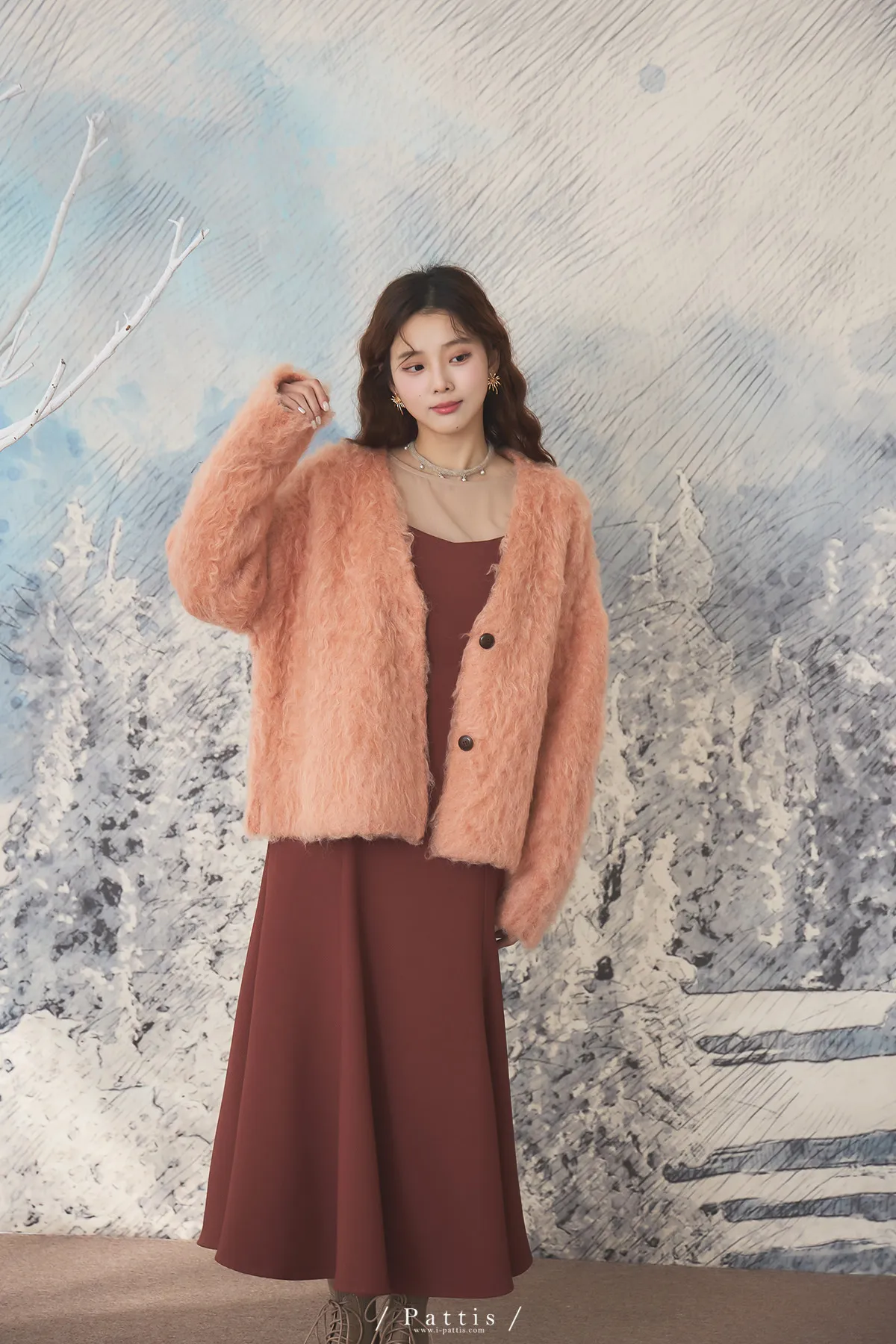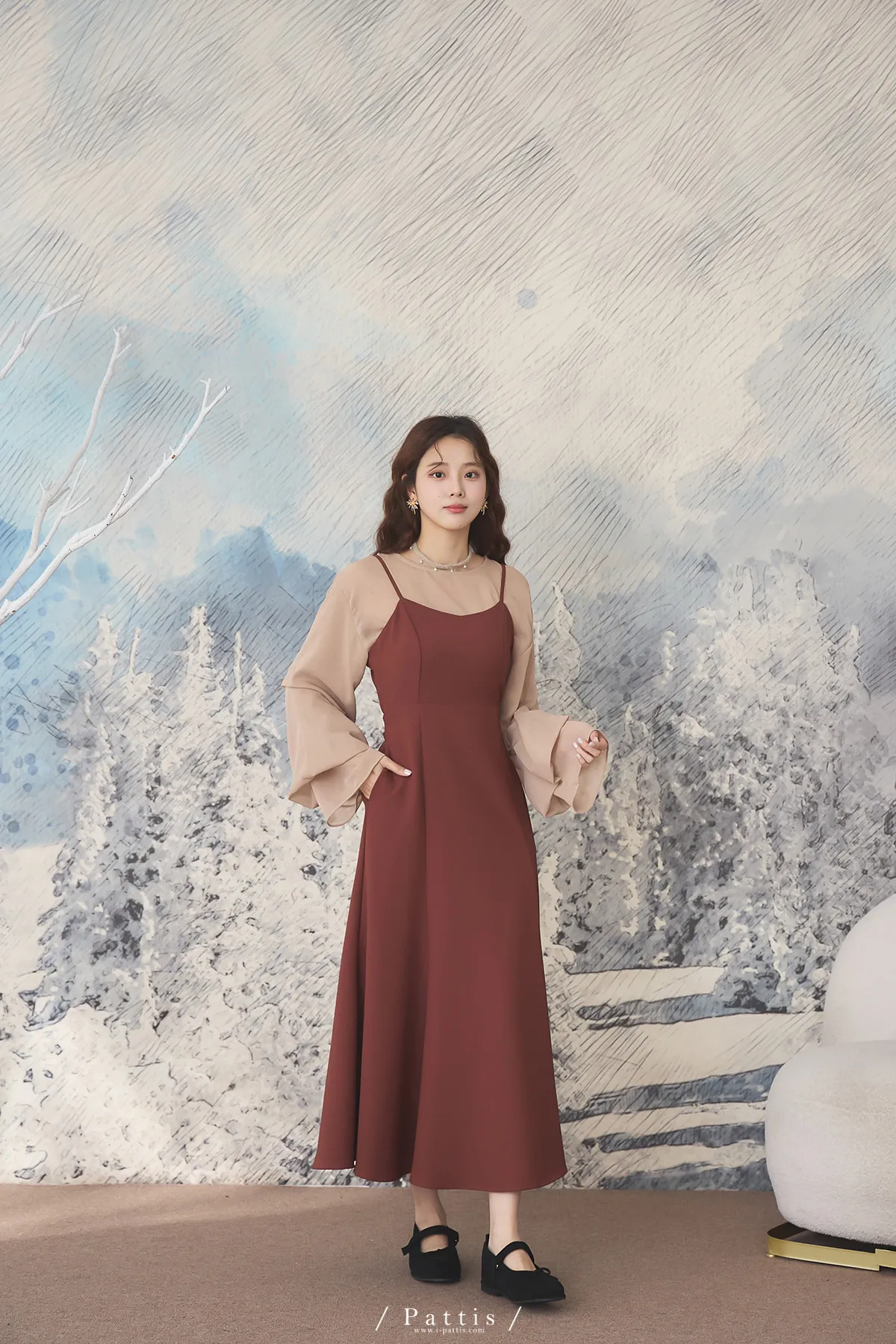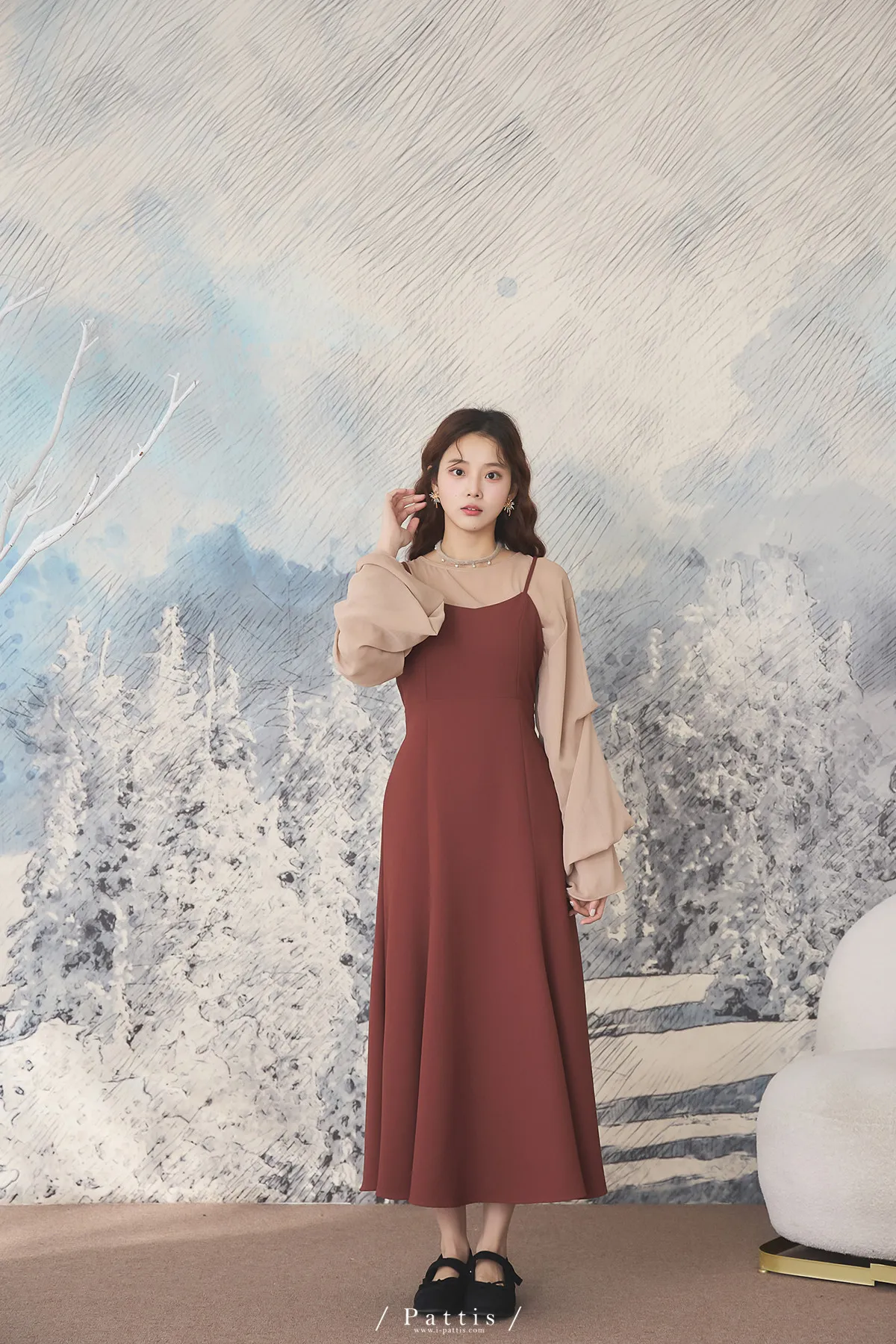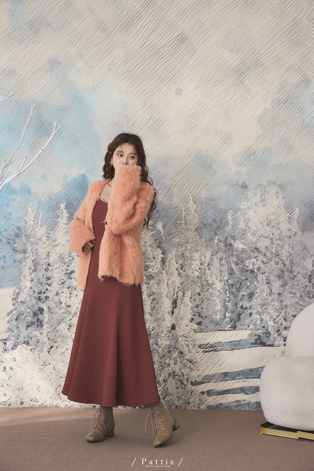 吊帶洋裝是斜紋布料,有點分量感也不易皺,近看也很有質感
