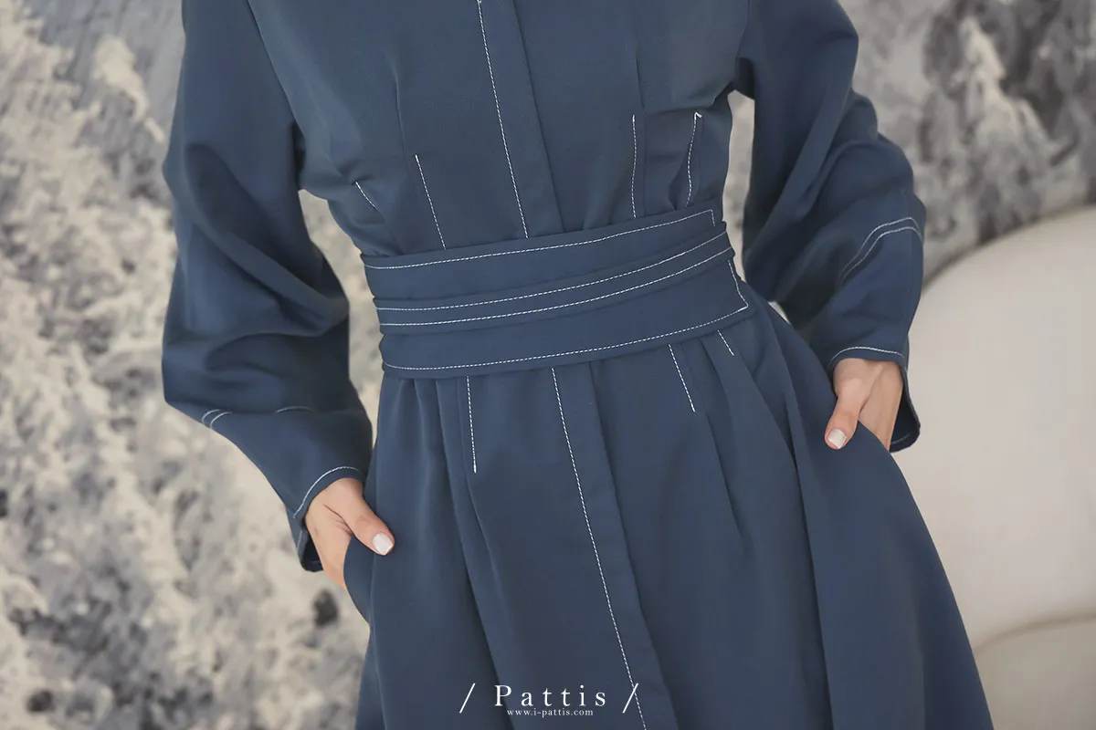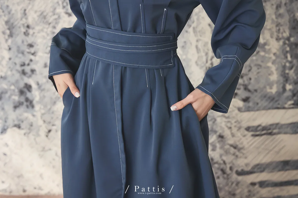 附上綁帶腰封,以及摺紙般的袖子造型,讓整件簡約中透露著不平凡