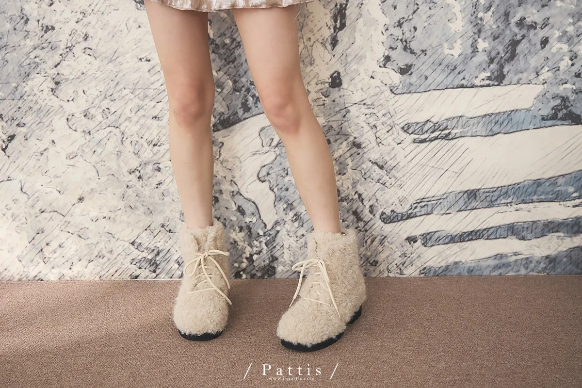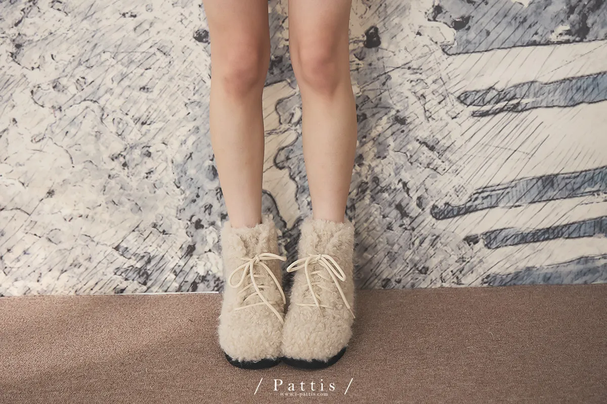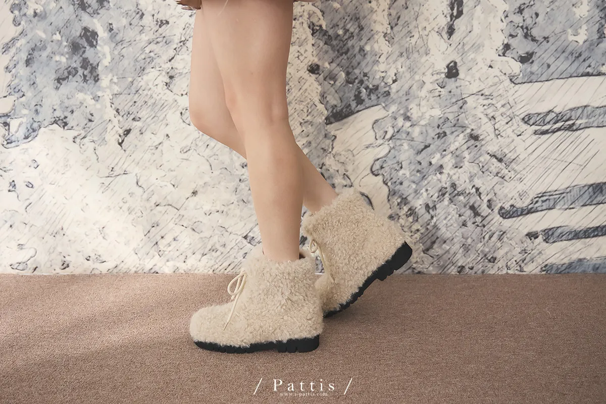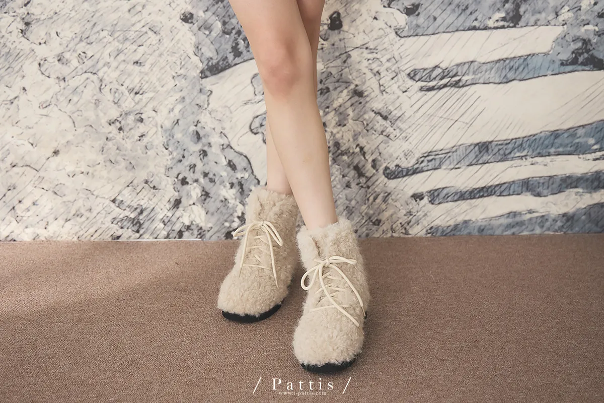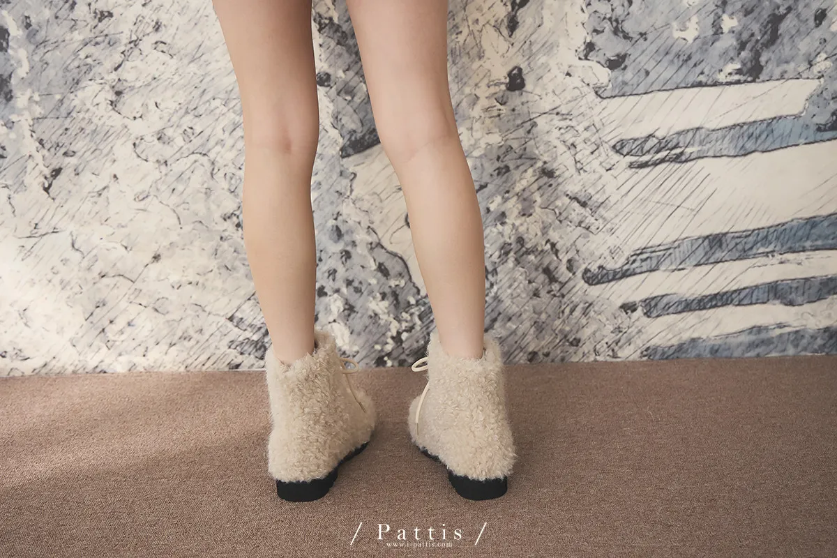 小羊捲捲毛綁帶短靴(單一色)