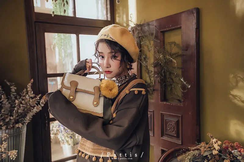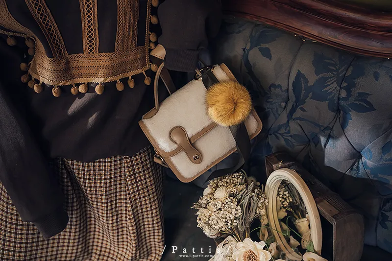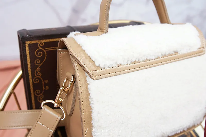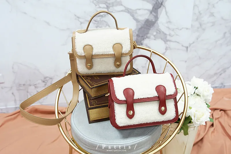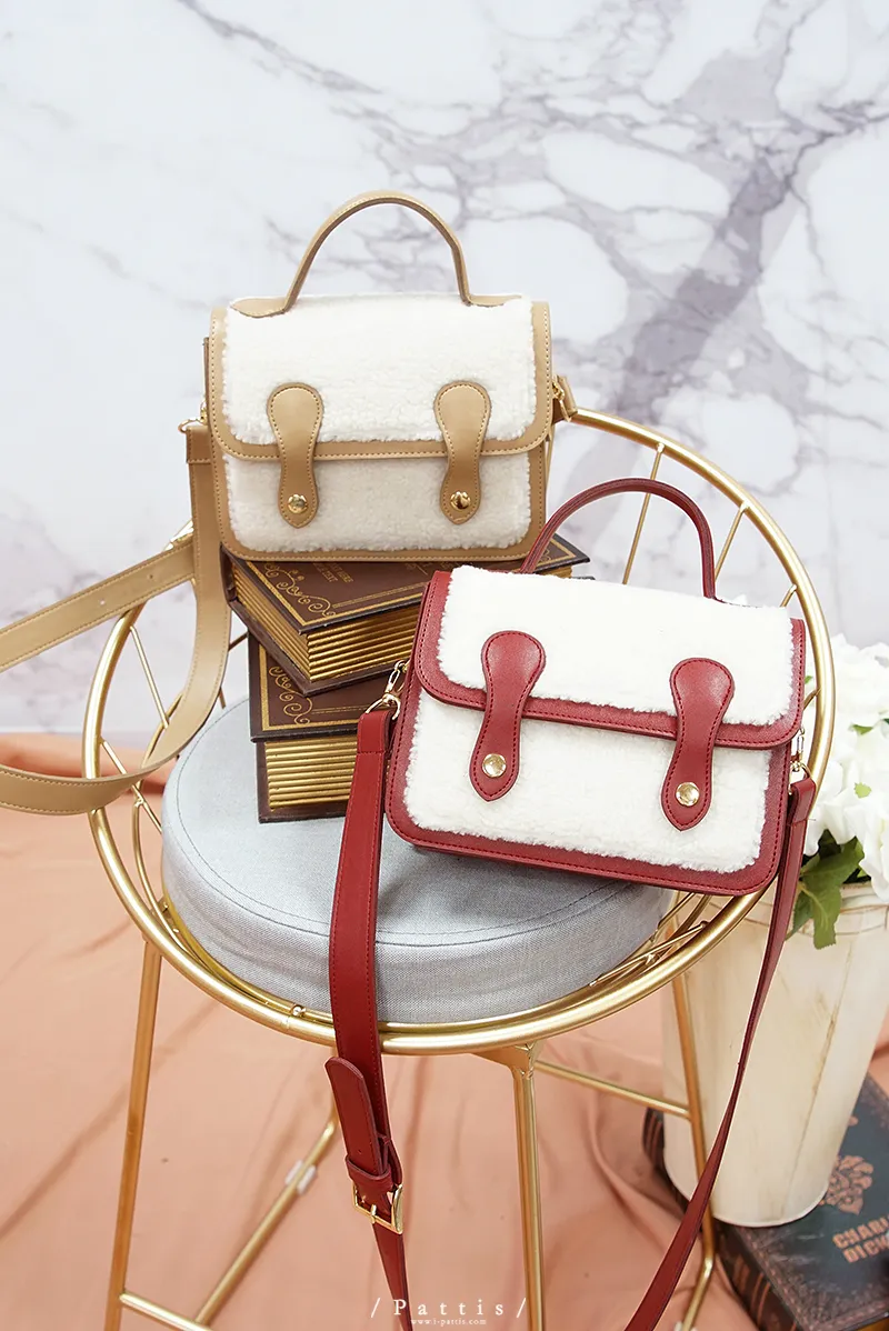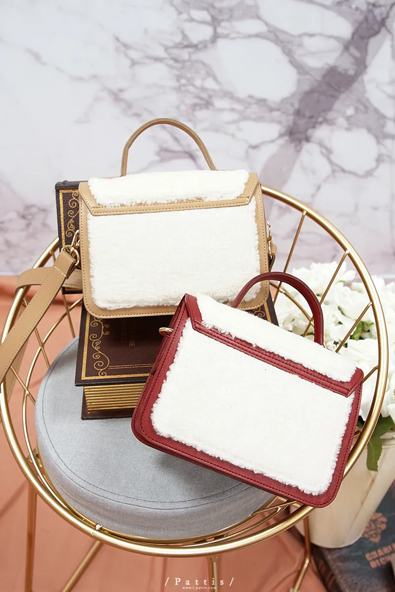 帶冬雪旅行 | 拼接毛毛3way手提肩背方包(米杏/紅)
