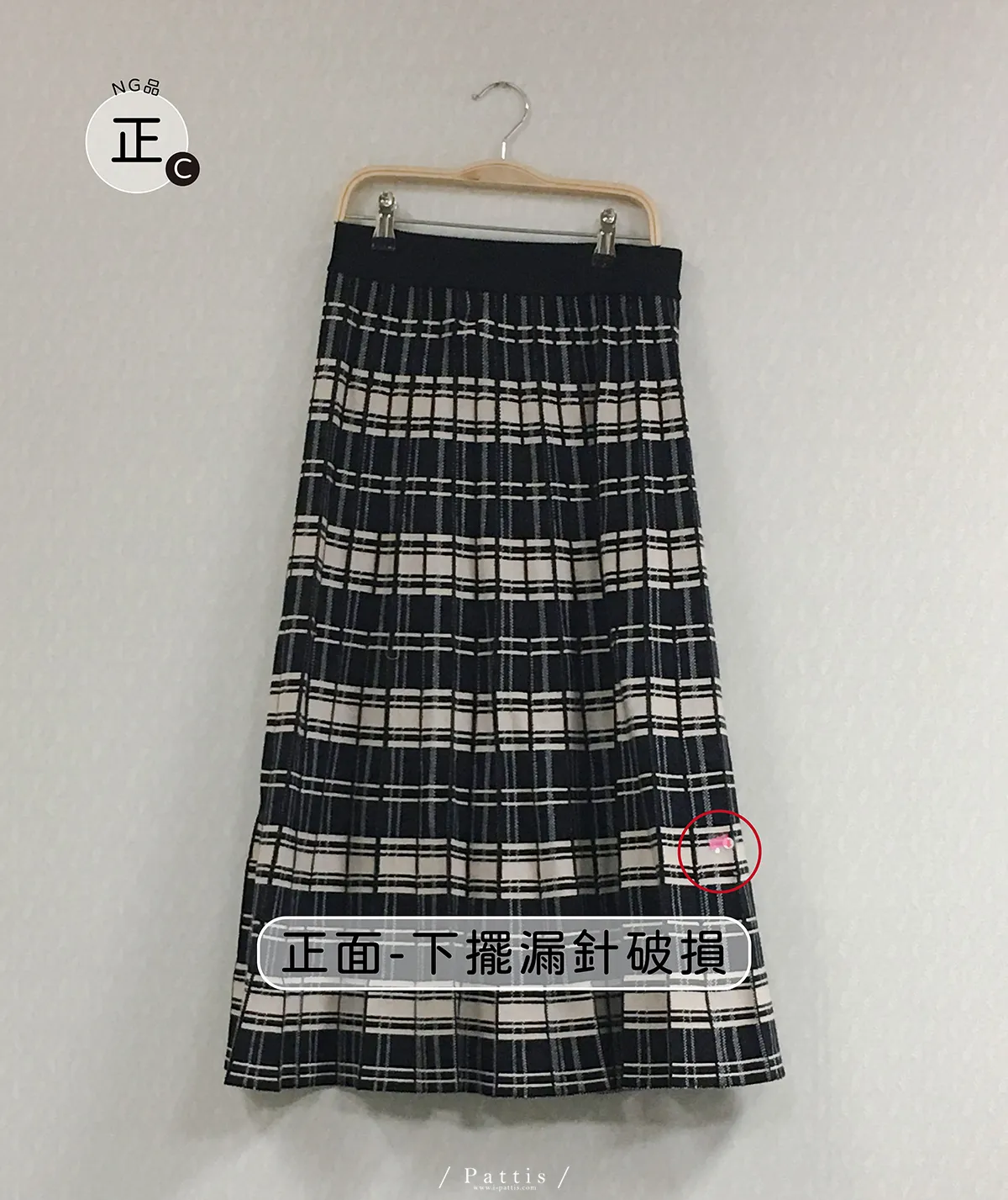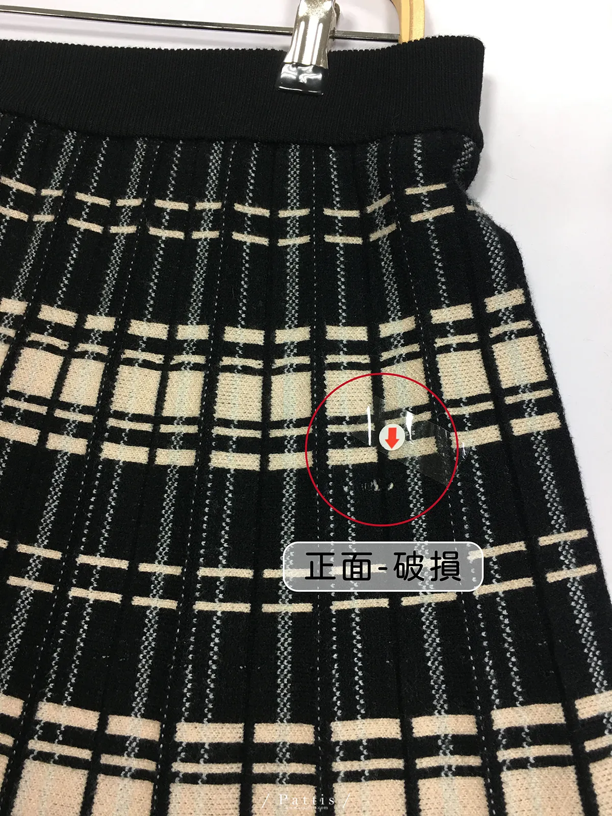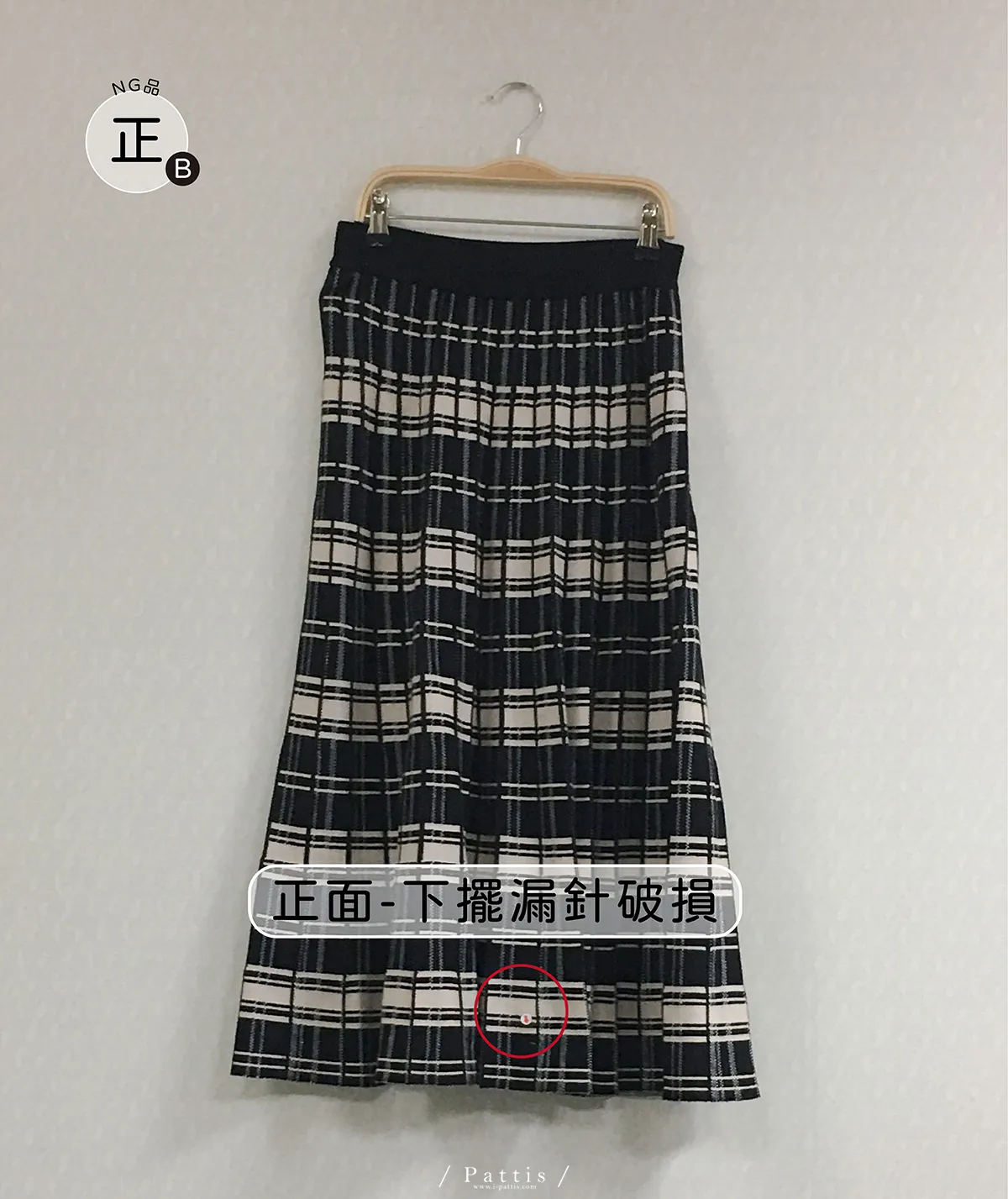 / NG品 /條紋撞色百褶針織長裙(黑)