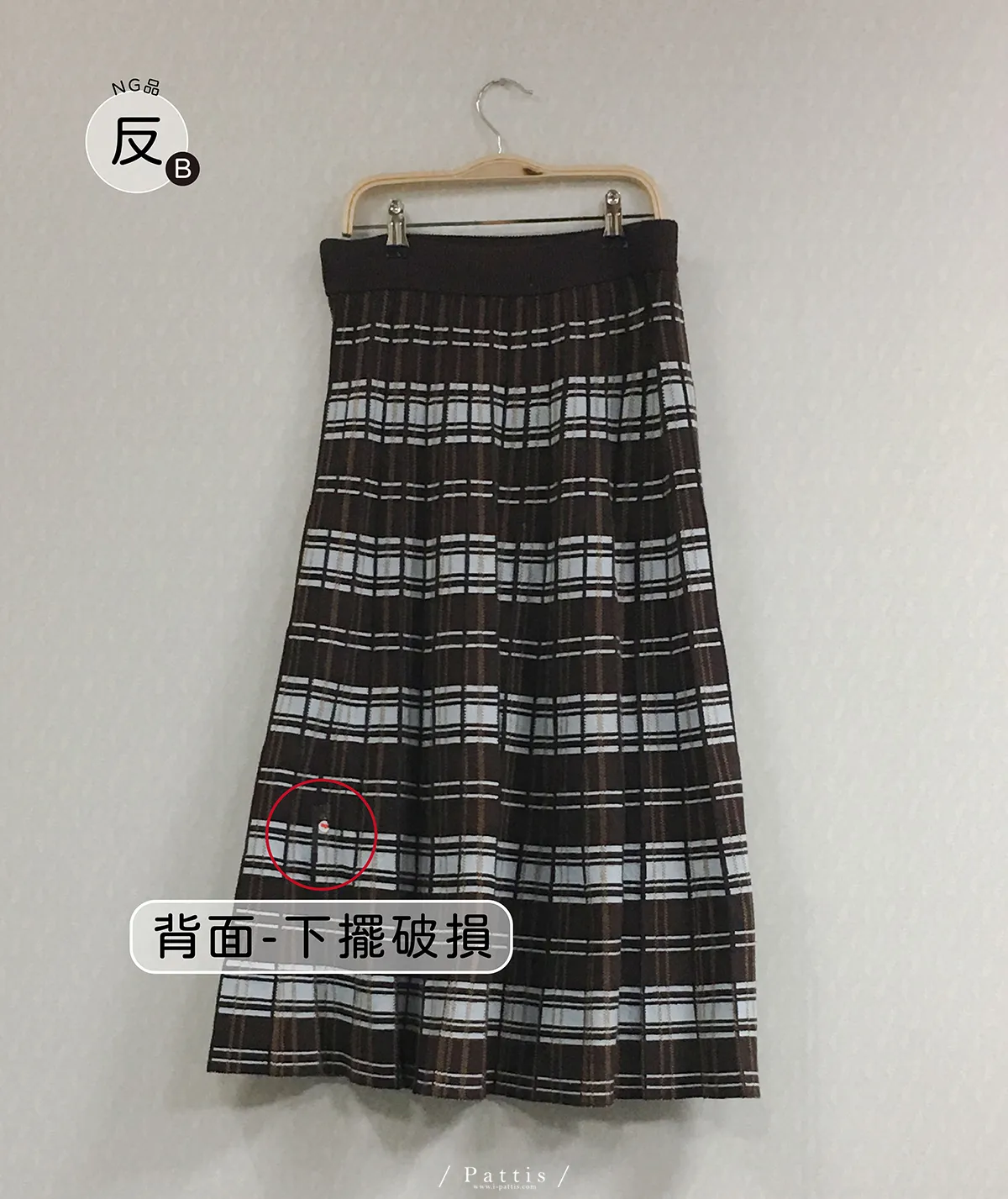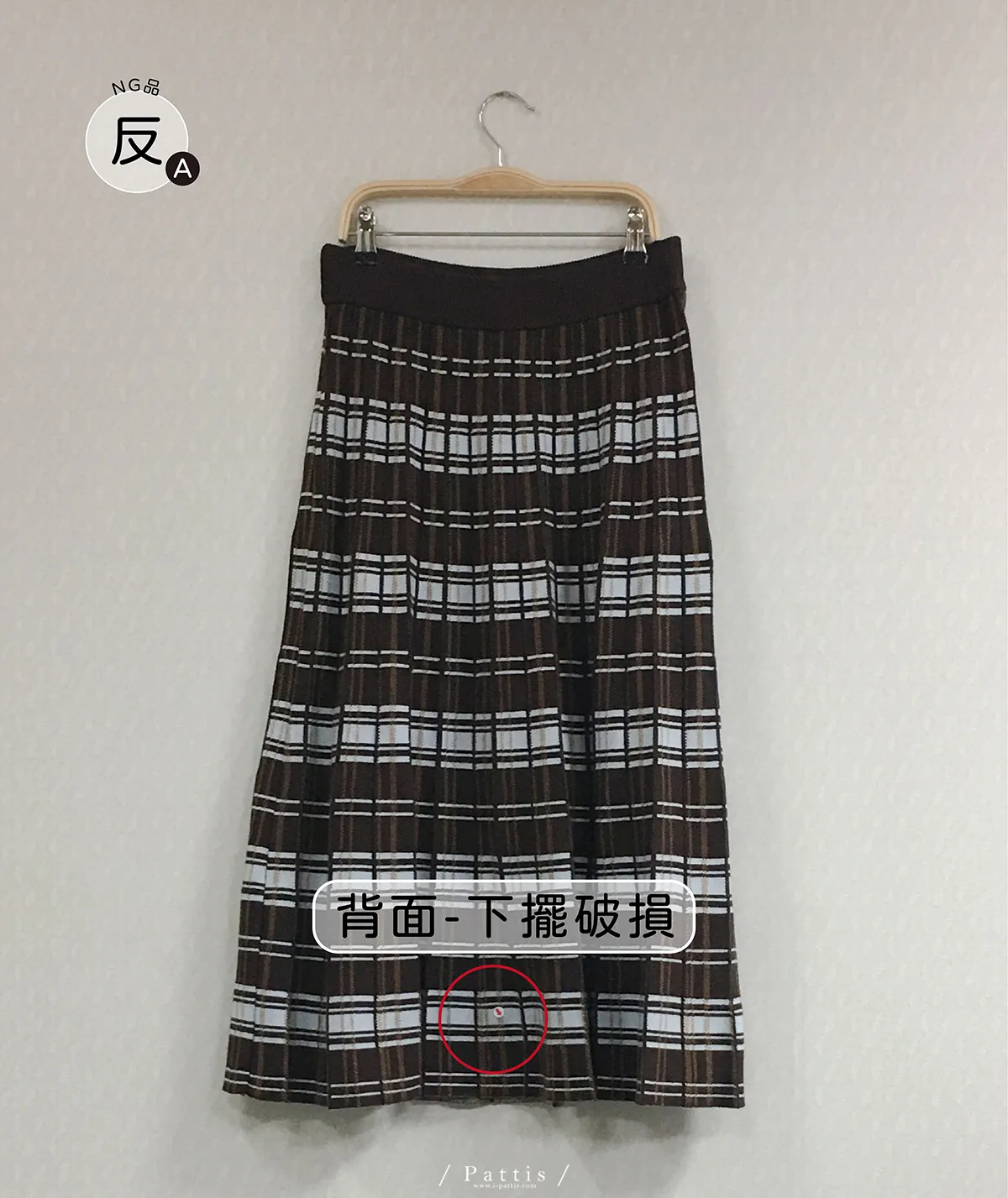 / NG品 /條紋撞色百褶針織長裙(咖啡)