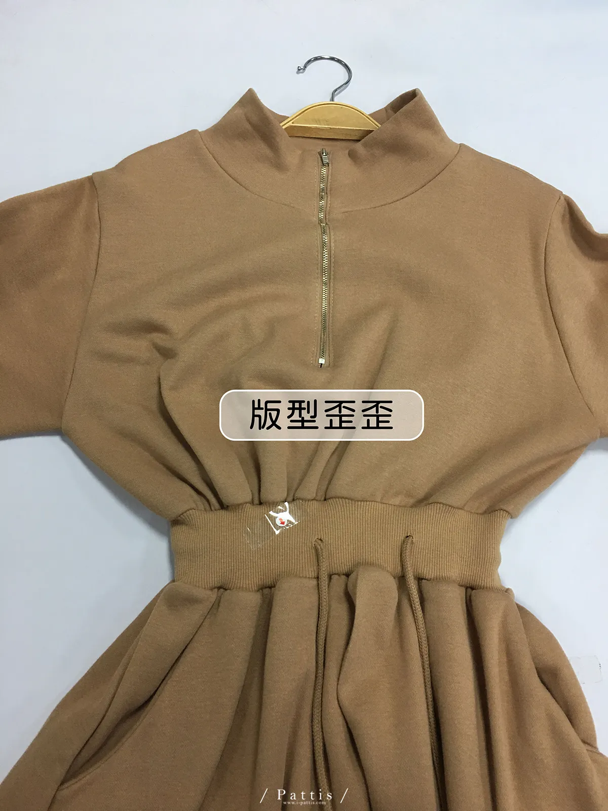 / NG品 /立領抽繩縮腰內刷毛洋裝(單一色)