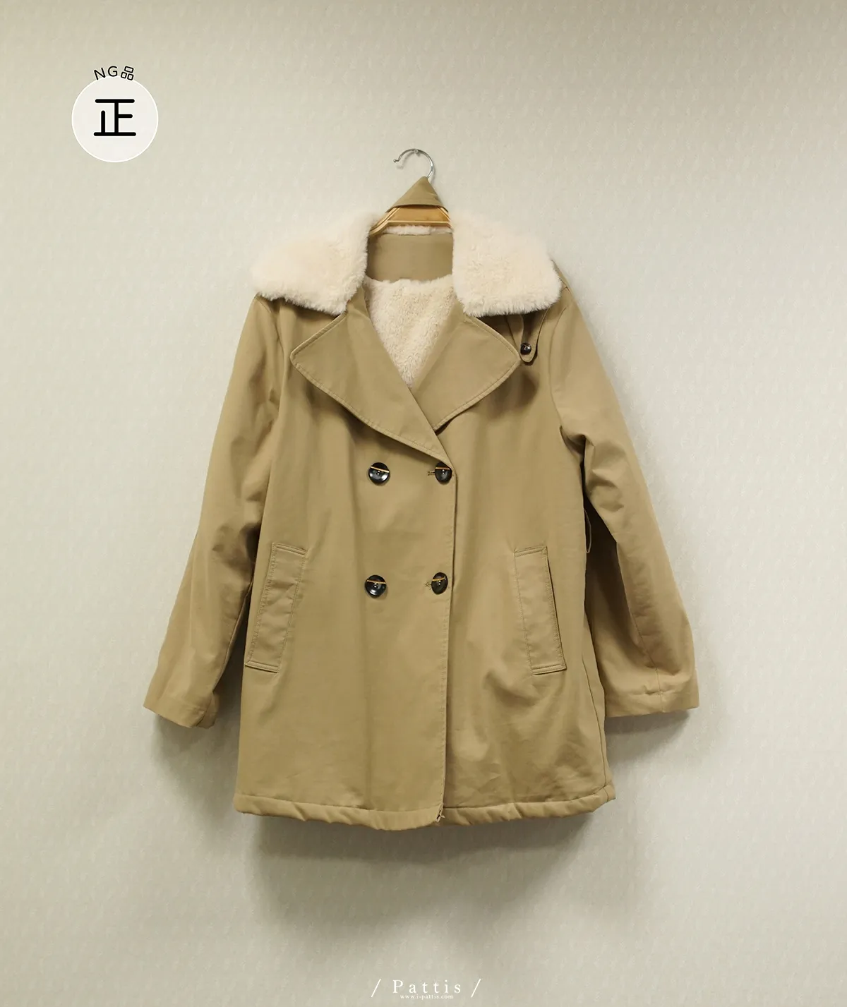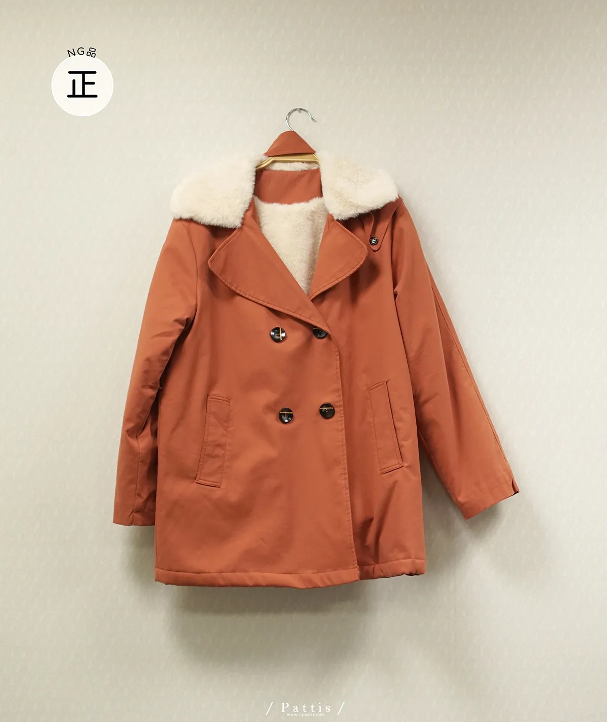 / NG品 /軟毛領雙排釦風衣外套(卡其/橘紅)