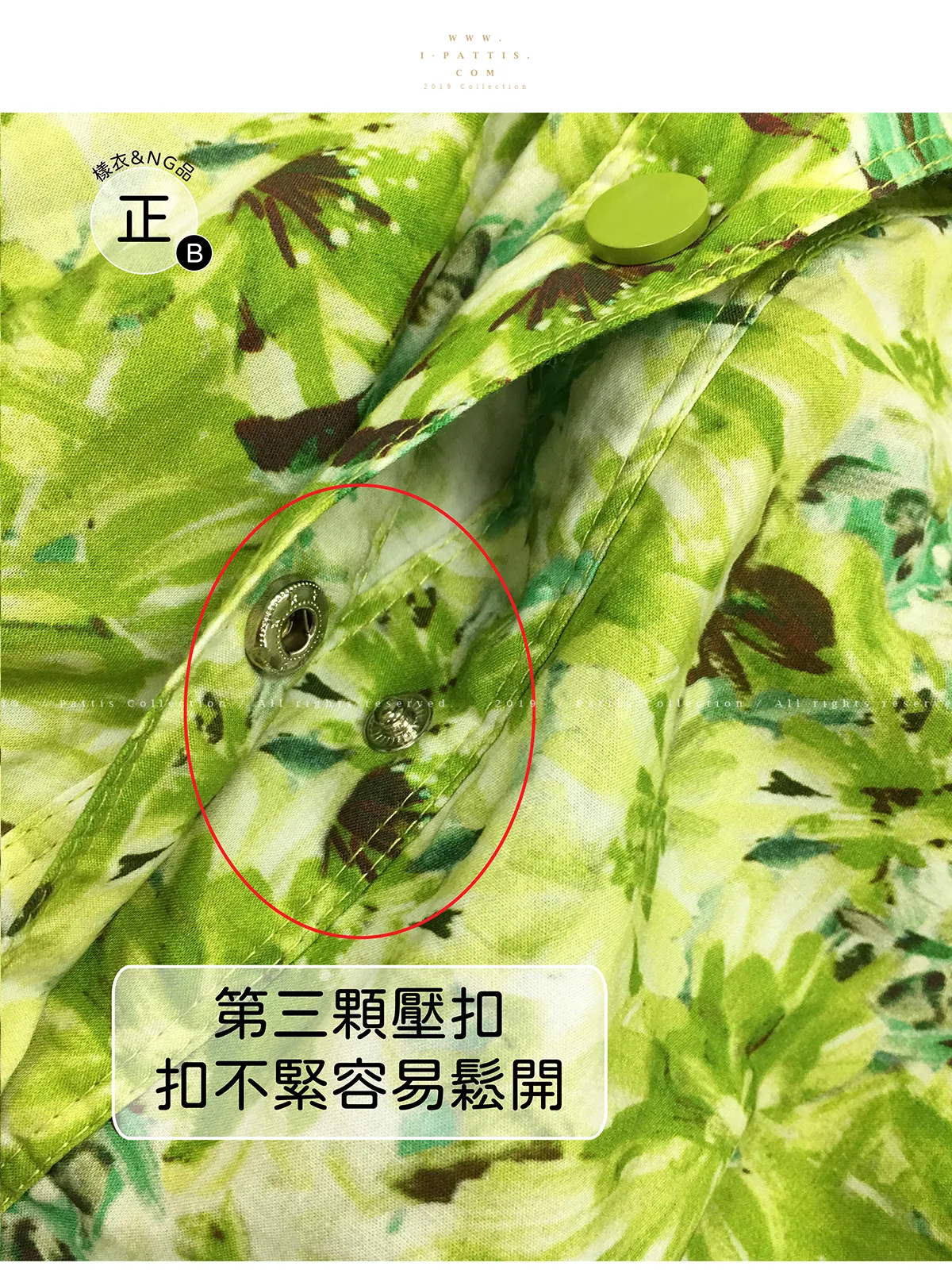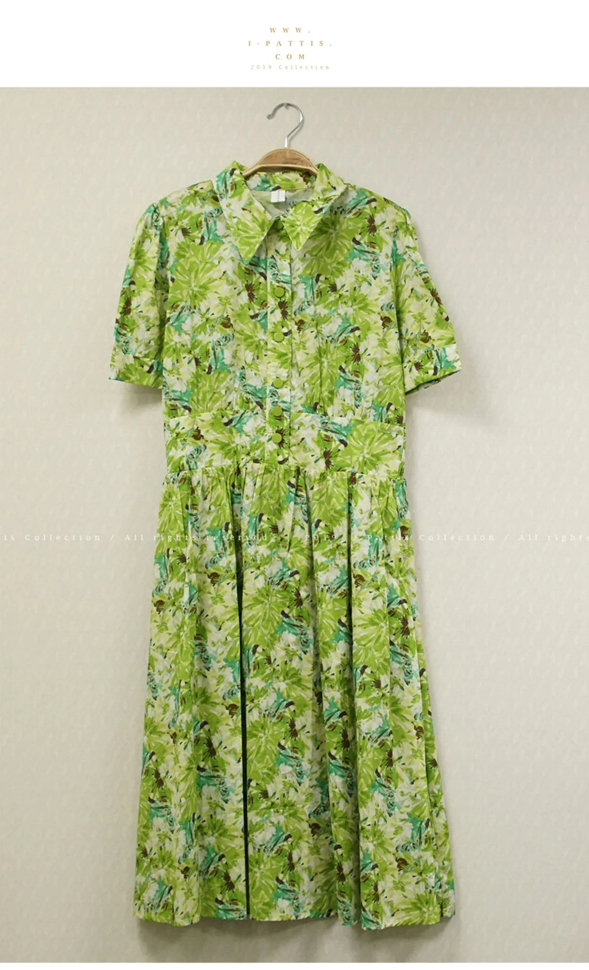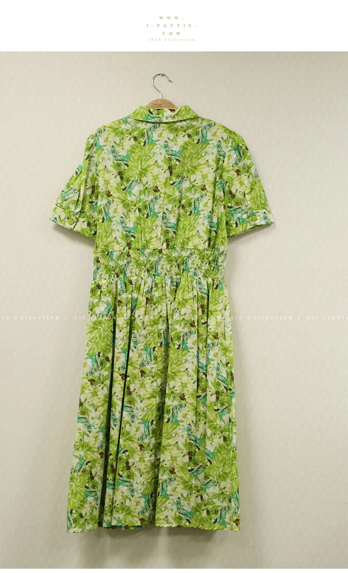 【♚樣衣&NG SALE♚】棕梠葉印花襯衫領縮腰洋裝(綠)