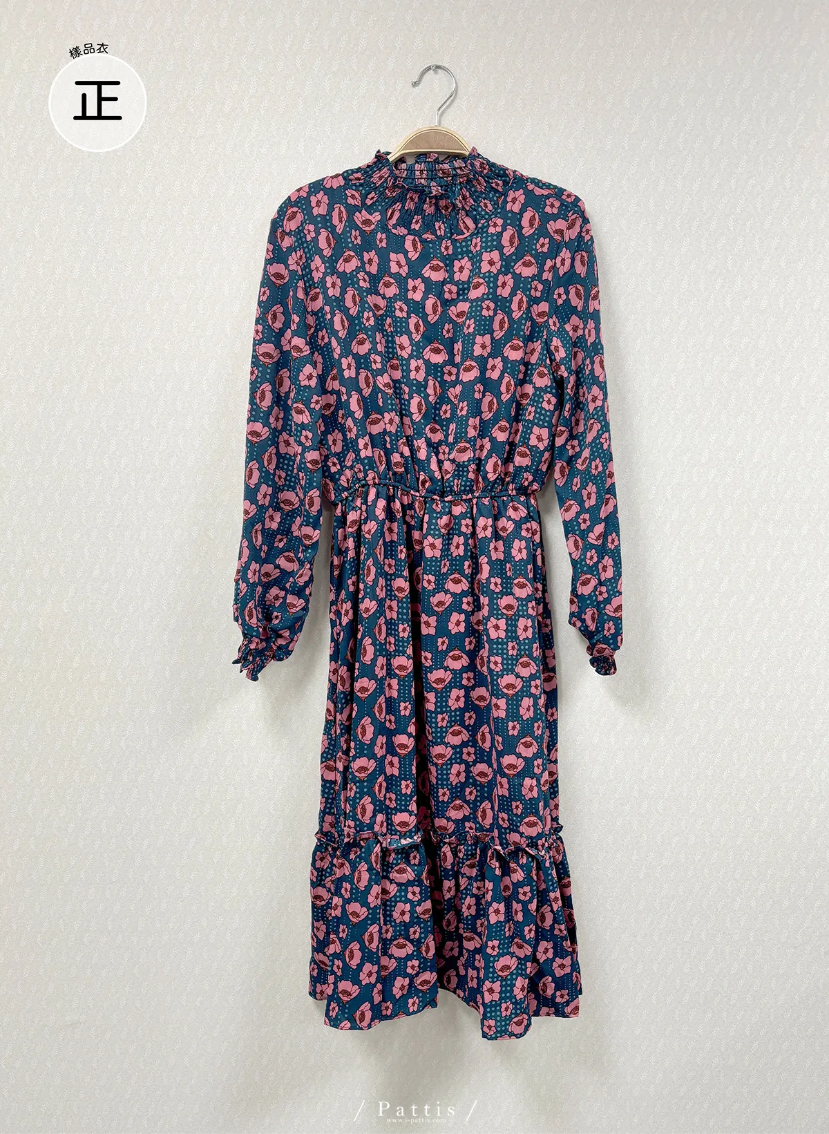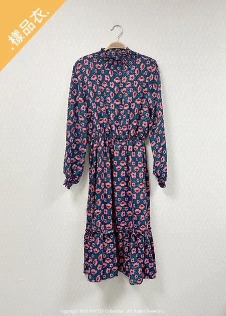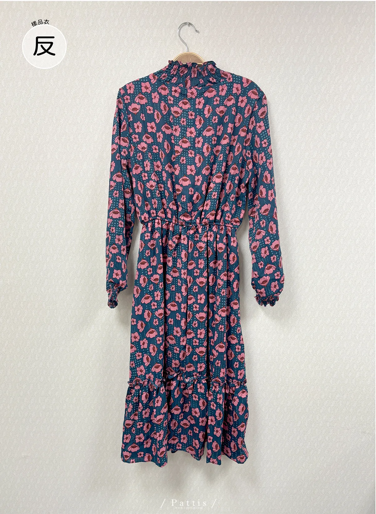 【♚樣衣SALE♚】立領縮腰花花洋裝(藍綠)