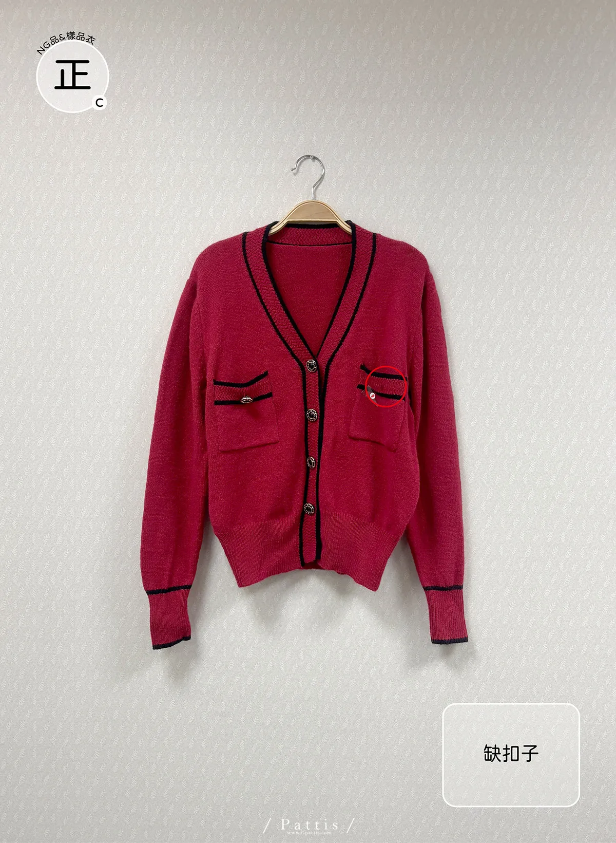 | F | 55 | 46(落肩) | 50 | 30 | 56 | 7 | 16 | 25 | 針織毛線 | X | 前鈕釦全開 | 有口袋 |