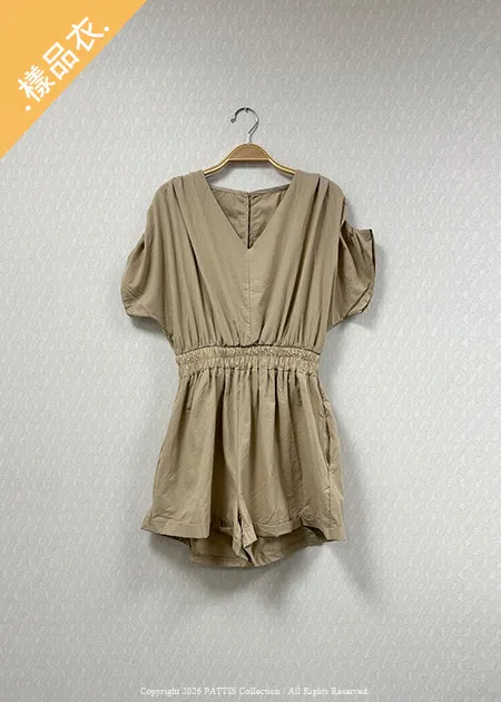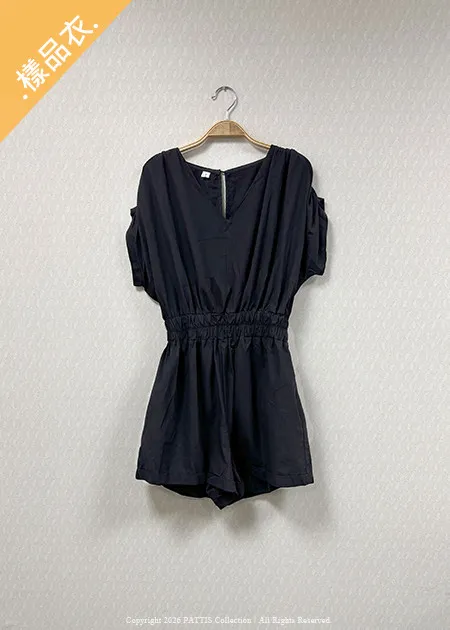【♚樣衣SALE♚】V領縮腰連身短褲(黑/奶油白/棕)