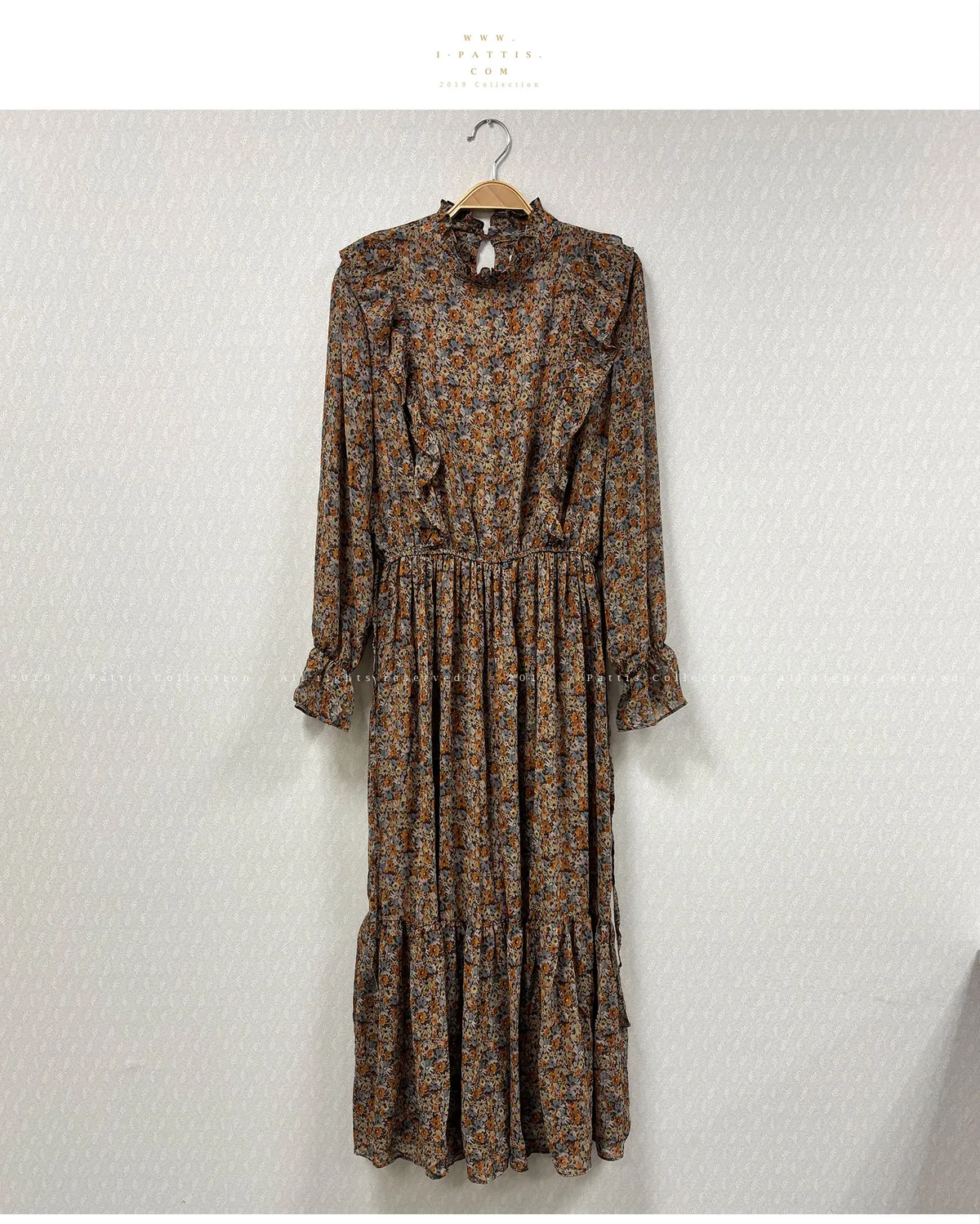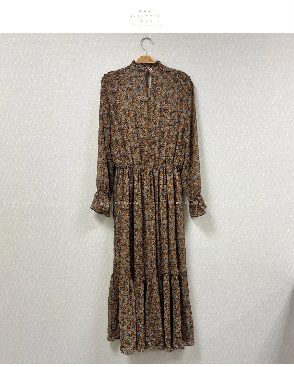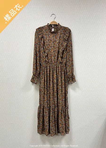 【♚樣衣SALE♚】碎花縮腰綁帶雪紡洋裝(咖)