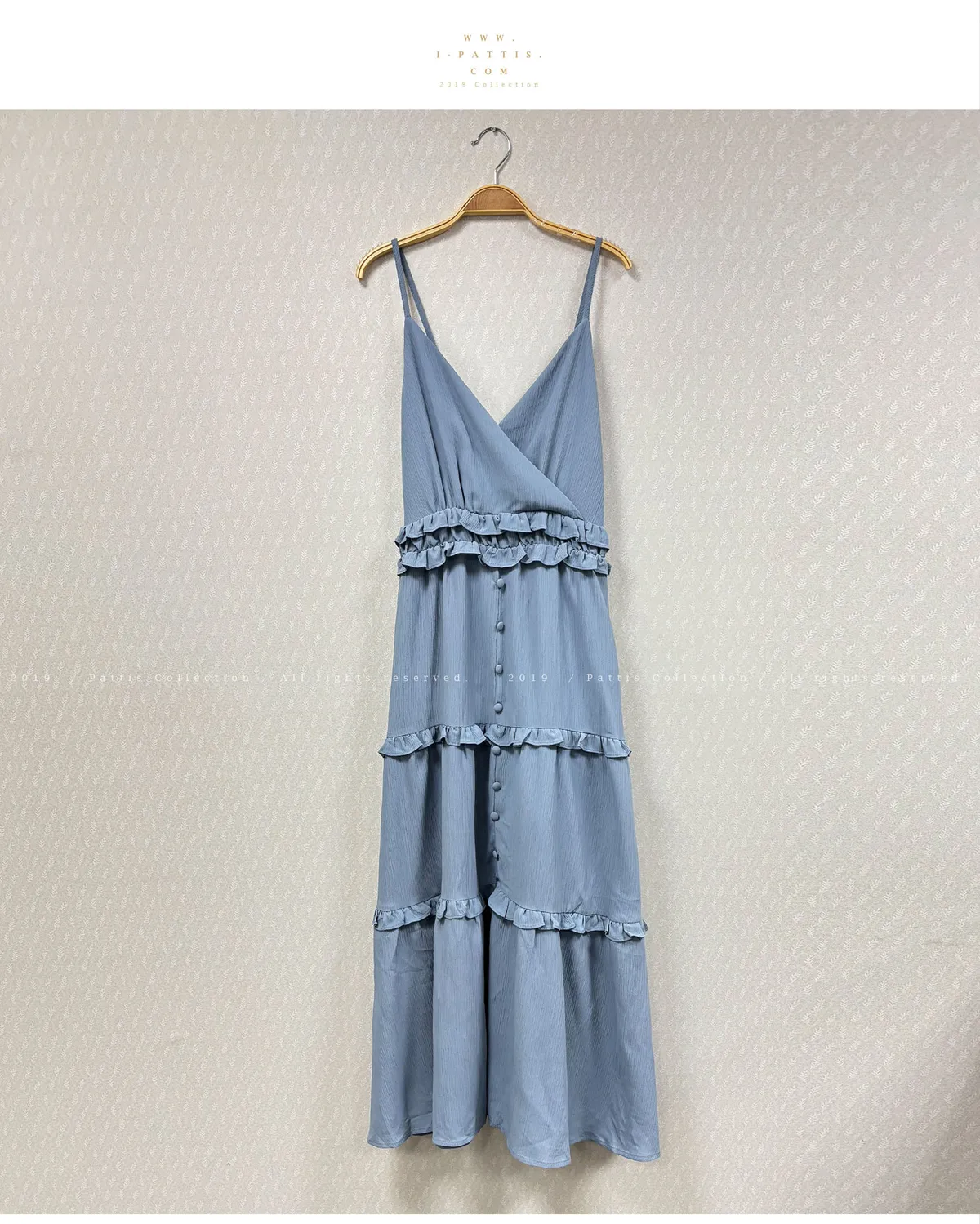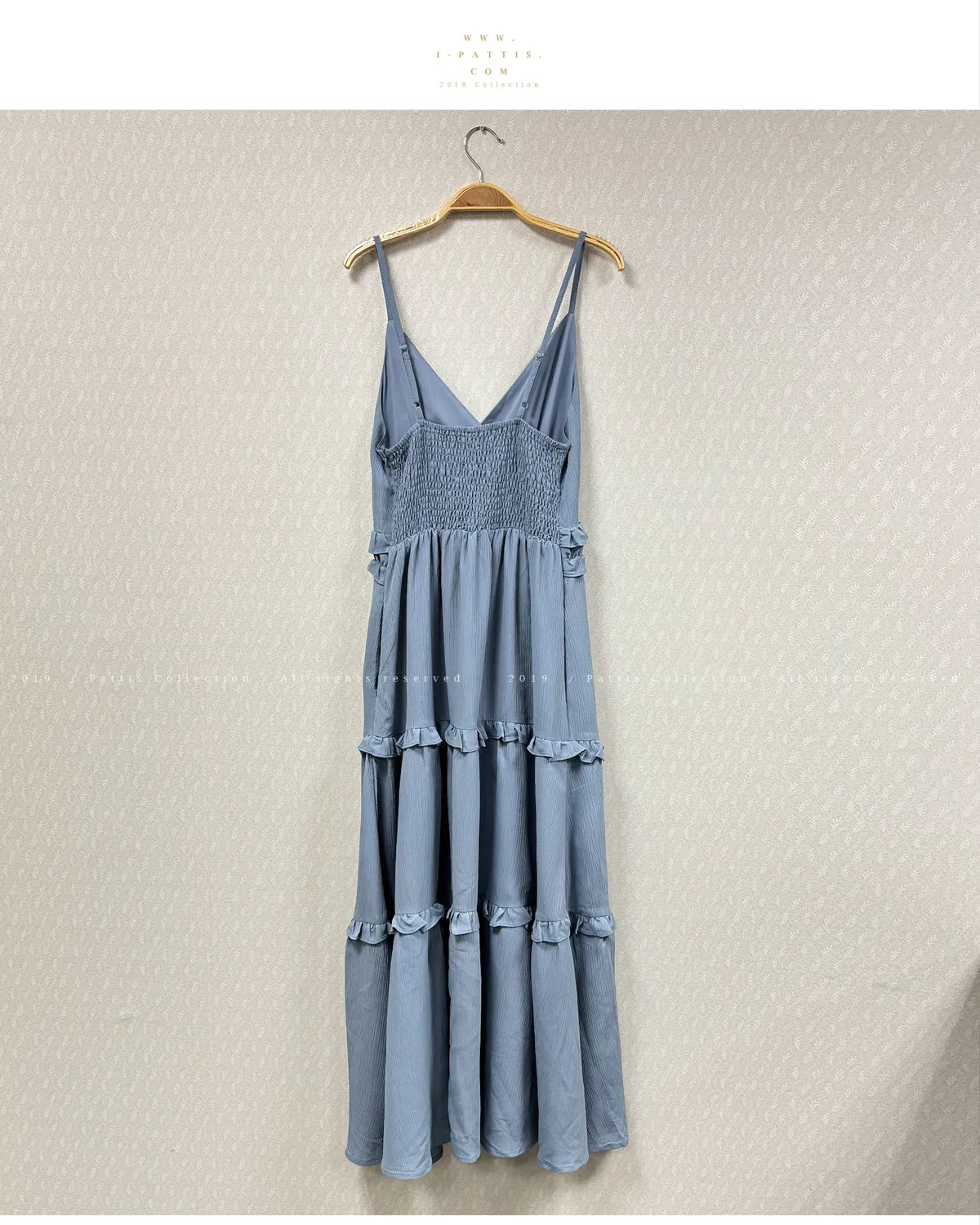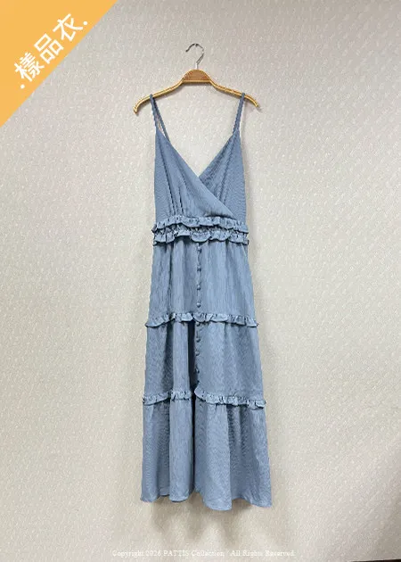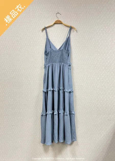 【♚樣衣SALE♚】V領吊帶蛋糕洋裝(藍)