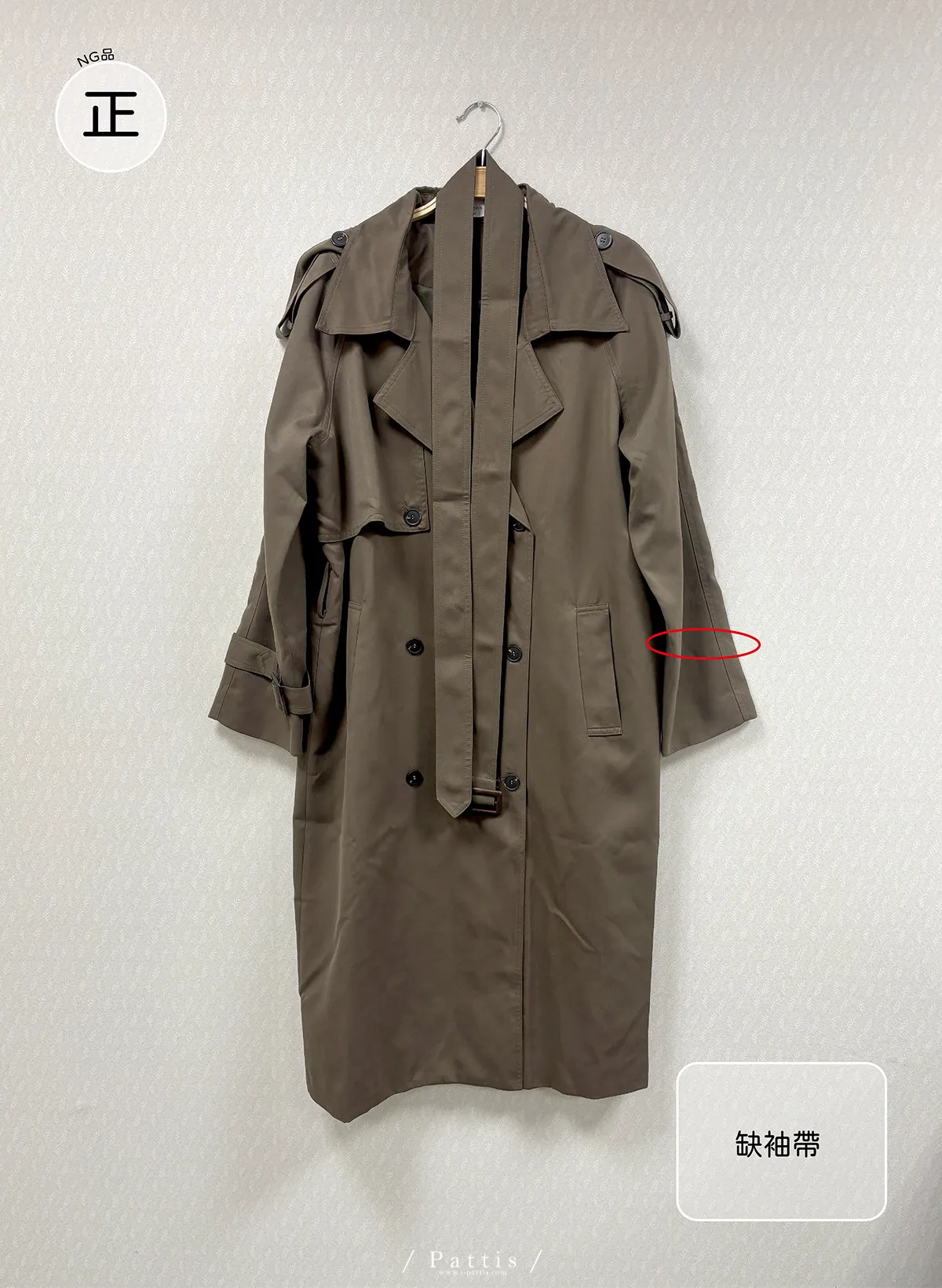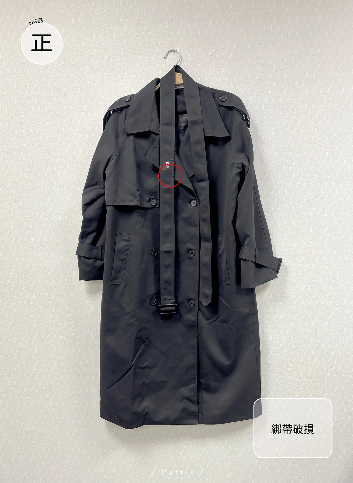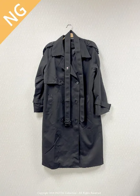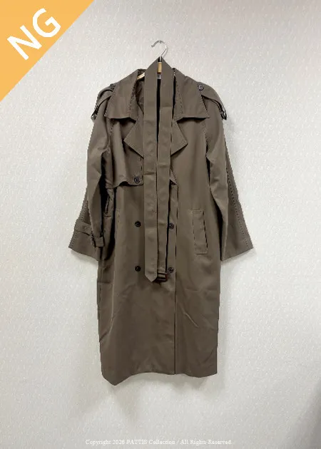 / NG品 /附腰帶風衣外套(卡其綠/黑)