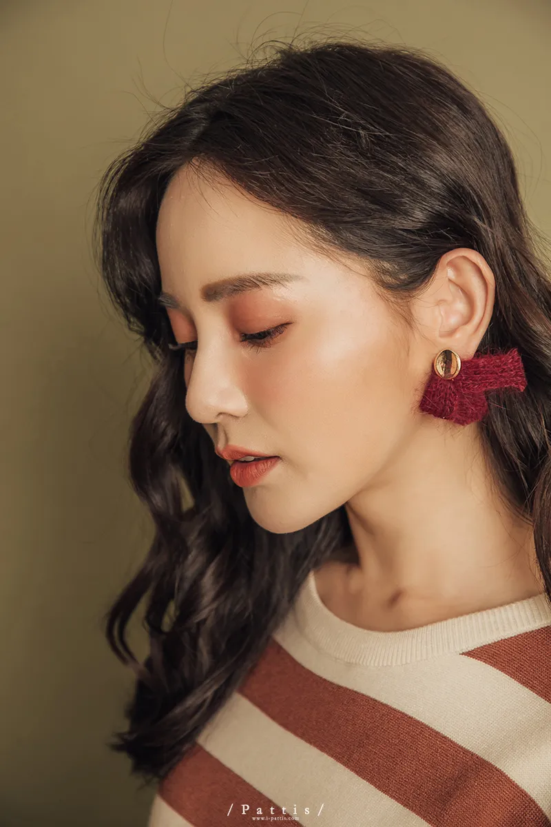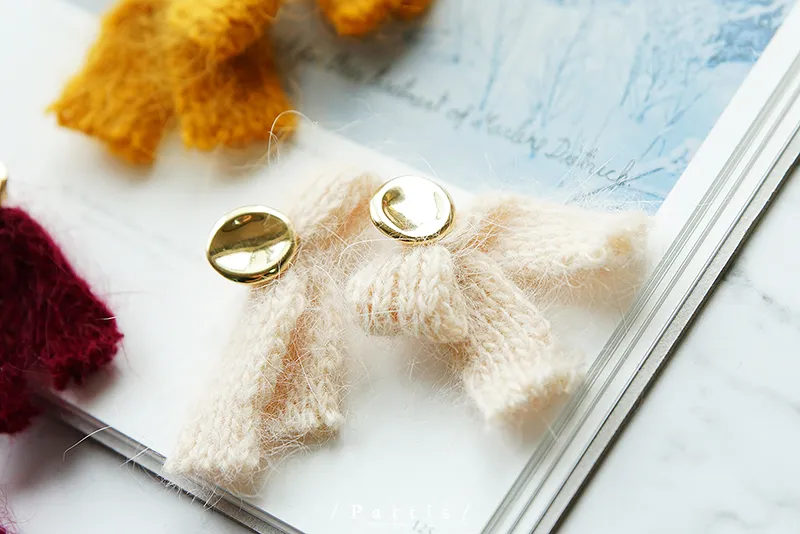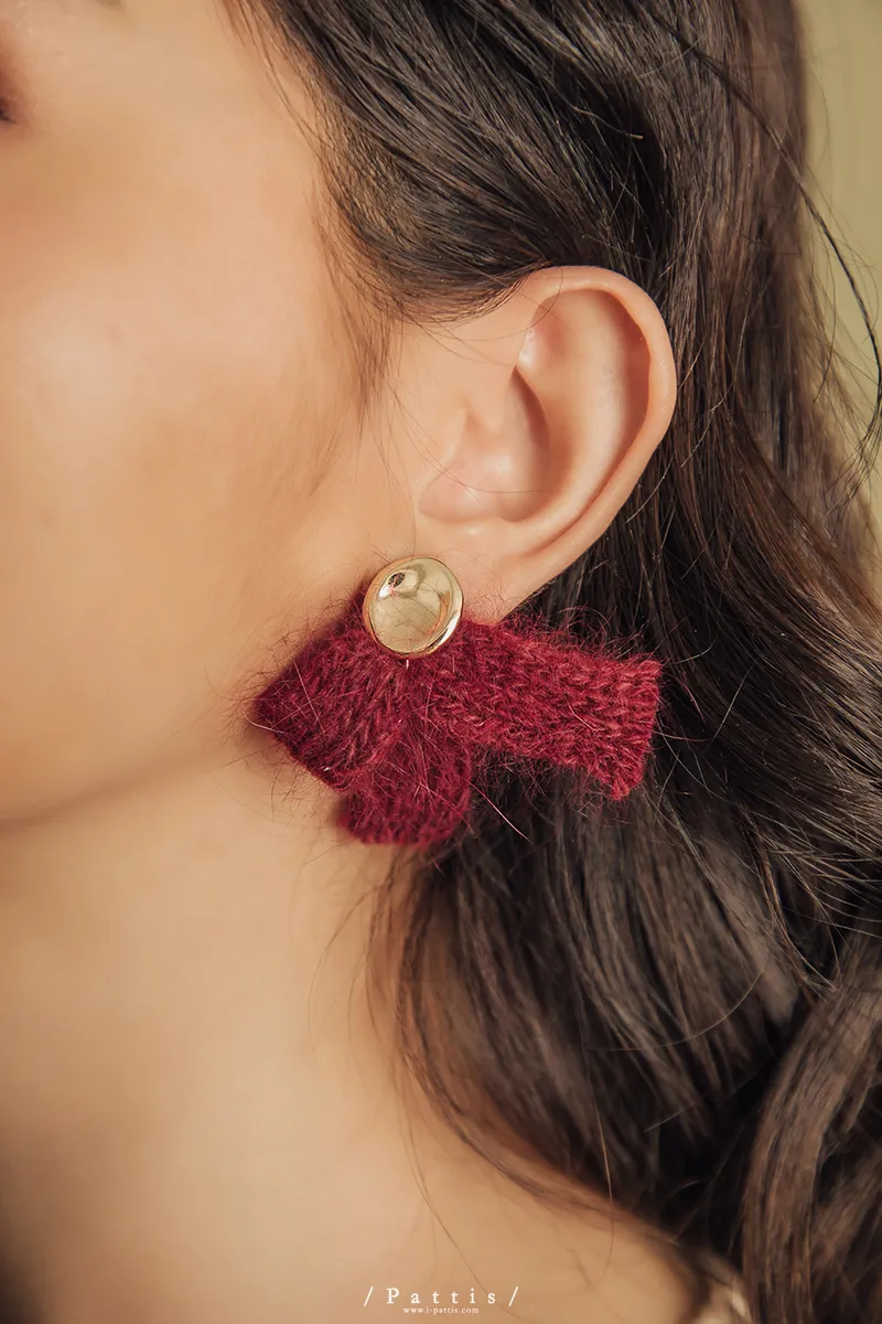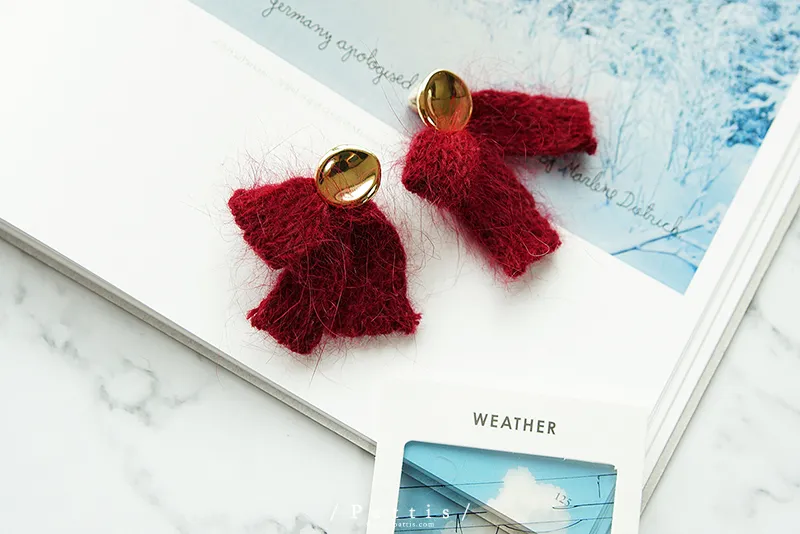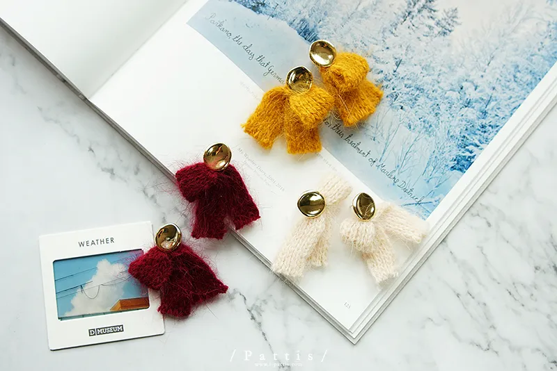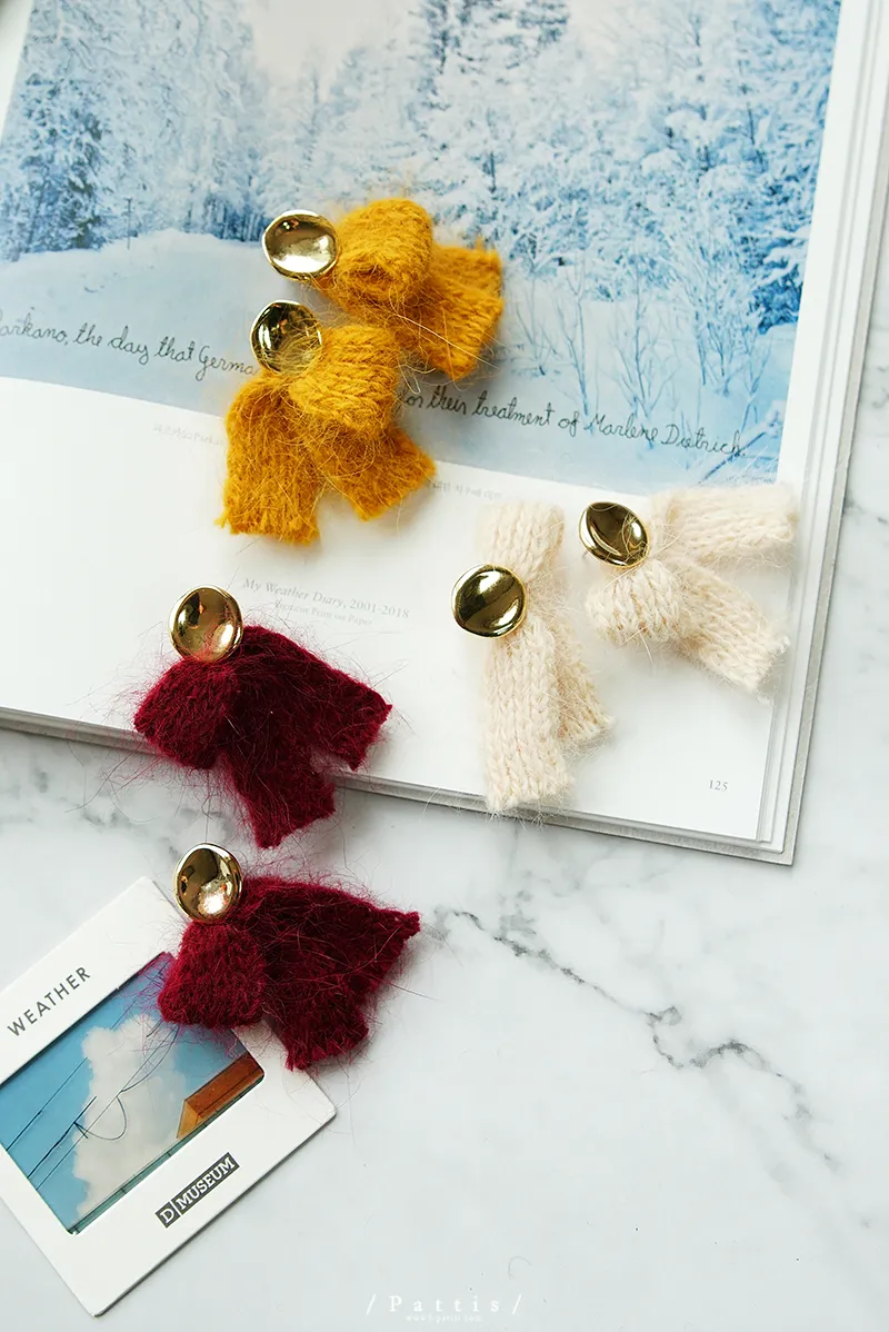冬日蝴蝶 | 金片毛線蝴蝶結耳環(米白/黃/紅)