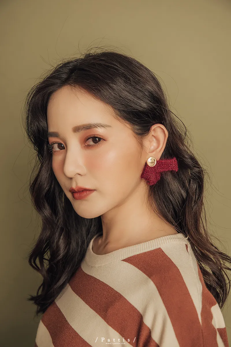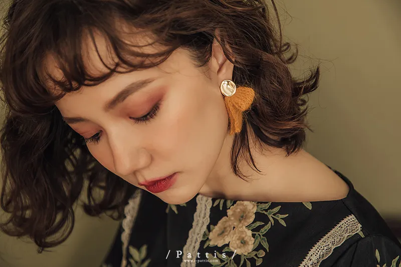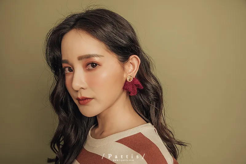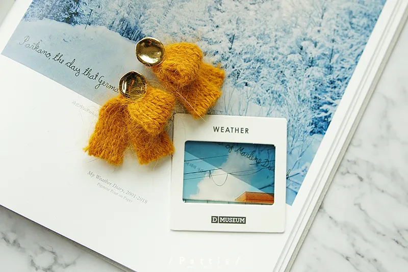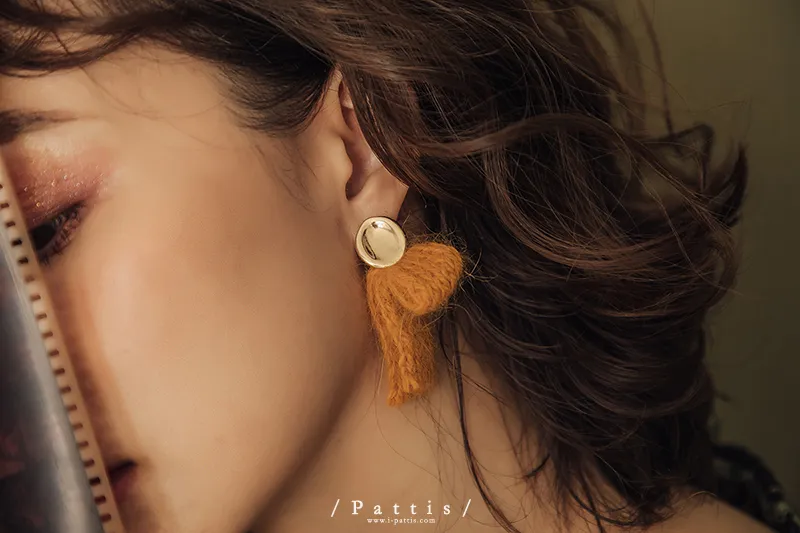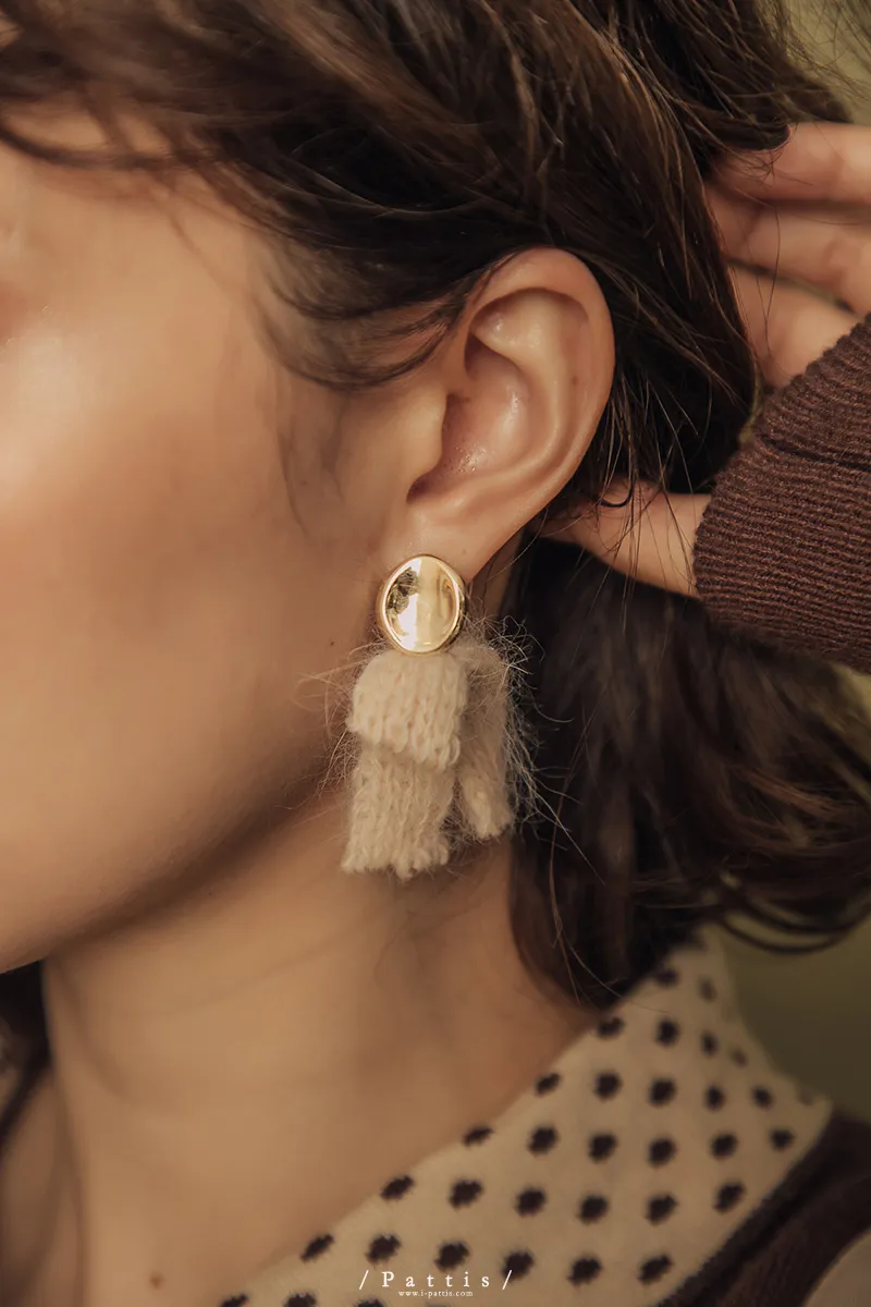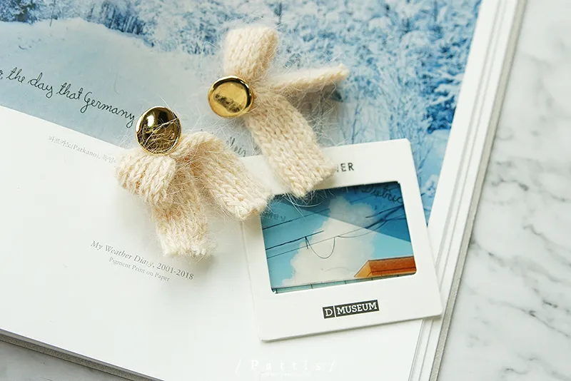 冬日蝴蝶 | 金片毛線蝴蝶結耳環(米白/黃/紅)