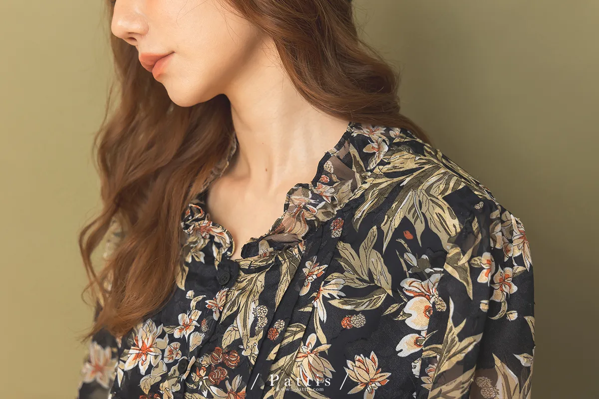| 上衣-F | 59 | 40 | 53 | 55 | 64 | 10-18(鬆緊) | 22 | 24 | 雪紡 | 前鈕釦全開 |
