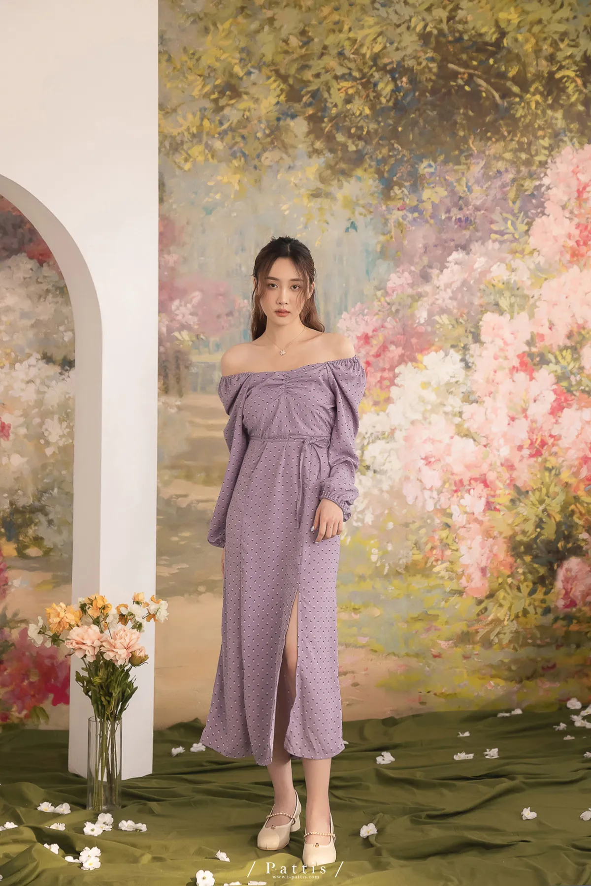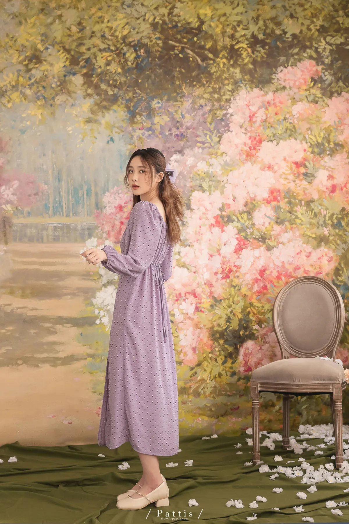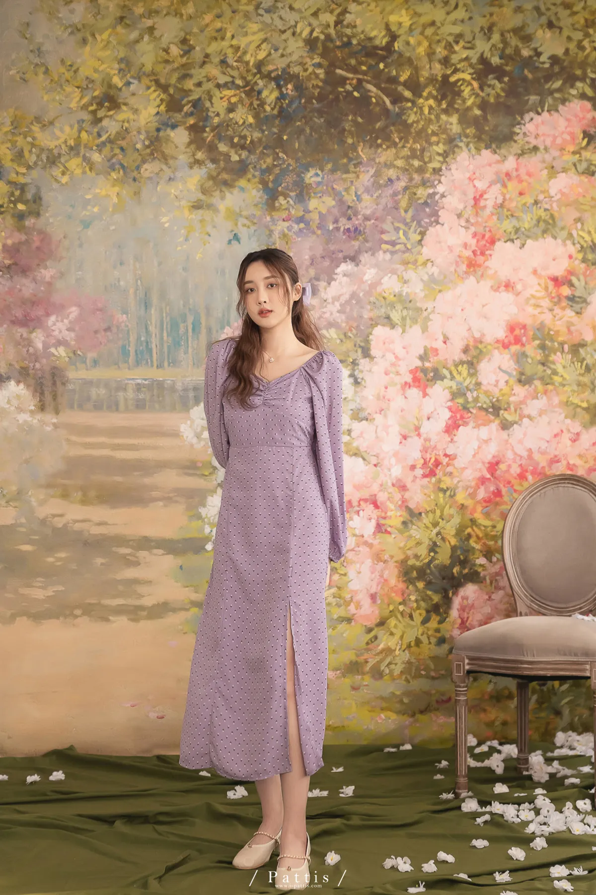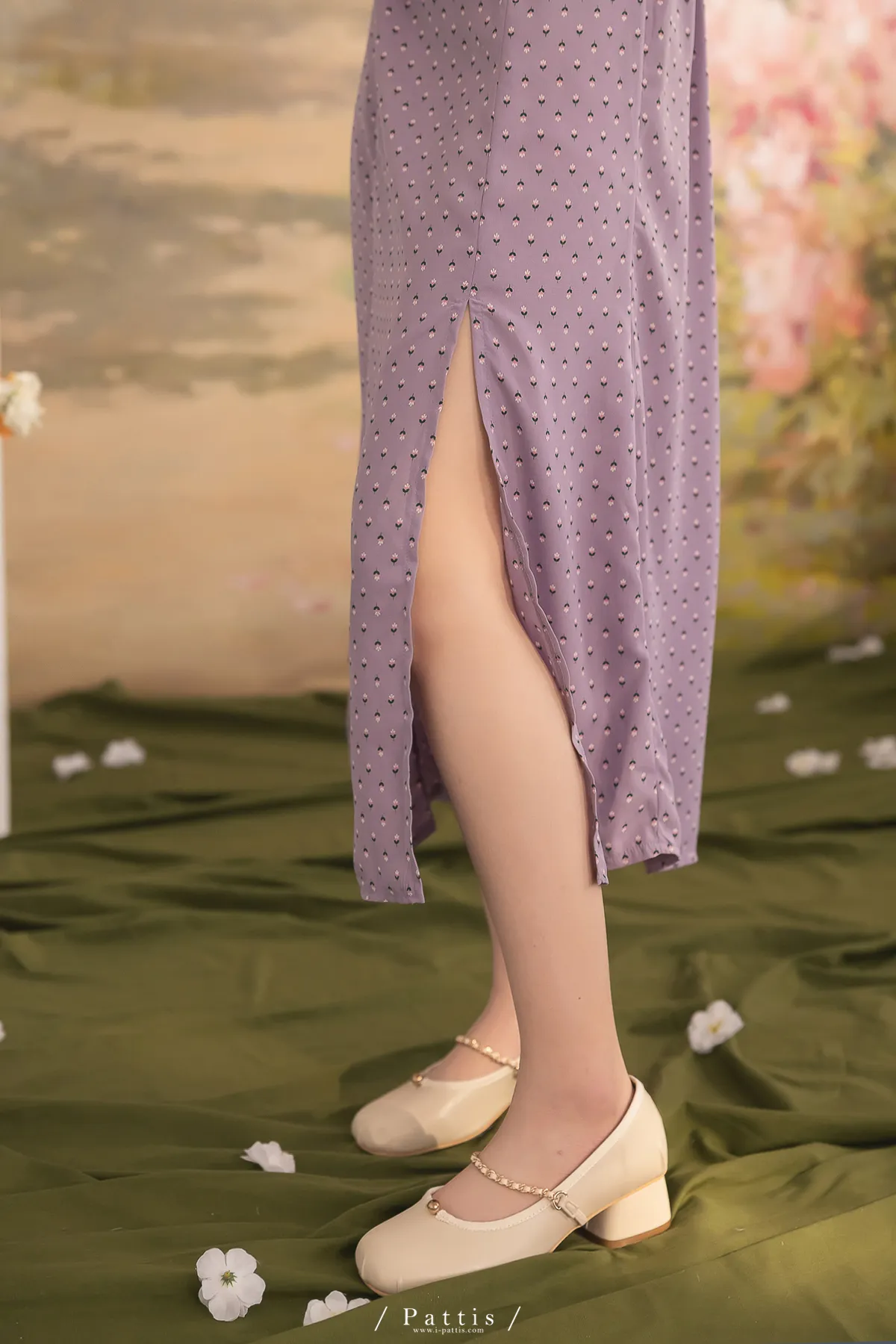 披著孔雀的淑女 | 小花束珠寶2way開岔洋裝(紫荊花)