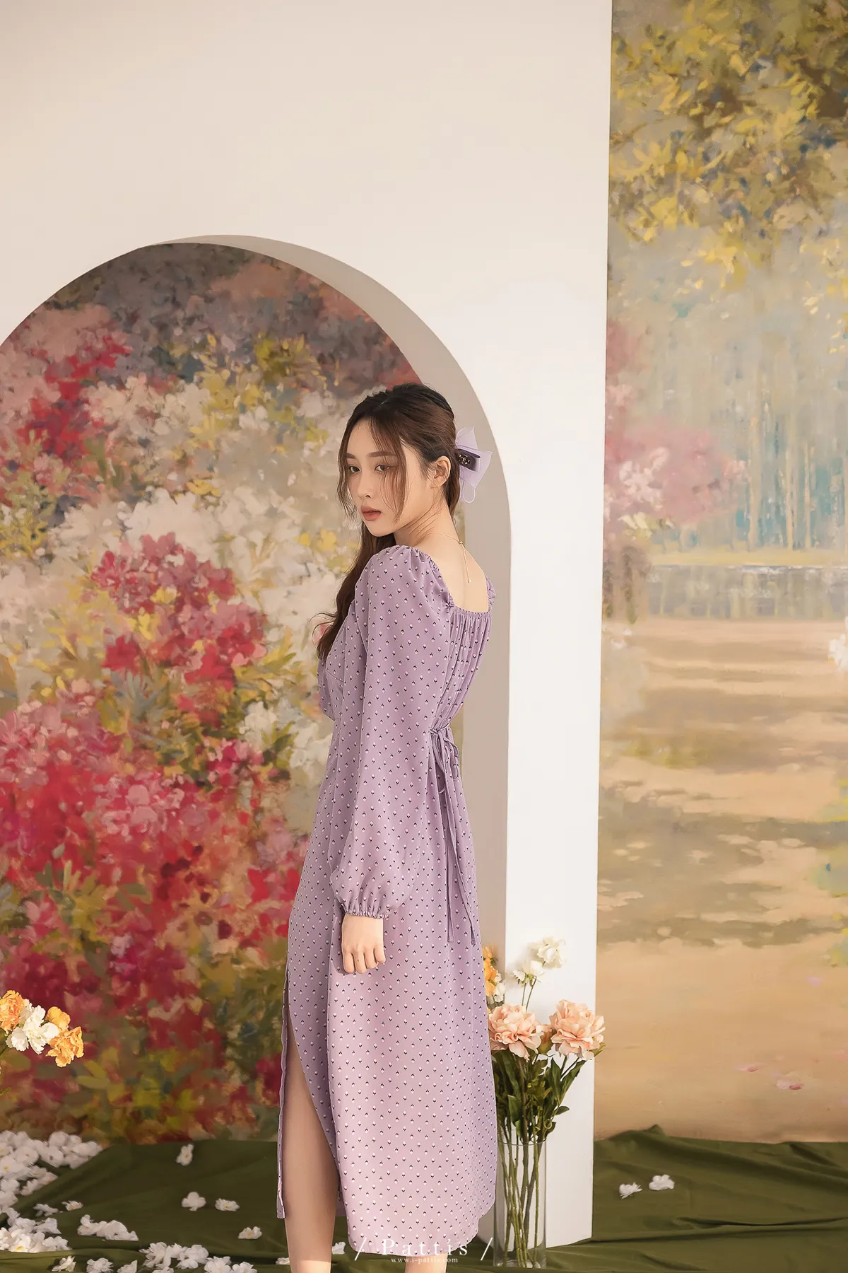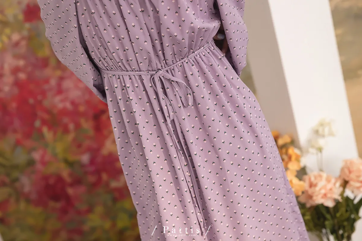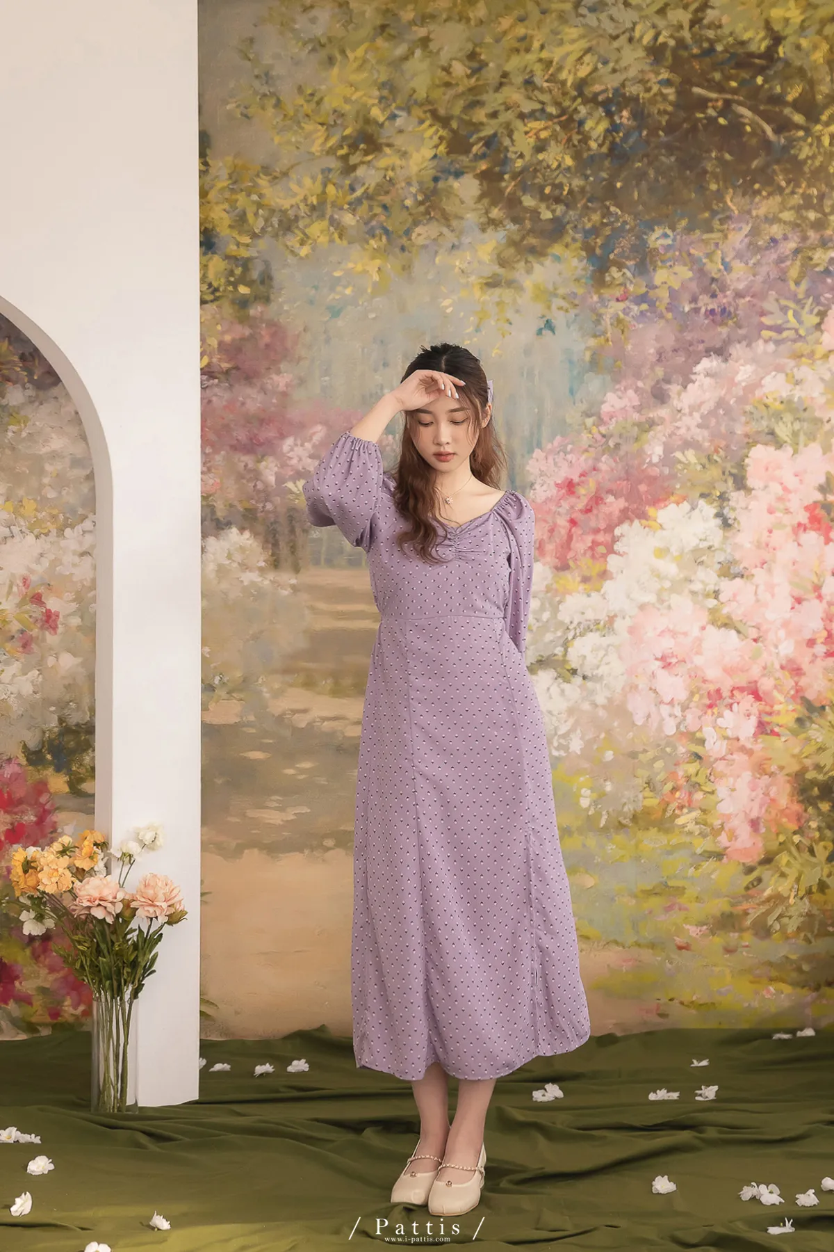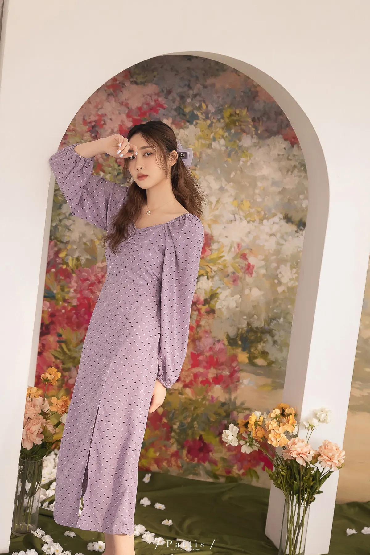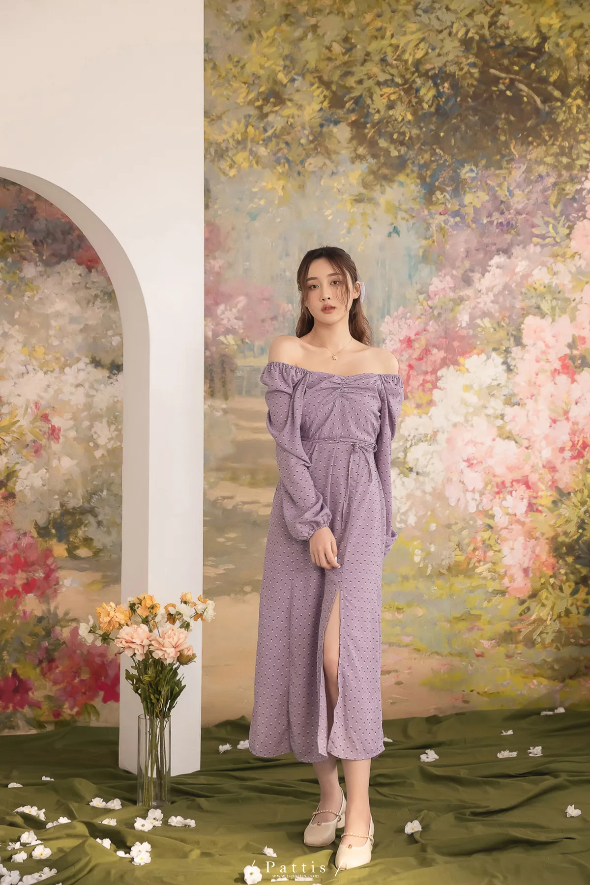 披著孔雀的淑女 | 小花束珠寶2way開岔洋裝(紫荊花)