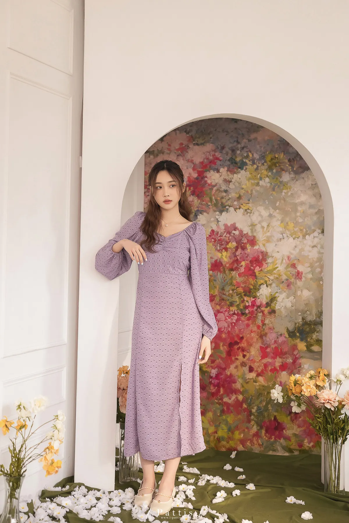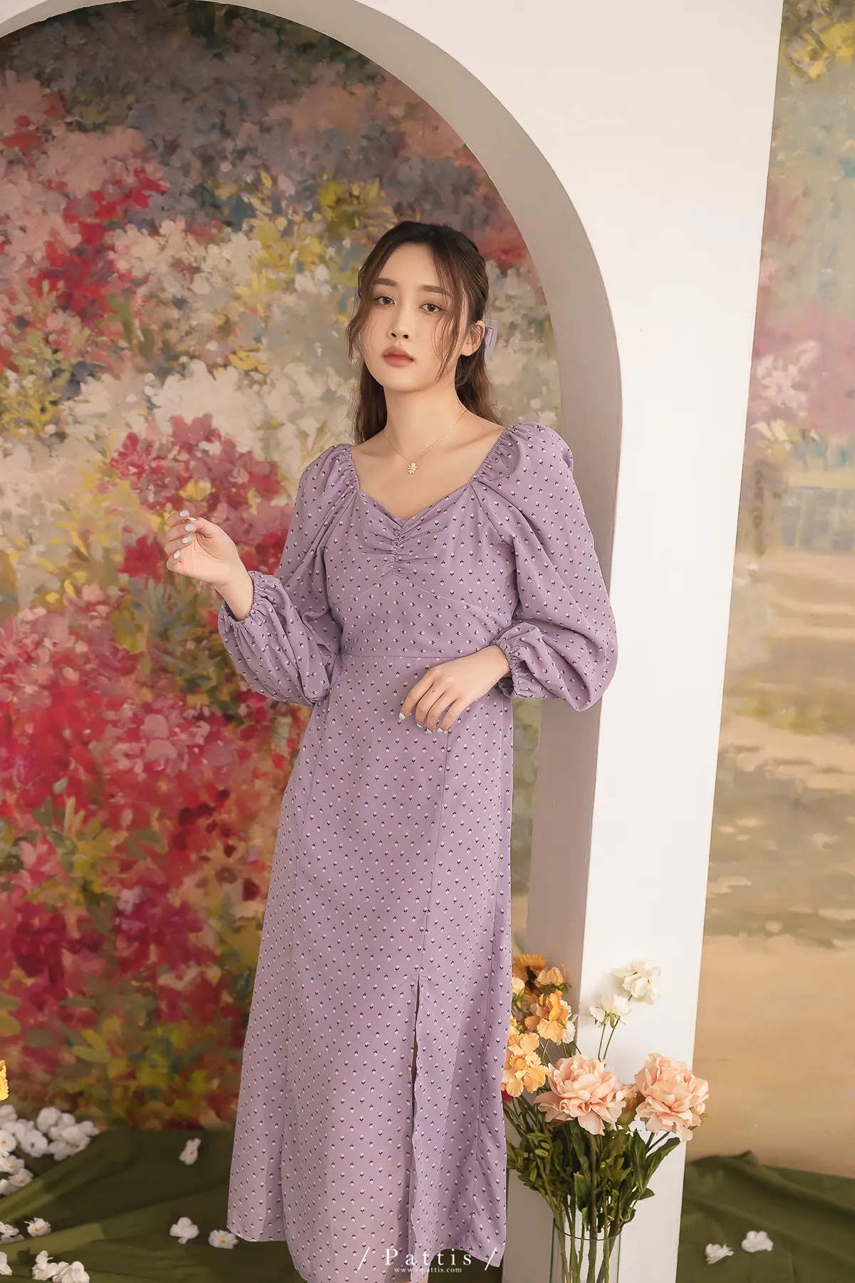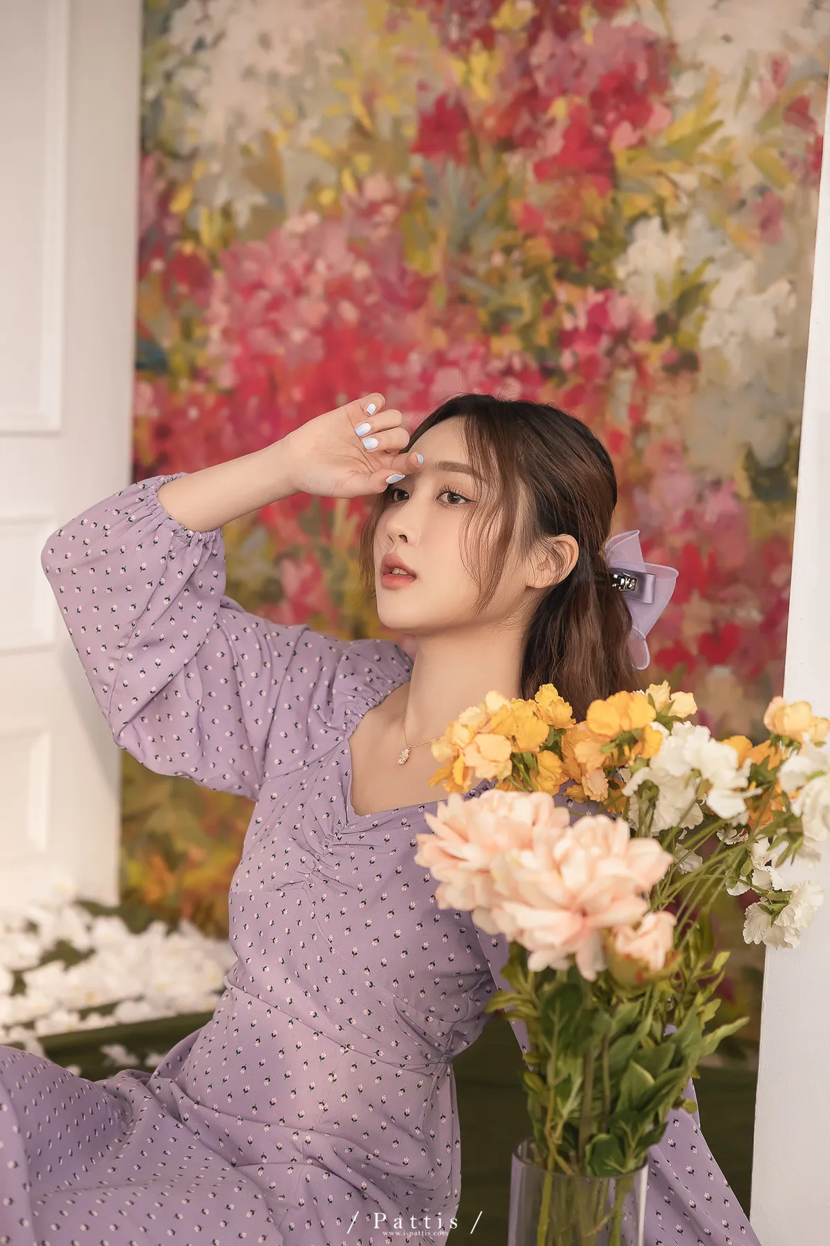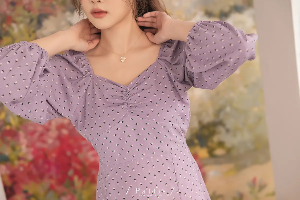 披著孔雀的淑女 | 小花束珠寶2way開岔洋裝(紫荊花)