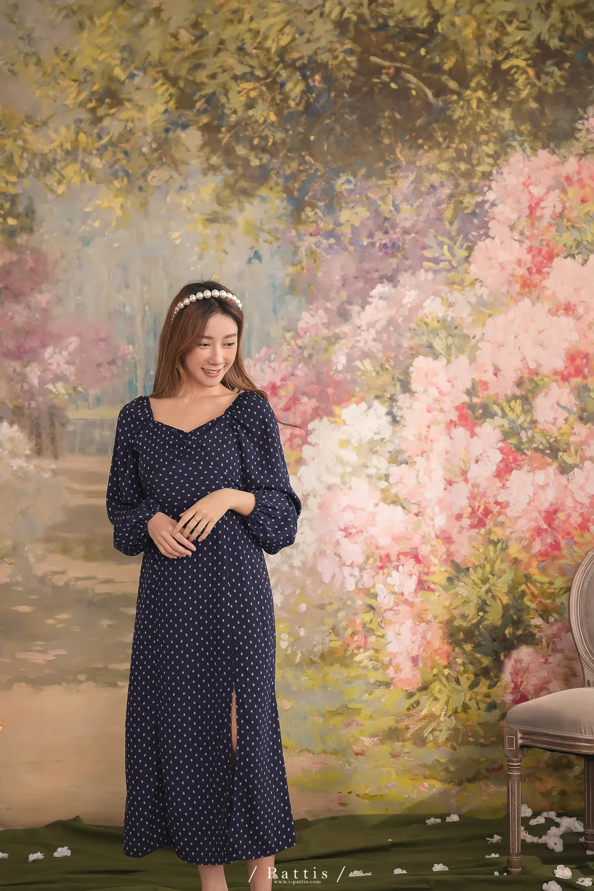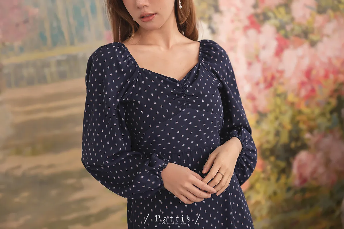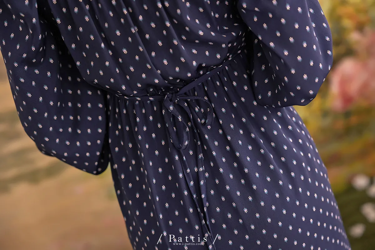 披著孔雀的淑女 | 小花束珠寶2way開岔洋裝(海王星藍)