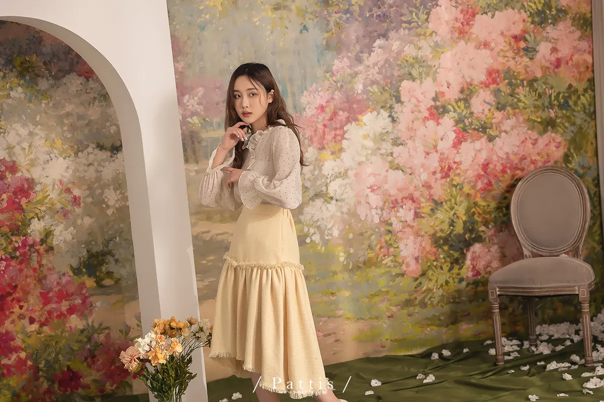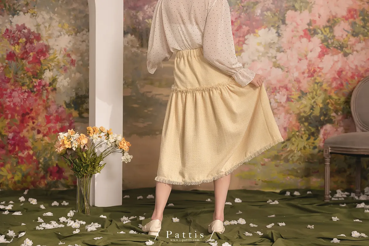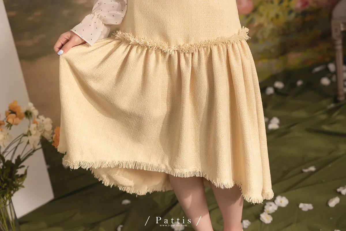 曬曬山楂花 | 流蘇不收邊軟呢前短後長裙(黃)
